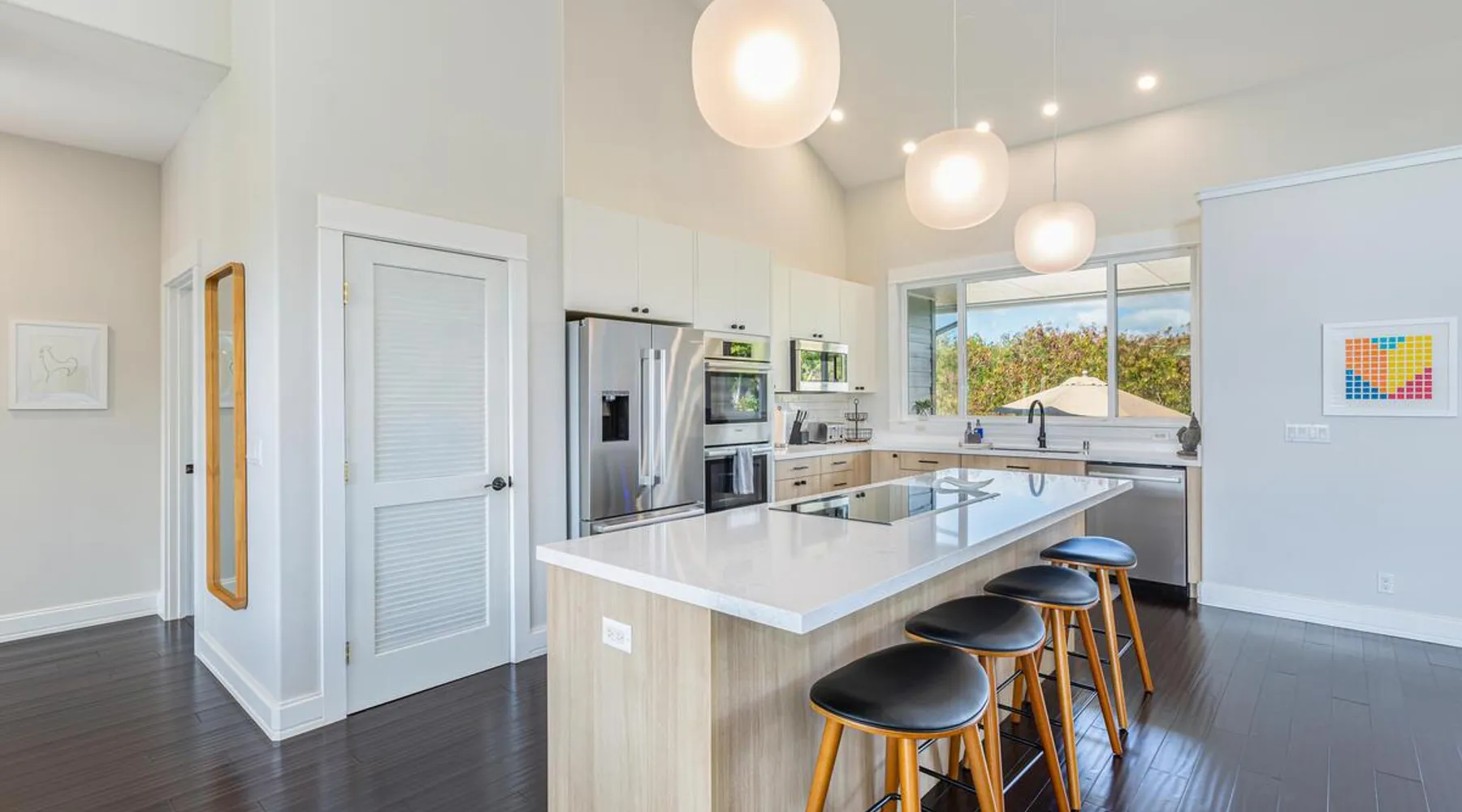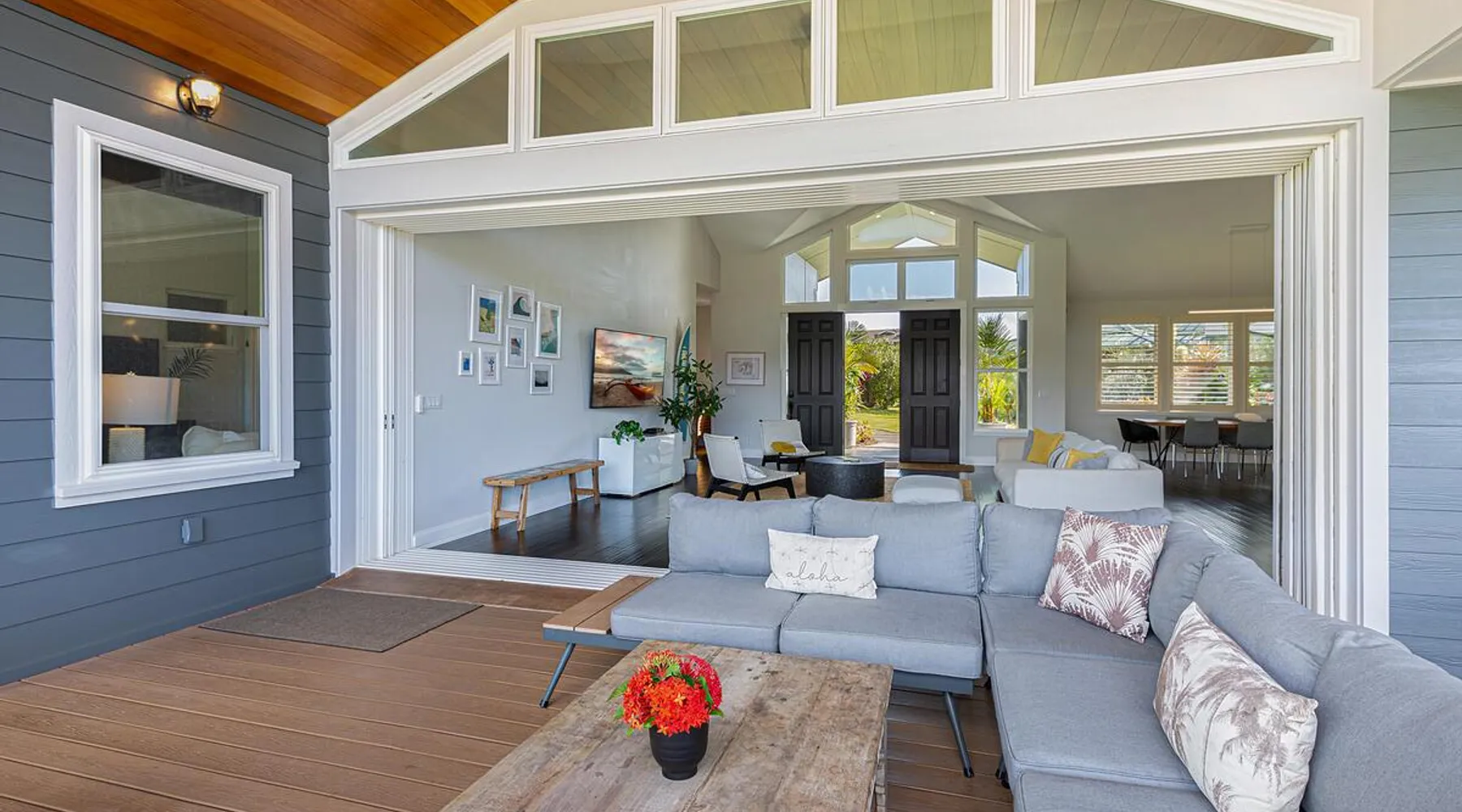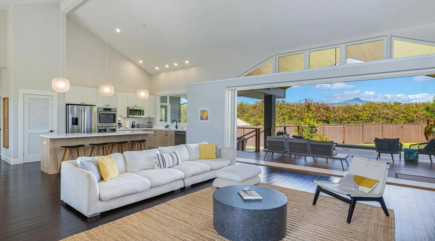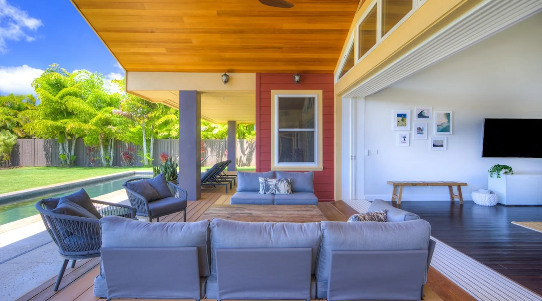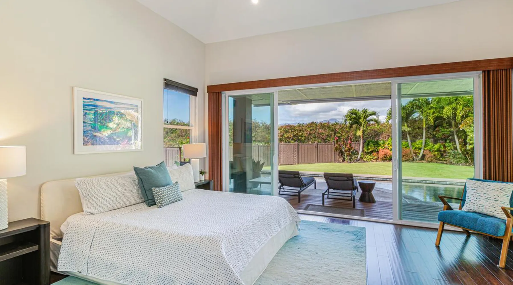 Hawaii Life Rentals Presents Nakoa Kai Exquisite three-bedroom vacation home is located in the heart of sunny Poipu, swimming pool, lovely barbeque area, outdoor lava rock shower, and a large, fenced yard. The space Nestled in the back of a private cul-de-sac, this exquisite three-bedroom vacation home is located in the heart of sunny Poipu, walking distance to beautiful white sand beaches and the shops and restaurants of Kukuiula. Sixteen-foot glass-panel pocket doors open to an expansive outdoor covered lanai which features a black bottom swimming pool, lovely barbeque area, outdoor lava rock shower, and a large, fenced yard. This is indoor/outdoor living at it’s finest! Beautiful cathedral ceilings give this home a feeling of grandeur from the moment you step inside. The expansive chef’s kitchen features a breakfast bar and plenty of space to spread out. There is indoor dining for six as well as an outdoor, covered dining table for eight. The entertainment area flows seamlessly from the the kitchen and offers up the perfect space to watch a movie on those rare, rainy days. Featuring modern tropical décor and local surf art, this home truly showcases island living. All three bedrooms have cold A/C and king-sized beds. Two of the bedrooms are spacious master suites on respective ends of the home and feature en-suite full bathrooms. The bigger master suite has sliding doors that lead to a lanai off the pool area and the bathroom has a double vanity, jetted tub, and walk-in shower. Some extra items the home includes - Surfboards, 4 bikes, boogie boards, beach chairs, umbrellas, beach towels, and a pack-n-play! This home is located in a quaint neighborhood and is just a stone’s throw from some of Kauai’s finest beaches and restaurants. Enjoy snorkeling in the calm, protected cove at Poipu Beach before relaxing at Keoki's Paradise for Hawaiian fare and aloha-hour drinks. End the day browsing the charming stores at The Shops at Kukui‘ula. The south shore of Kauai is also the gateway to Waimea Canyon and historic Hanapepe town. PLEASE NOTE THE POOL IS NOT HEATED After spending the day exploring this island, you’ll truly appreciate unwinding in this immaculate vacation retreat! Hawaii Life Rentals is a locally owned, licensed real estate company with rentals on Kauai, Maui, Oahu, and Hawaii. We offer on-island personal assistance and Concierge services. Rates do not include taxes, cleaning and applicable fees. Hawaii Life/VRBO bookings: Guests must sign a rental contract within 48 hours of booking to confirm the reservation. TA-135-782-2464-01 TMK-280311170000 Registration Details 280311170000, TA-135-782-2464-01