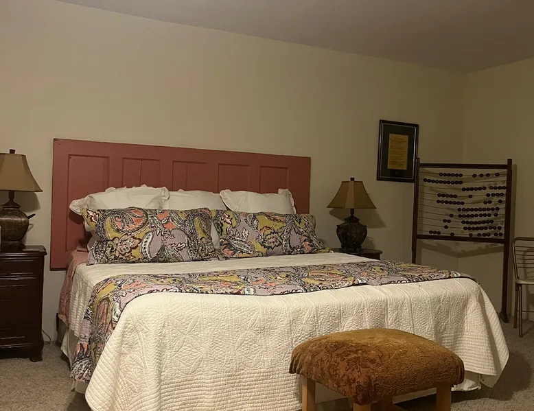 Relax in our comfortable old home. Host remain in the house ( out of the way ). There are times we are absent from home when it is rented. The space The guest bedroom is private in the front of our home. The living room has a queen size bed in the sofa. The living and dining rooms are joined, in an open space. There is guest bathroom in the hallway off of the dining room. It has a small footed tub. There is one more bedroom up rickity stairs that also holds a king size bed. There is no bathroom upstairs. It’s the overflow room. When we are out of town our king size bed is also available. Guest access Guests should park in the front drive beside the walkway. The front door is your entrance. During your stay We are here if you need us most of the time. Coffee, breakfast bars and snacks are available. Other things to note This is our home and we love to hosts guest. We look forward to meeting you and sharing our old house. We just ask that you be respectful to our space and our treasures. Thank you!