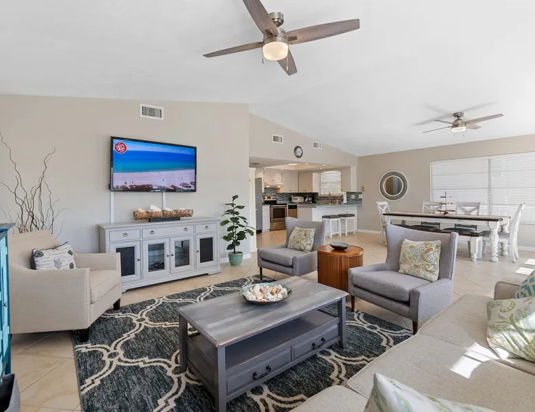Just steps from the ocean, Just Beachy is a stylish 3BR/2BA home designed for easy coastal living. Enjoy peekaboo views, a private deck for breezy dinners, and open indoor-outdoor spaces. Perfect for family beach trips, couples’ getaways, or remote work by the sea. Relax in soft coastal tones, take the bikes for a spin, or challenge the kids to ping pong. It’s the kind of place where ocean breezes and memory-making come naturally—right here in Palm Coast - Hammock Dunes. The space Welcome to Just Beachy – your Palm Coast retreat steps from the Atlantic. Wake up to the sound of waves and take a two-minute stroll to the shore. This 3-bedroom, 2-bath home is designed for laid-back luxury, blending coastal calm with modern comfort. 🛋️ Living Area Coastal chic meets cozy comfort. Natural light fills the open-concept living room, accented in soft blue and cream tones. French doors lead to the deck with peekaboo ocean views, creating a seamless indoor-outdoor flow. ★ Open layout ideal for relaxing or entertaining ★ 50" Smart TV + fast Wi-Fi for streaming or remote work ★ Upscale furnishings in soothing tones ★ Direct deck access with ocean glimpses 🍽️ Kitchen & Dining A bright, fully stocked kitchen makes it easy to cook, connect, and share meals. The large island is perfect for snacks or conversation while cooking. ★ Modern appliances + stocked essentials ★ Cookware, dishware, and utensils included ★ Dining area for group meals or casual bites 🛏️ Bedrooms After a day at the beach, retreat to one of three relaxing bedrooms. Sleeps up to six comfortably — perfect for families, couples, or friends. ★ Primary: King bed, Smart TV, walk-in closet ★ Bedroom 2: Queen bed with cozy linens ★ Bedroom 3: Two twin beds for kids or friends ★ Ceiling fans, fresh pillows, and soft linens 🛁 Bathrooms Start your day refreshed and unwind at night in two clean, well-appointed bathrooms. ★ Fresh towels + starter toiletries ★ Hair dryers and bright vanity lighting ★ Clean, beach-ready design 🎯 Entertainment & Extras There’s no shortage of fun — indoors or out. ★ Ping pong and foosball tables ★ Complimentary bikes for exploring ★ Beach wagon, chairs, and umbrella ★ Fishing poles, washer/dryer, and keyless entry 🌊 Outdoor Living The wraparound deck is your private oasis for morning coffee, family BBQs, or evening breezes. ★ Large deck with dining area + ocean peek ★ Gas grill and rinse-off hose ★ Private driveway with easy parking Rated 5.0★ for cleanliness and comfort by recent guests. Book your beach getaway today and let Just Beachy become your favorite Palm Coast escape. LBTR: 35706 Guest access 🔑 Guest Access You’ll have full access to the entire home and all included amenities during your stay at Just Beachy. Whether you're lounging inside, grilling on the deck, or biking along the coast, this beach retreat is entirely yours to enjoy. ★ What’s Included ★ Full access to all indoor and outdoor living spaces ★ Private deck with alfresco dining area ★ Gas grill, rinse-off hose, and beach gear storage ★ Washer and dryer inside the home ★ Smart TVs, high-speed Wi-Fi, and streaming capabilities ★ Complimentary bikes, beach chairs, umbrella, and wagon ★ Driveway with on-site parking ★ Smart lock entry — no keys required ★ Check-In & Access Details ★ Guests will receive a unique smart lock code 3 days prior to arrival ★ Self-check-in anytime after 4:00 PM ★ Hassle-free checkout — just remove your belongings, take out trash, and lock up If you need anything during your stay, we’re always just a message away and happy to help. Other things to note 📝 Other Things to Note We want you to feel completely at home while staying at Just Beachy. Here are a few helpful things to keep in mind as you plan your stay: ★ House Rules & City Guidelines ★ Maximum occupancy: 6 guests ★ Quiet hours: 10 PM – 8 AM to respect our peaceful neighborhood ★ No smoking anywhere on the property (indoors or outdoors) ★ No trailers or RVs permitted due to local city regulations — ask us for nearby storage options ★ All guests and pets must be included on the reservation ★ Pets ★ Well-behaved pets are welcome with prior approval ★ Please include pets in your reservation ★ Guests must clean up after pets indoors and outdoors ★ Any pet-related damage may result in additional fees ★ CLEANING & SANITIZATION Your safety is our top priority. We follow a detailed cleaning checklist after every guest stay. ★ High-touch surfaces disinfected ★ Linens and towels washed at high temperatures ★ Starter supply of cleaning products provided By clicking “Book Now” you are acknowledging and agreeing to each term included in the Rental Agreement, which can be found on the booking site and a copy will be emailed to you after booking.