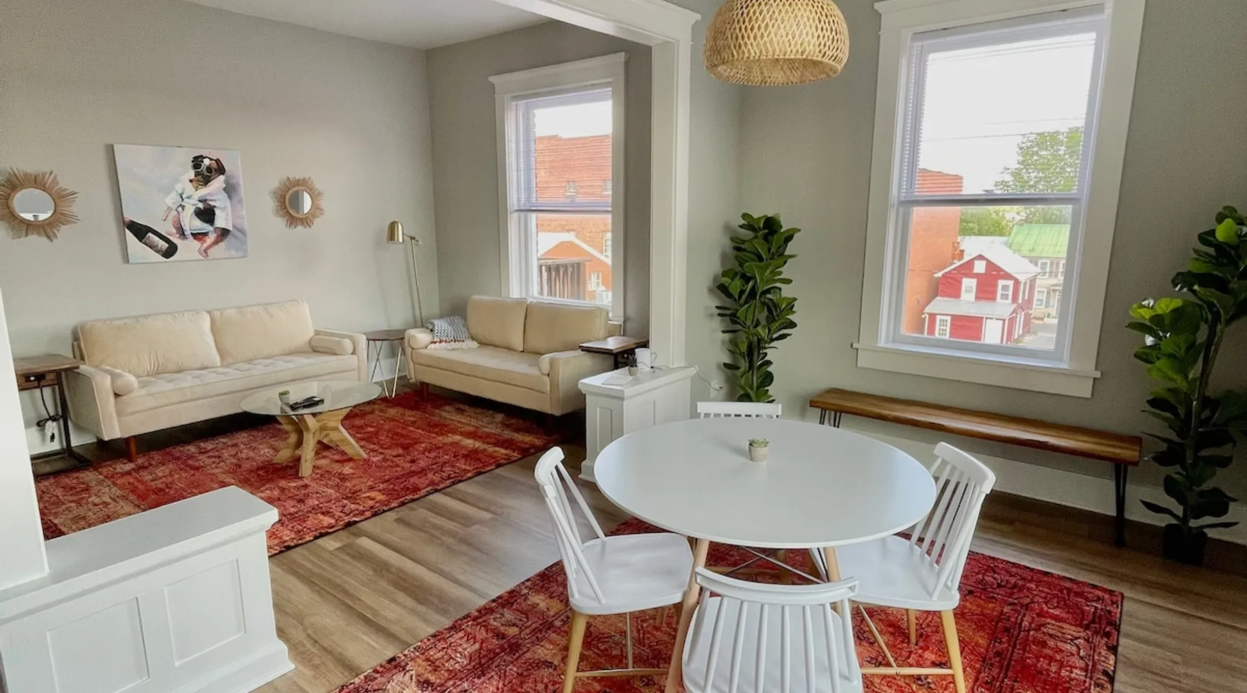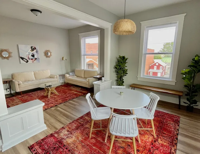 Welcome to the Lazy Loft – your central retreat in WV! This unit offers off-street parking, central air, cable TV, and Wi-Fi. Located in the heart of Martinsburg, it's within easy walking distance to restaurants and shops. A short drive takes you to the Appalachian Trail, Harpers Ferry, Shepherdstown, and Antietam National Battlefield. Enjoy two bedrooms, a well-appointed bath, a fully equipped kitchen, and a cozy living room. Book now for a comfortable and convenient stay in Martinsburg! The space Welcome to our meticulously designed Two Bedroom, 1 bath unit, where every detail has been carefully considered to offer a perfect blend of style and practicality. Immerse yourself in the luxury of our professionally curated space, featuring stylish touches that elevate your experience from ordinary to extraordinary. The lush and fashionable couch invites you to unwind and enjoy moments of relaxation while streaming your favorite series. Our commitment to your comfort goes beyond aesthetics – we have meticulously crafted an environment that ensures your stay is not only visually pleasing but also practical and wonderful. Please don't worry about any concerns; we've got you covered. Whether it's a worry-free stay, a convenient laundry experience with our coin-operated facilities, or the ease of ample parking, we've thought of everything to make your time with us genuinely seamless. Security is paramount, and we provide secure access to the building and all units, ensuring your peace of mind throughout your stay. The Two-bedroom 1 bath unit is not just a place to stay; it's a haven designed to exceed your expectations and create lasting memories. Book now to immerse yourself in our professionally designed space's sophistication and thoughtful details. Our priority is your comfort, and we look forward to providing you a stylish and worry-free retreat. Guest access Welcome to your private retreat! As a guest in this exclusive unit, you have access to all parts of the space, ensuring a truly personalized and immersive experience. Enjoy the freedom to explore and make yourself at home, knowing that every corner of the unit is yours to enjoy. Your comfort and privacy are our top priorities, and we invite you to savor the tranquility and convenience of your private haven. Book now for a getaway where every part of the unit is yours to discover and relish. Other things to note Welcome to our exclusive apartment building, where every unit is dedicated to Airbnb guests, ensuring a unique and tailored experience for each visitor. As part of our commitment to convenience, all guests have access to coin-operated washers and dryers, making laundry a breeze during your stay. Elevating your experience further, we offer the luxury of room service from Brix27. You can scan the QR code in your unit and indulge in culinary delight without leaving the comfort of your temporary home. What sets us apart is our fully serviced team, comprising full-time managers, maintenance personnel, and dedicated cleaners. Unlike other "owners" with just 1-2 units, we prioritize your comfort and well-being, ensuring a level of service that goes above and beyond. Your comfort is not just a priority but our livelihood, and we take pride in delivering an experience that exceeds expectations. You can book now and experience the difference of being in a place where your needs are anticipated and your stay is elevated to a new level of comfort and satisfaction.
