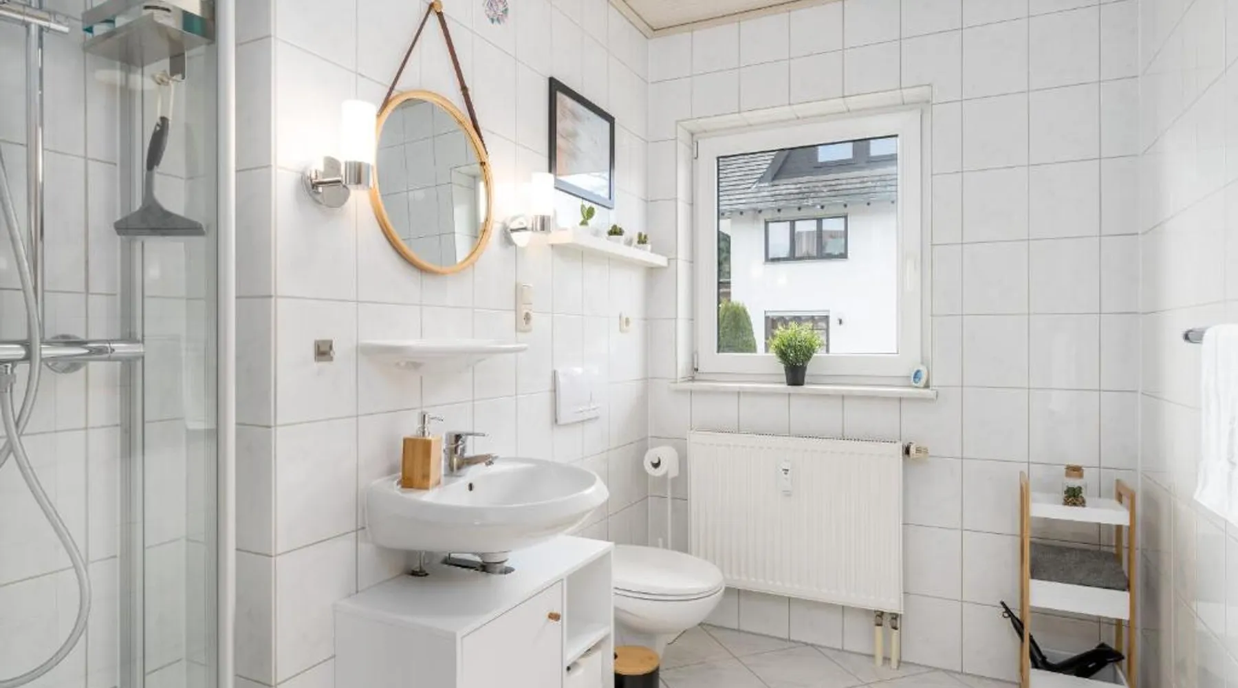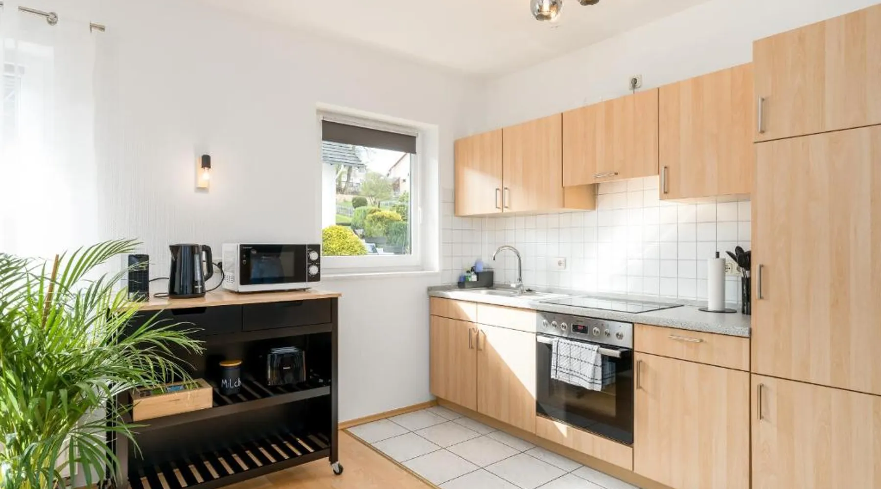 Spacious and Clean: Harmony: Edersee Apartment – Sperrmauer – Lounge in Edertal offers a spacious, recently renovated apartment with one bedroom and a living room. Guests appreciate the room cleanliness and the well-equipped kitchen. Modern Amenities: The apartment features a terrace, balcony with mountain views, free WiFi, and a kitchenette. Additional amenities include a washing machine, streaming services, and a dining area. Convenient Location: Located 30 mi from Kassel-Calden Airport, the property is near attractions such as the Museum Brothers Grimm (30 mi) and Eissporthalle Kassel (29 mi). Free on-site private parking is available. This spacious apartment includes 1 living room, 1 separate bedroom and 1 bathroom with a shower and free toiletries. In the well-fitted kitchen, guests will find a stovetop, a refrigerator, kitchenware and an oven. This apartment has a washing machine, flat-screen TV with streaming services, mountain views, as well as wine/champagne for guests. The unit has 2 beds.