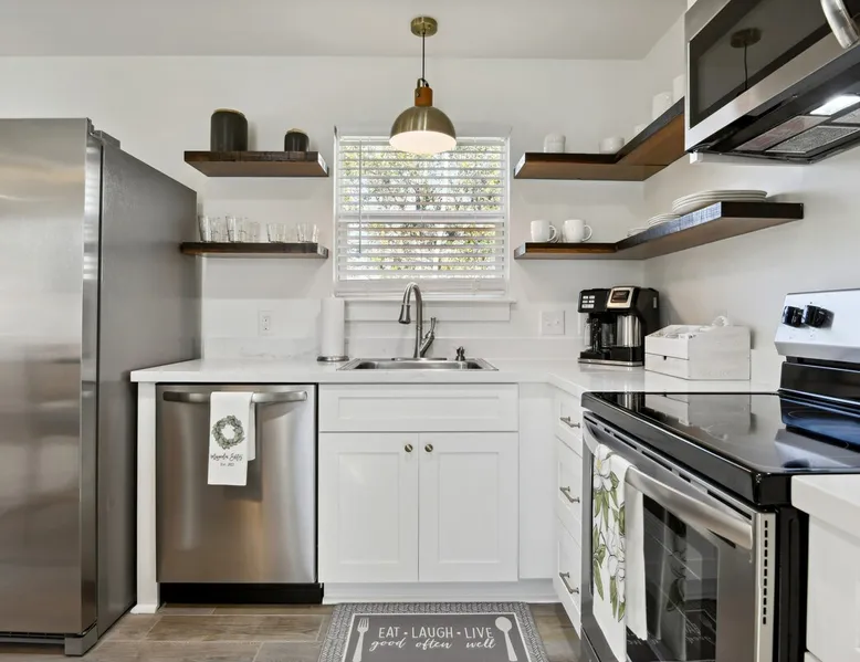 Old Town vacation rental just minutes from the beach, casinos, golfing, restaurants, fishing, and shopping. This home is perfect for couples or families looking to enjoy all that downtown Bay St Louis has to offer. A fresh new build with spacious rooms and open floor plan makes for an inviting stay. Free parking is available as well as room for your boat or trailer. This is an upstairs unit, the downstairs unit is available under separate booking. The space Within these walls you will find many necessities needed for a great vacation. We provide a fully equipped kitchen stocked with teas and coffee. Comfortable bedding, linens and toiletries are provided for you. We provide outside areas for grilling or for just sitting and enjoying time together. There are many things we have done to our home to ensure that you will feel comfortable in your “home away from home". Guest access You will be able to enter your unit using the last four digits of your telephone number that was used during booking. Feel free to use the driveway and backyard for enjoyment, but please be mindful of other guests. You can find the grill located under the stairs. Other things to note Welcome to Bay St Louis, where visitors become family! Just a few suggestions during your stay with us at Magnolia Suites. Always pack a light jacket or sweater even in the summer because it tends to get a little breezy at night on the beachfront. Also, pack sunscreen, bug spray, flip flops, a hat, and plenty of water for your stay. Glass bottles are prohibited on the beach so each unit comes with plastic drinkware and beach towels in case you want to spend a day at the beach. Please use designated beach towels for the beach and not the white/gray bath towels in the unit. Grills and utensils are provided but you will need to bring charcoal. If you intend to fish just a reminder about obtaining a fishing license whether you are a resident or non resident of the state of MS. We have a welcome book in each unit with local suggestions or you may reach out to me at any time with questions. Each unit has a K-cup and drip coffee maker as well as coffee, tea, and sweeteners. Pre-book your own golf cart for your stay in Old Town Bay Saint Louis!