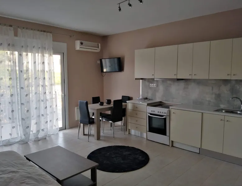 Newly built,spacious ground floor studio 42 sqm. It has private entrance, good size balcony and access to the rear yard. It is situated in a quiet residential area with free street parking. Ideally located as the nearest beach, bakery, patisseries, restaurants and the town centre are within 5-10 minutes walking distance. Newly built spacious studio of 42 sqm with private entrance, balcony and courtyard. Located in a quiet neighborhood with parking space. 5 minutes from the nearest beach. Registration Details 00001026167