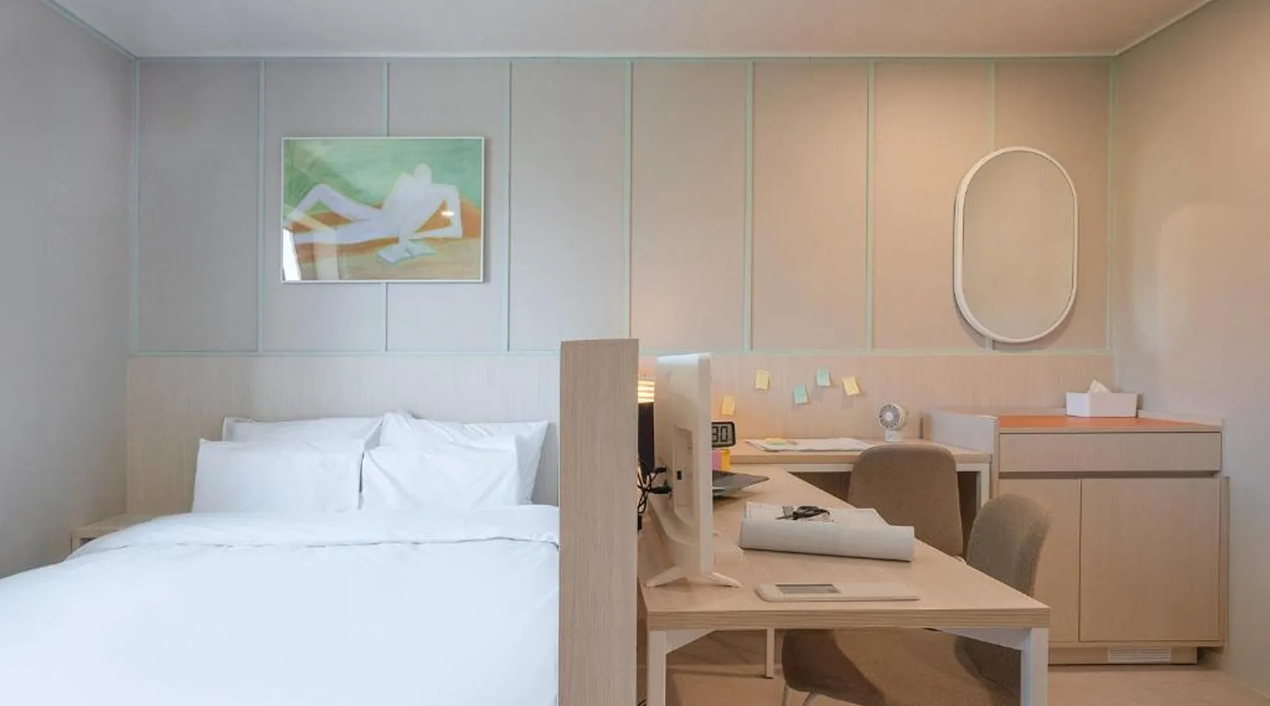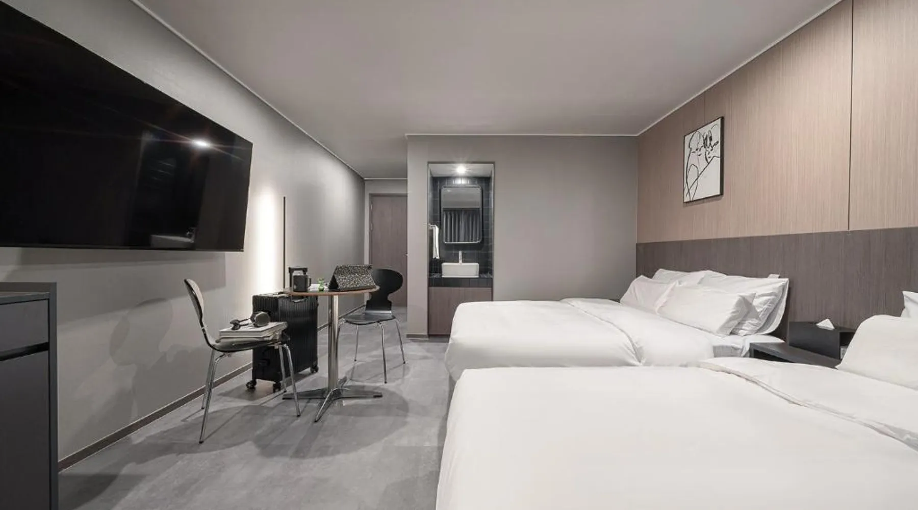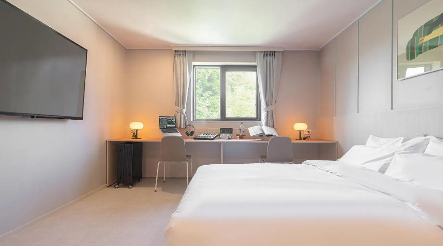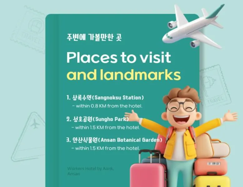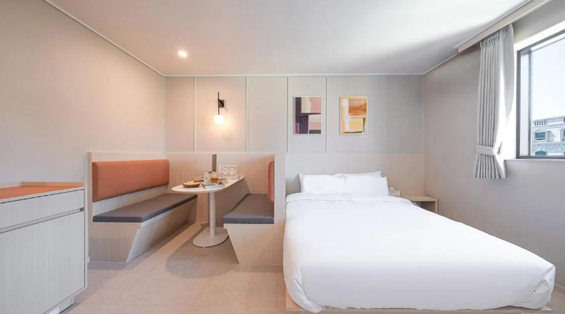 Comfortable Accommodations: Workers Hotel Ansan by Aank in Ansan offers comfortable rooms with air-conditioning, private bathrooms, and city views. Each room includes a refrigerator, TV, and soundproofing for a pleasant stay. Wellness and Leisure: Guests can relax at the spa and wellness center, sauna, and hot tub. The hotel provides free WiFi, a fitness room, and a elevator for added convenience. Dining Options: An American breakfast is available à la carte, and a seating area offers a comfortable space to unwind. Convenient Location: Located 22 mi from Gimpo International Airport, the hotel is near attractions such as Hwaseong Fortress (9.3 mi) and Songdo Convensia (17 mi). Free on-site private parking is provided. This suite features a hot tub and a sauna. The suite includes a private bathroom, well-fitted with a bath, a shower, a bidet, a hairdryer and slippers. The kitchenette is fitted with a refrigerator, a microwave and an electric kettle. The spacious air-conditioned suite offers a flat-screen TV with cable channels, a private entrance, soundproof walls, a seating area as well as city views. The unit offers 2 beds.
