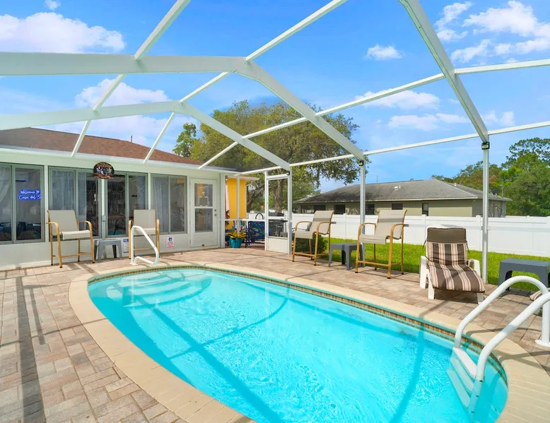 There is only one place in the United States where you can swim with wild manatees and that is right here in the Spring Hill area.Come stay at Casa del Sol where you can go and meet these gentle giants. Our home is family friendly ready for your enjoyment. We are conveniently located close to hiking trails, beaches, fishing, boating, kayaking, amusement parks, state parks, shops...something for everyone. Come stay with us!! The space This home is perfectly balanced with a split floor plan. Master en suite on one side of the home and the other two bedrooms and bath on the other. They are separated by the great room. Laundry is just off the kitchen. There also is a cozy reading/coffee nook. There is office space in the master bedroom. Guest access All guests have full access to the home with the exception of the garage, walk-in closet within the master and the locked shed in the yard. Other things to note We recently switched to salt water in our pool as it uses less chemicals and is better for your clothes, hair, and skin. We keep our pool heated to between 85 and 90 degrees in the winter at no extra charge. We put in solar lights for nighttime swims.