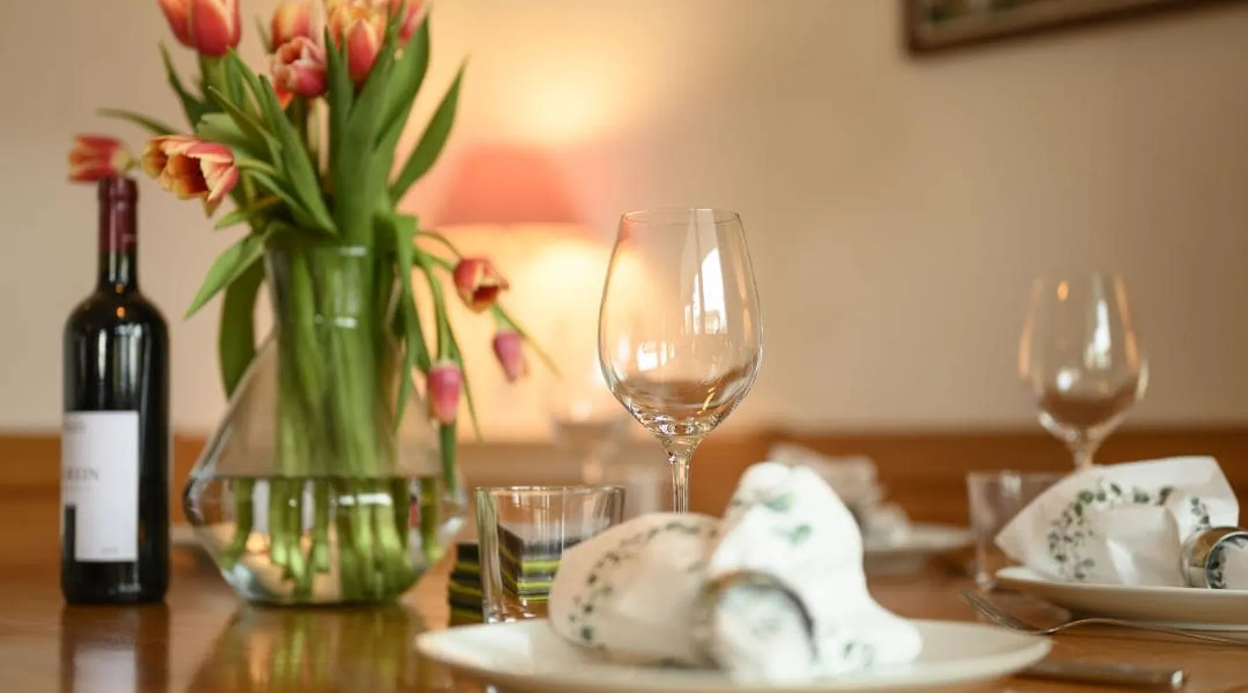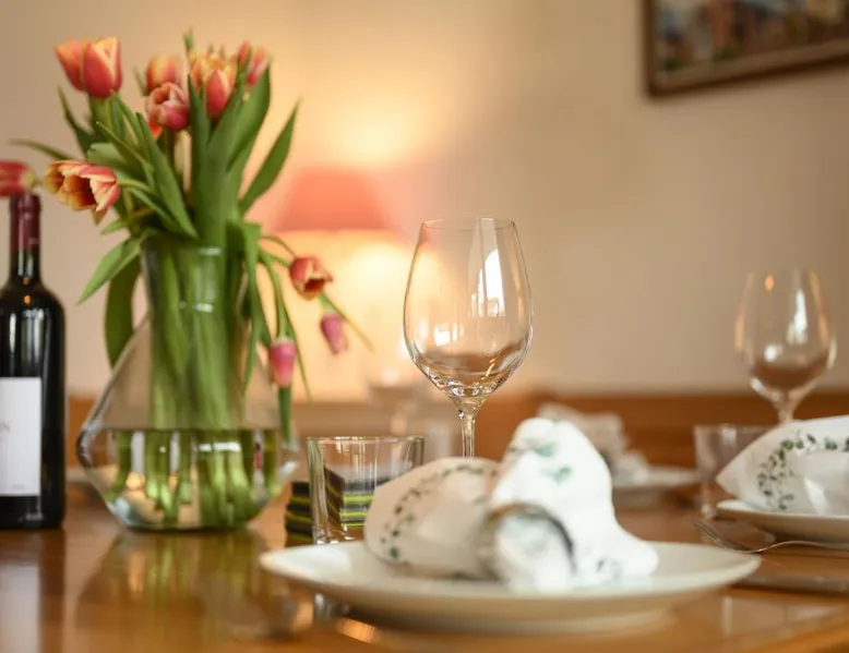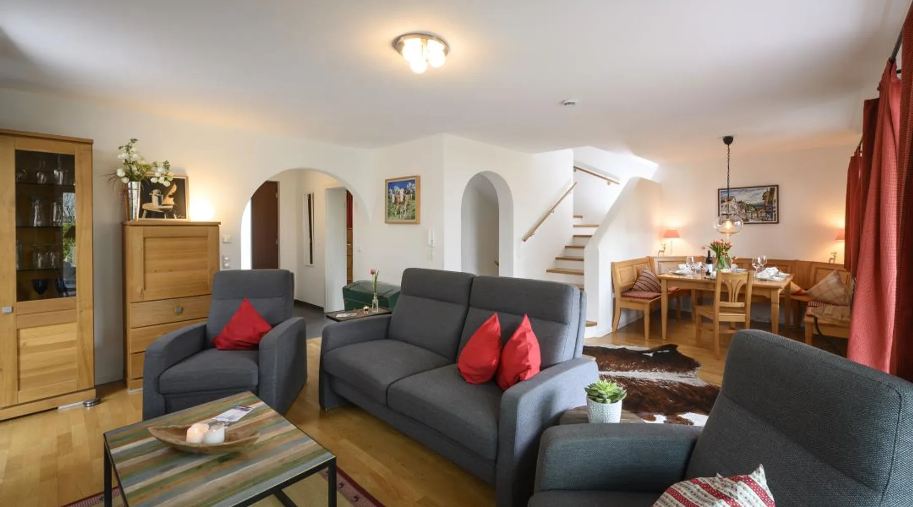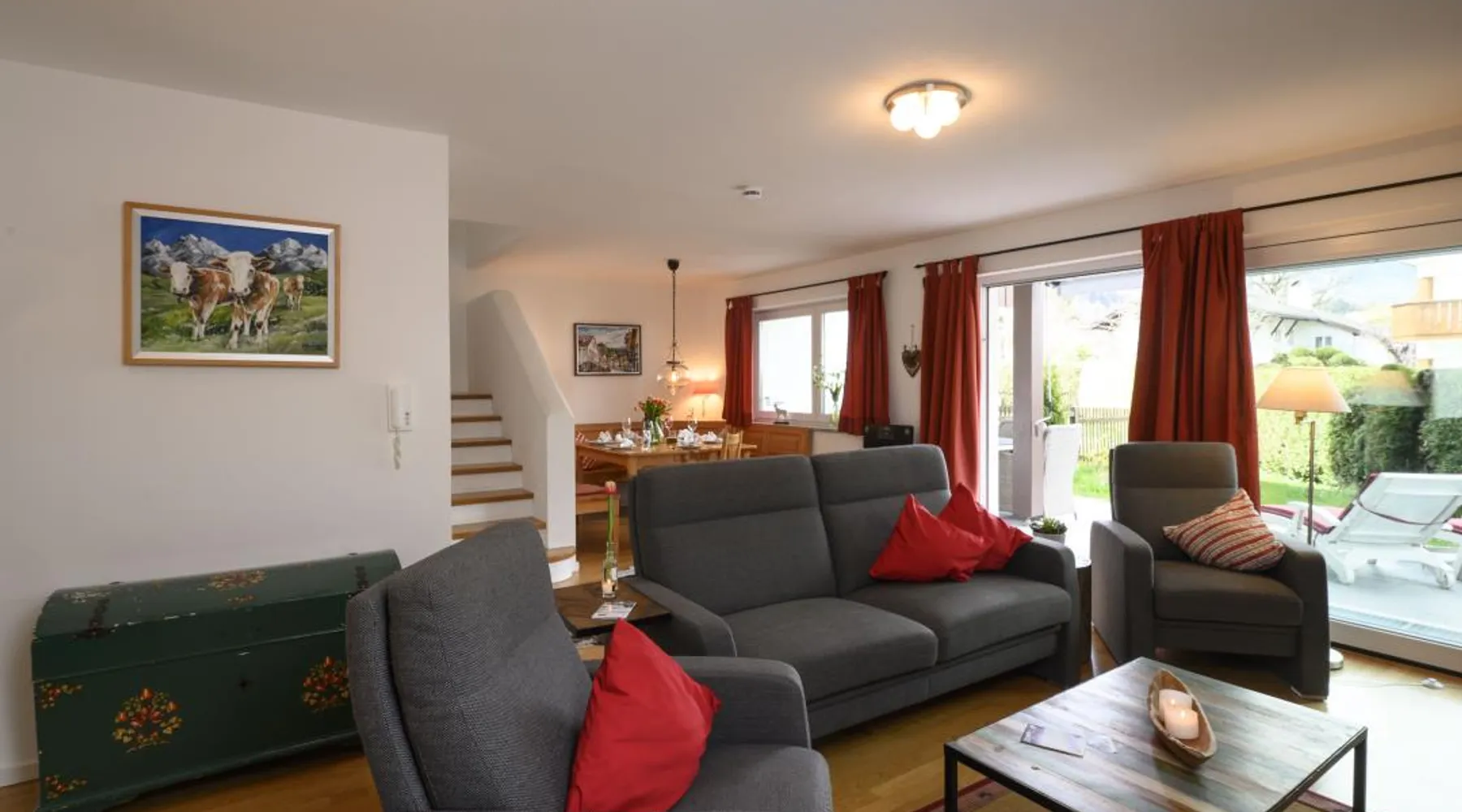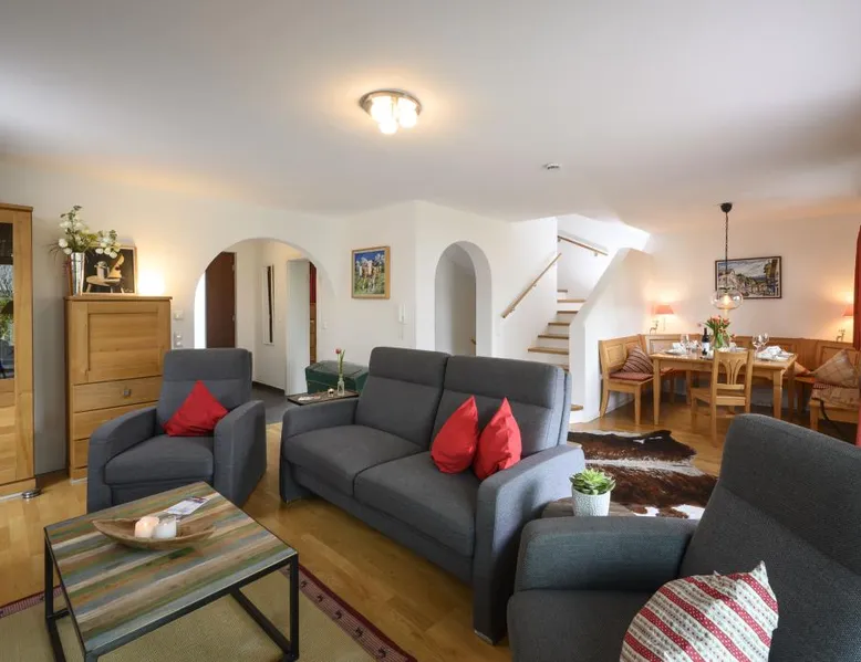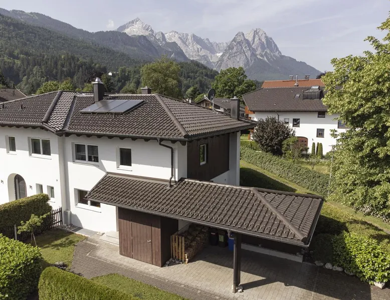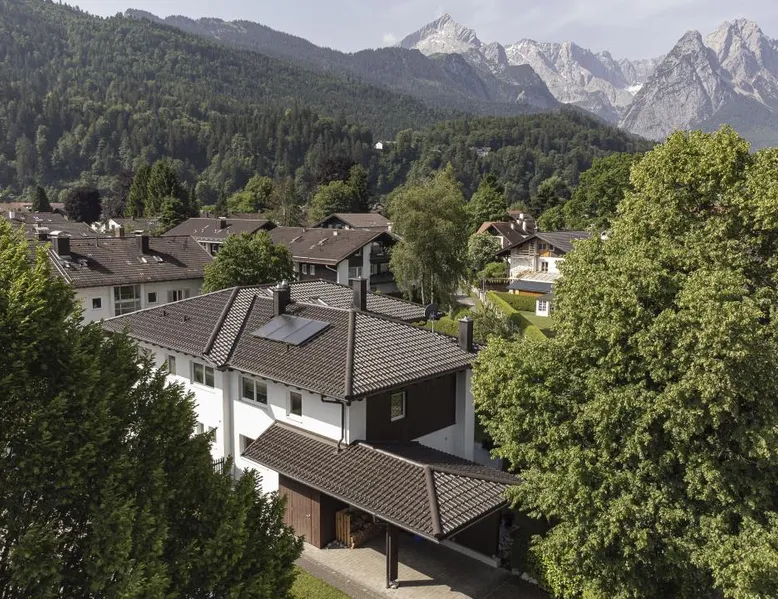 The approximately 122 m2, 4-star-rated holiday home "Windschäufeln" is a cozy and lovingly furnished semi-detached house in a quiet location in Garmisch-Partenkirchen, which can accommodate up to 6 people. The heart of the house is the light-filled living room on the ground floor with a spacious sofa area, satellite/cable tv, a cozy Swedish stove, and a comfortable dining area. The fully equipped kitchen has everything you need to prepare your favorite meals. There is also a cloakroom and a The space small bathroom with shower and toilet on the ground floor. An open staircase leads from the living room to the upper floor. Here you will find three stylishly furnished bedrooms (each with a double bed), two of which have a furnished balcony with a unique view of the surrounding mountains. The modern bathroom with bathtub, double sink, and rain shower invites you to relax. The large South-southwest terrace adjoining the living room with a small garden is an absolute feel-good place. a dining area, an additional small seating area, and deck chairs invite you to relax. The garden is completely fenced in, so that even our little guests and your four-legged friends can play safely. a washing machine, dryer, ironing board, and iron are also available. We are happy to provide a baby cot and high chair free of charge upon request. You can park your car directly at the house. The quiet location in a residential area in the district of Garmisch is the perfect starting point for a variety of activities in every season: long walks, hikes, and mountain bike tours in the warm season, as well as unlimited skiing and snowboarding fun in winter. the "Garmisch Classic" and "Zugspitze" ski areas attract visitors with their varied slopes and unique impressions. Only about a 15-minute walk away, you will find various shopping opportunities, the tourist information office, the spa gardens, the casino, theater, and much more in the pedestrian zone of Garmisch-Partenkirchen. a variety of restaurants are available for culinary holiday enjoyment. Welcome – we look forward to your visit!