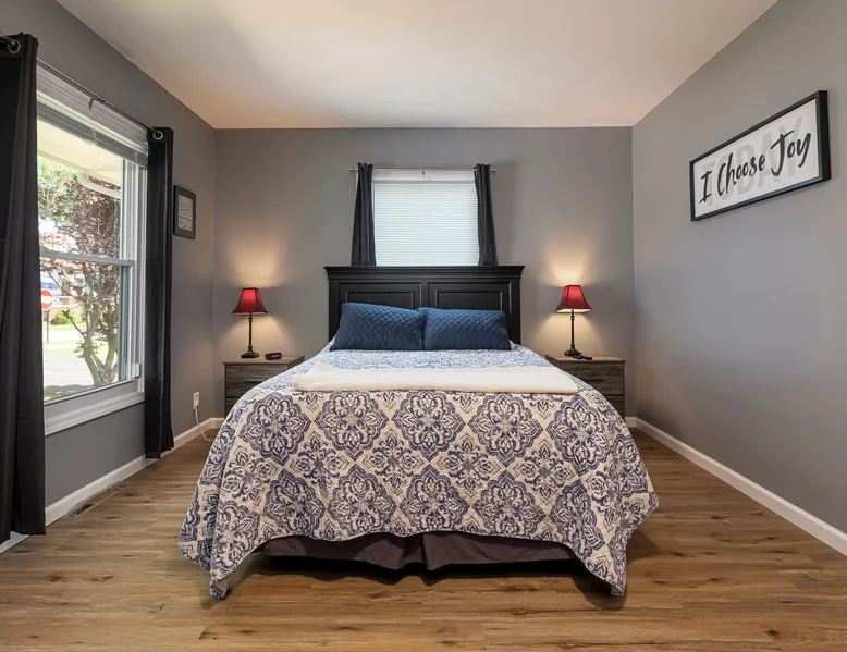 Are you a professional coming to the area looking for a place that feels like home? Or are you in a transition period needing a comfortable mid-term rental? This house is for you if you enjoy being within walking distance of the library, restaurants, coffee shops, bakeries and nightlife. Stay in our quaint, friendly neighborhood and even be within walking distance of the Farmers' Market! We are pet friendly with a fully enclosed fenced backyard for your pet. 7-day minimum. ❤ SLEEPING ARRANGEMENTS: 1 King bed in Bedroom 1 2 Twin beds in Bedroom 2 AMENITY HIGHLIGHTS: Full-sized, fully furnished kitchen Smart TV WIFI Fully fenced backyard Walking distance to downtown Marion WHAT TO KNOW BEFORE YOU BOOK Check-in is after 3 PM. Check-out is before 10 AM. Rental agreement is required with ID verification. Pet Policy: Pets must be reported prior to arrival. $50/pet; per stay. Max 2; dogs only. If unreported, you will be subject to pet fee plus $50 unreported pet fee. Inventory: We provide a "starter package" of inventory for our cabin: 3 rolls of T.P. and 1 full roll of paper towels. This is a mid-term rental- 7 day minimum In March: only one garage bay available.