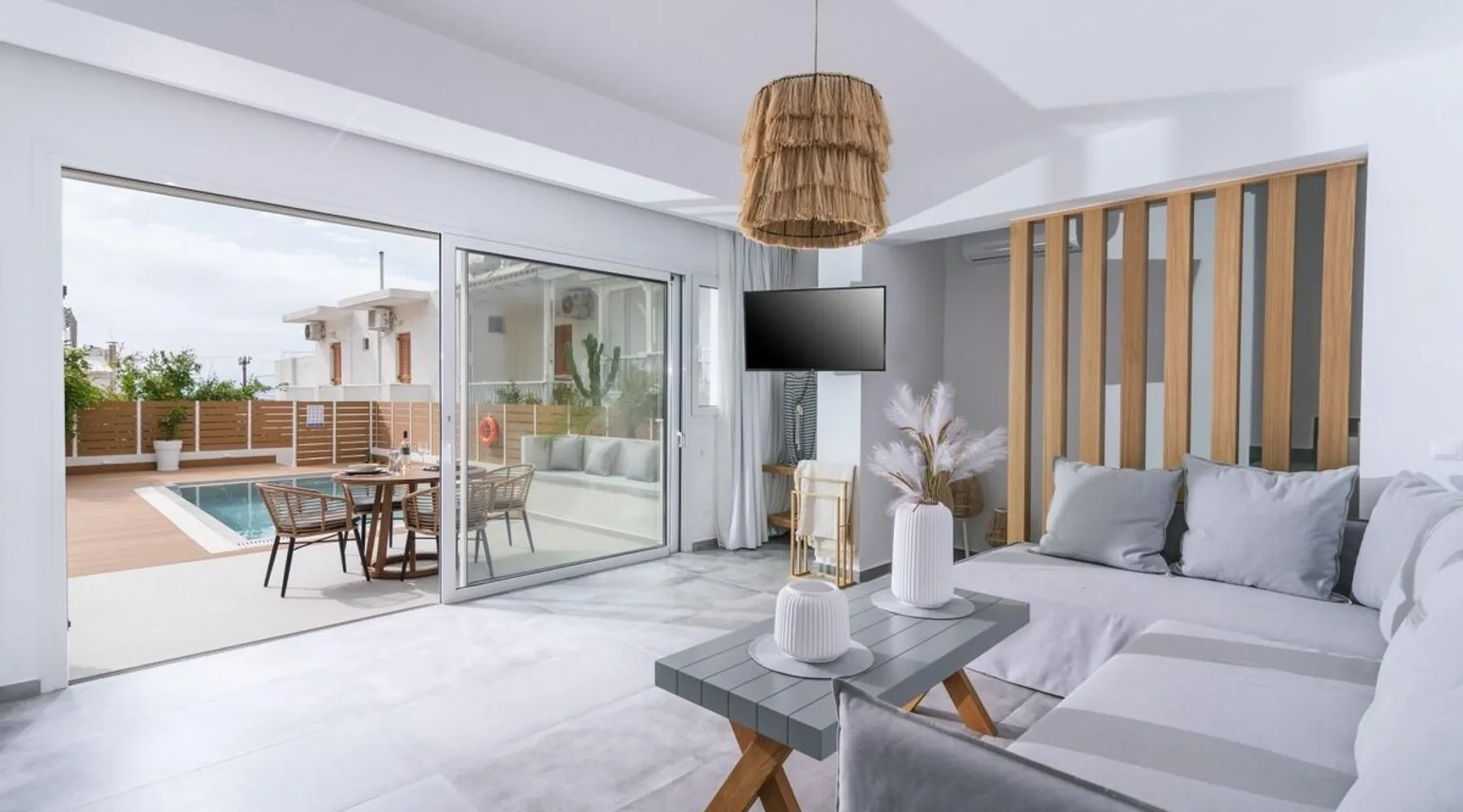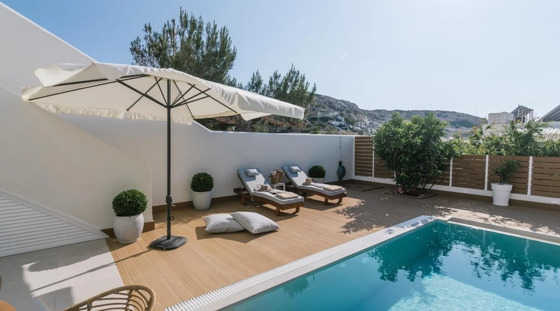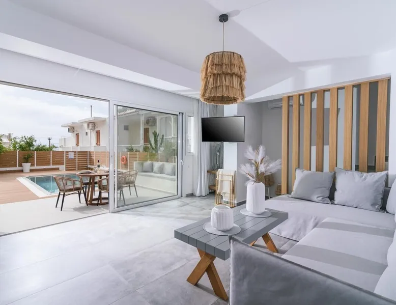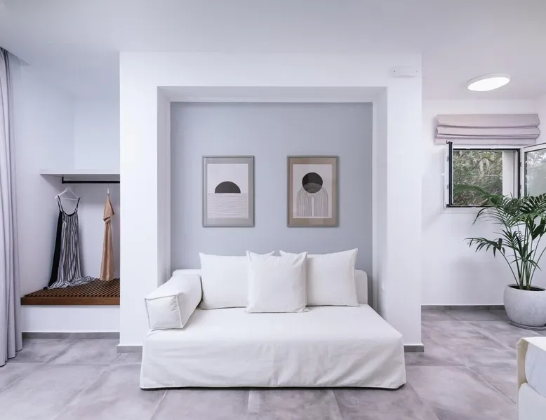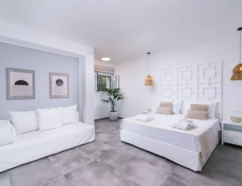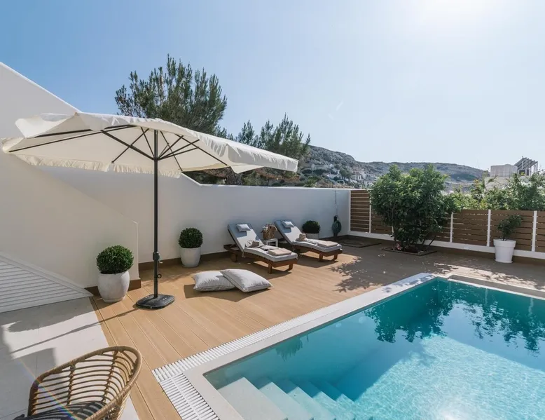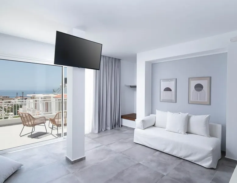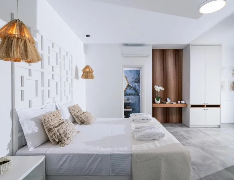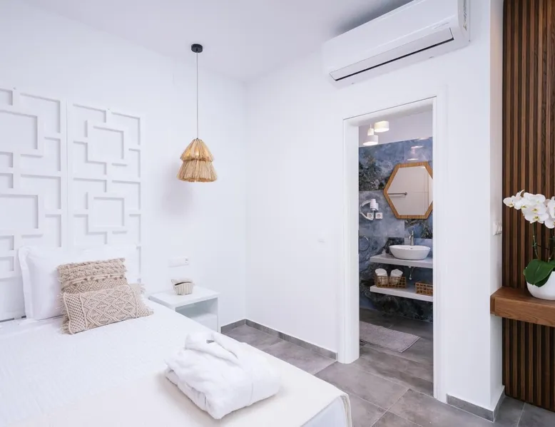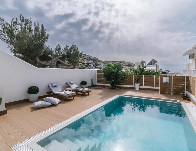 Villa "White in Blue" is an ideal choice for those who want vacations in a quiet environment overlooking the sea. It is only 50 meters from the beach of Matala and has incredible views of the bay and the caves. This is a new, stunning maisonette with roof garden (the only one in Matala which has a private swimming pool), large terraces (ground floor and 1st floor) where a family of 4 or 2 couples can stay. There is also the possibility of adding extra beds for 2 more persons. Registration Details 1039K112K2621201