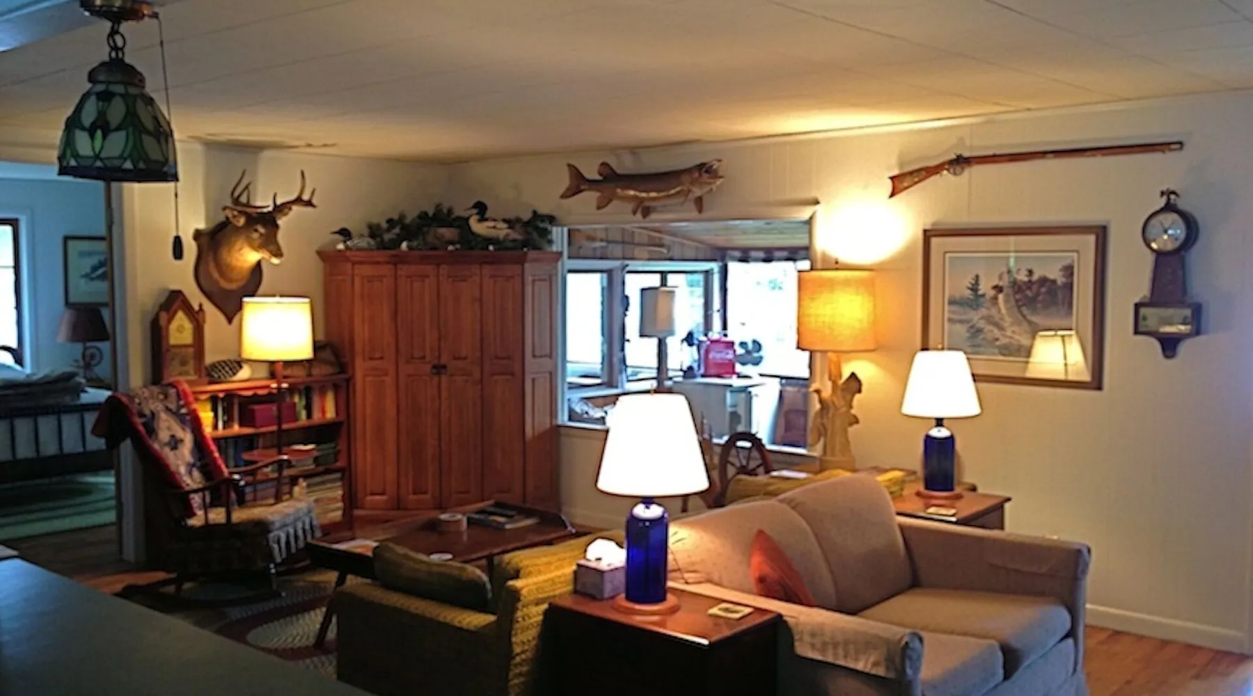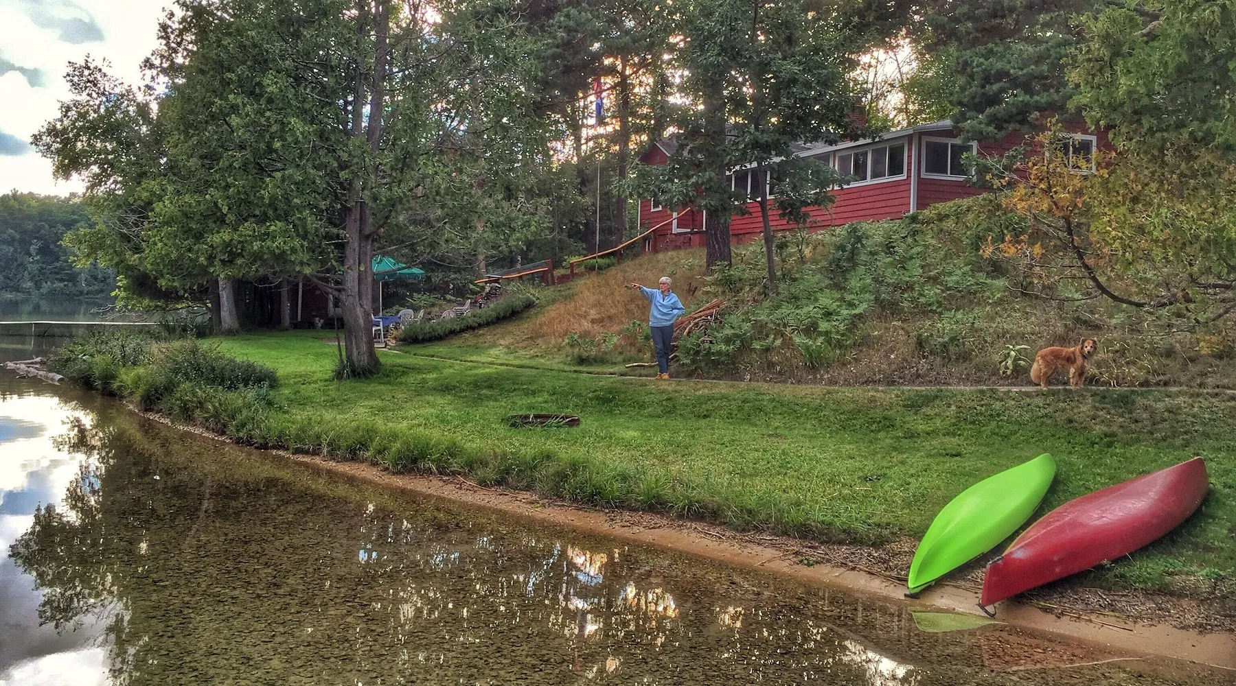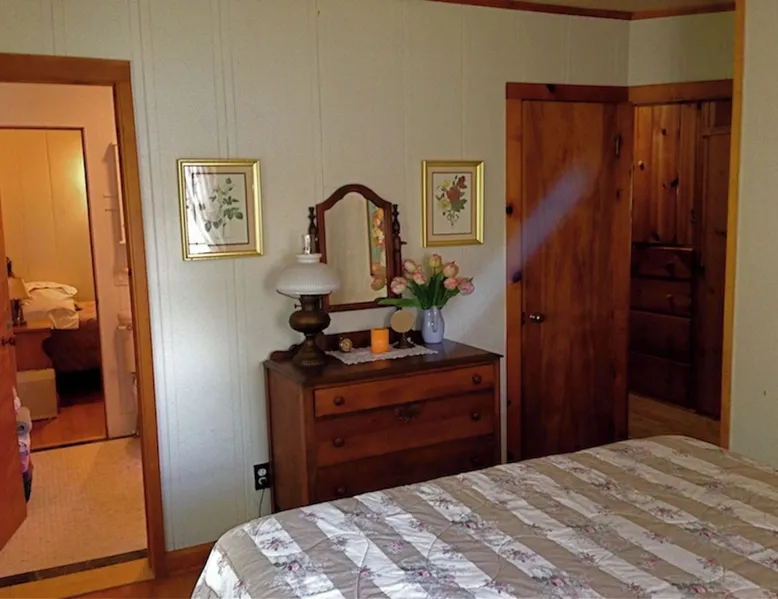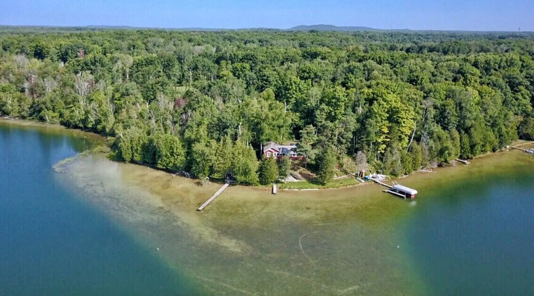 Secluded on 3 acres with a 3/4 mile private drive the cottage is surrounded by nature. Nestled among tall pines and birch trees, Happy Outlook is a charmingly casual Northern Michigan historic cottage of the early 1900’s updated with modern conveniences on it's own very private point. Only 2 other places are on over a 1/2 mile of lakeshore on the 530 acre Ann Lake. Retired Owners are on the property for any needs on 100 ft. of lakeshore. Renters have a 200 ft lakeshore, main cottage, patio, and east deck area with 2 docks, bonfire area, and outdoor shower. The cottage is one mile from the charming village of Lake Ann which has an old-fashioned General store & grocery, Brew Pub with evening entertainment, bank, restaurants, library, 2 parks, museum, tennis courts, pizza places, Post Office & churches. Two miles away is the 27- hole Championship Mistwood Golf Course and restaurant. The cottage is 'centrally' located to Lake Michigan, Sleeping Bear National Lakeshore, Interlochen Center of the Arts & Traverse City, which are each about 12 miles away. An opportunity to appreciate the simple things in life, paddle, fish, hike, enjoy a campfire, a book, local wine, and watch the loons play. The main patio has an old stone fireplace with a wood-fired grill, prep area, charcoal BBQ option, and dining. The patio is wrapped with fragrant lavender. Docks have ladders and we enjoy swimming laps to our raft and back. Canoe, rowboat, and 2 kayaks are available for your use. xANq9