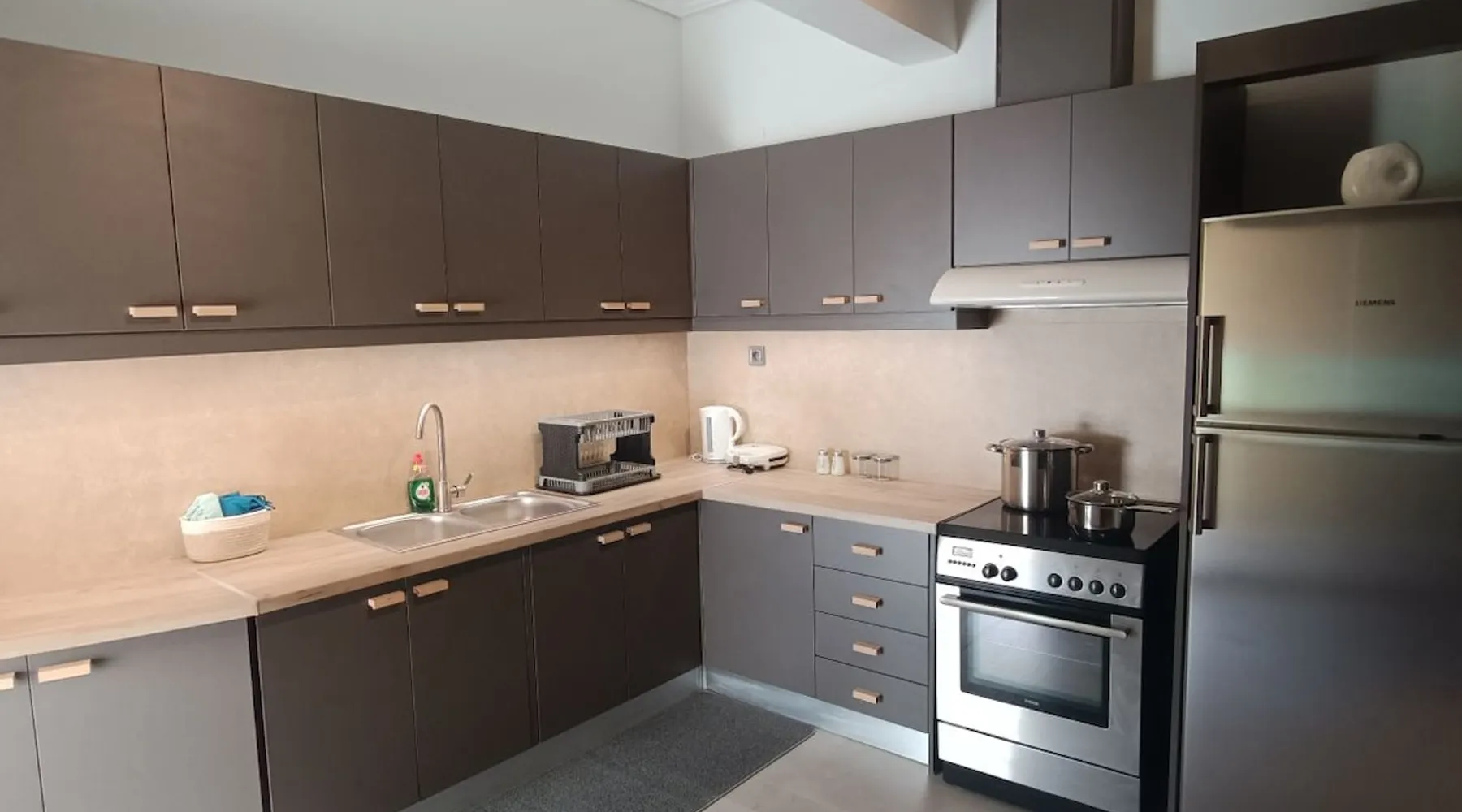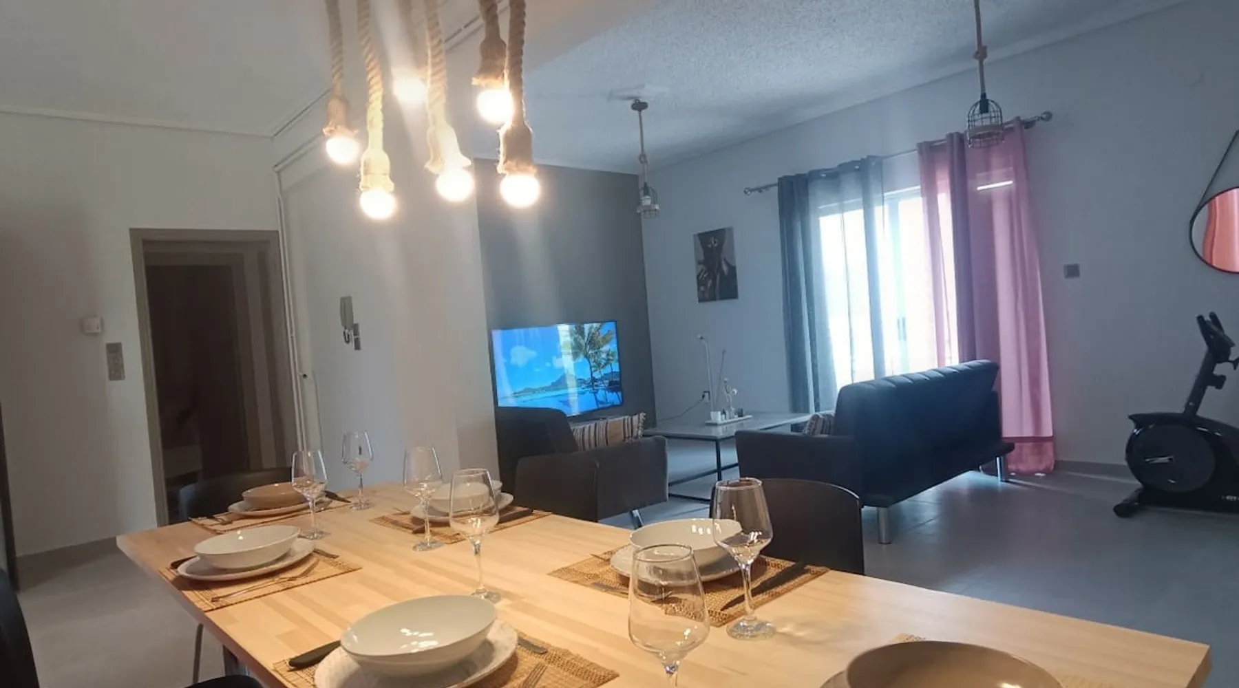 135 sqm renovated apartment in Itea, Fokida, 100 meters from the sea. 20 minutes from Delphi, 30 minutes from Arachova and 15 minutes from Galaxidi. It comfortably accommodates up to two four-member families. The apartment has four air conditioners and a 65-inch smart TV. Registration Details 00002164866