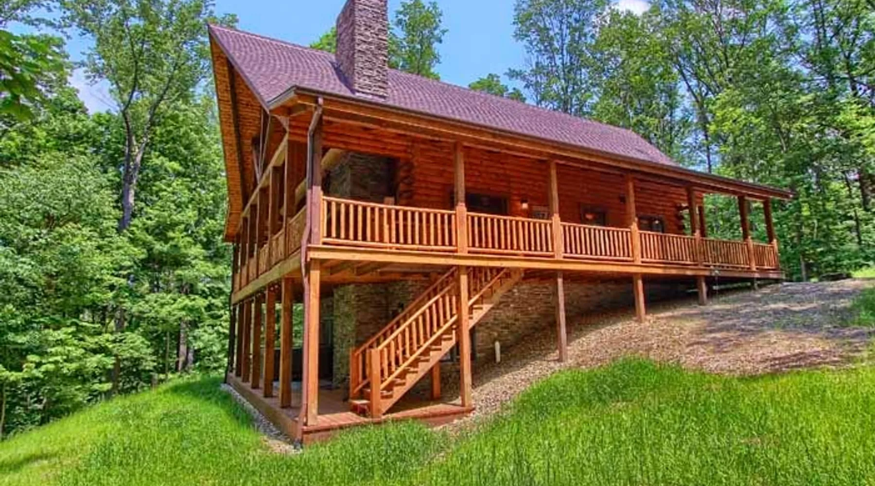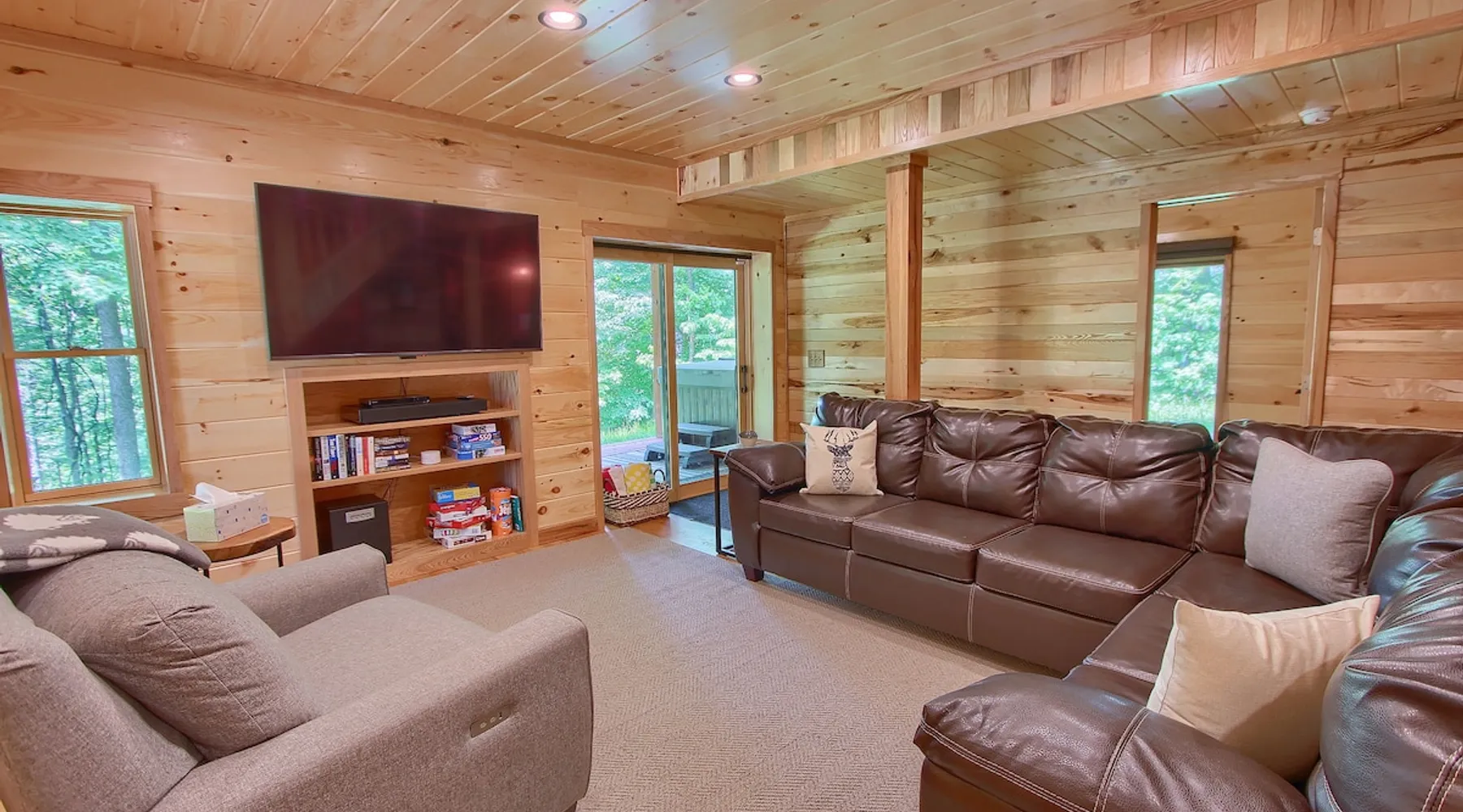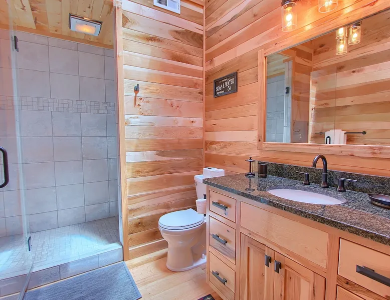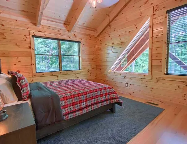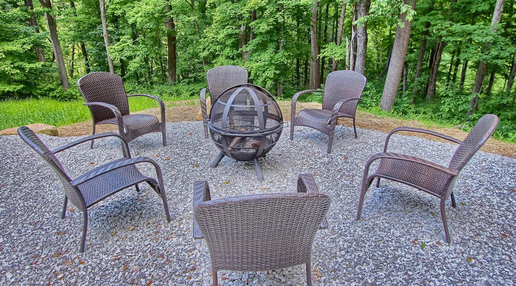 Enjoy your Hocking Hills vacation at this beautifully appointed custom built lodge. Spacious accommodations with wooded views situated on a gated 10 acre property in the Heart of the Hocking Hills. Spend cozy nights in the front of the outdoor fireplace or roast s'mores in the large outdoor fire pit. Easy access to the property with exterior ramp entrance and walk in tile surround shower in the first floor master. The space 4 private bedrooms each with a Queen size bed. The loft bedroom offers a trundle bed with two single beds. Fully equipped and well stocked kitchen to prepare your meal with gas range. Master bedroom is en-suite. Enjoy the gas log indoor and outdoor fireplaces. Finished lower level with additional great room and flat screen TV. Private hot tub with outdoor seating and large outdoor fire pit area. Washer and dryer access. Guest access Private entire log home rental. Sleeps up to 10 guests comfortably.
