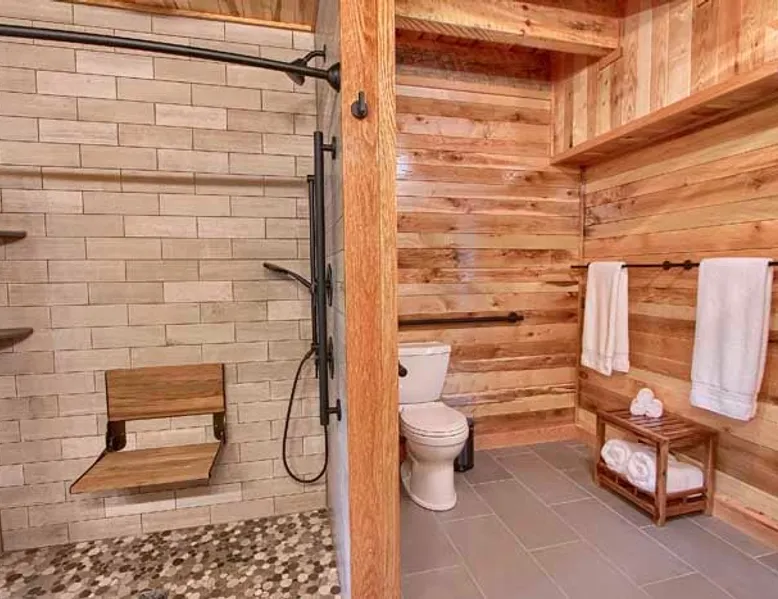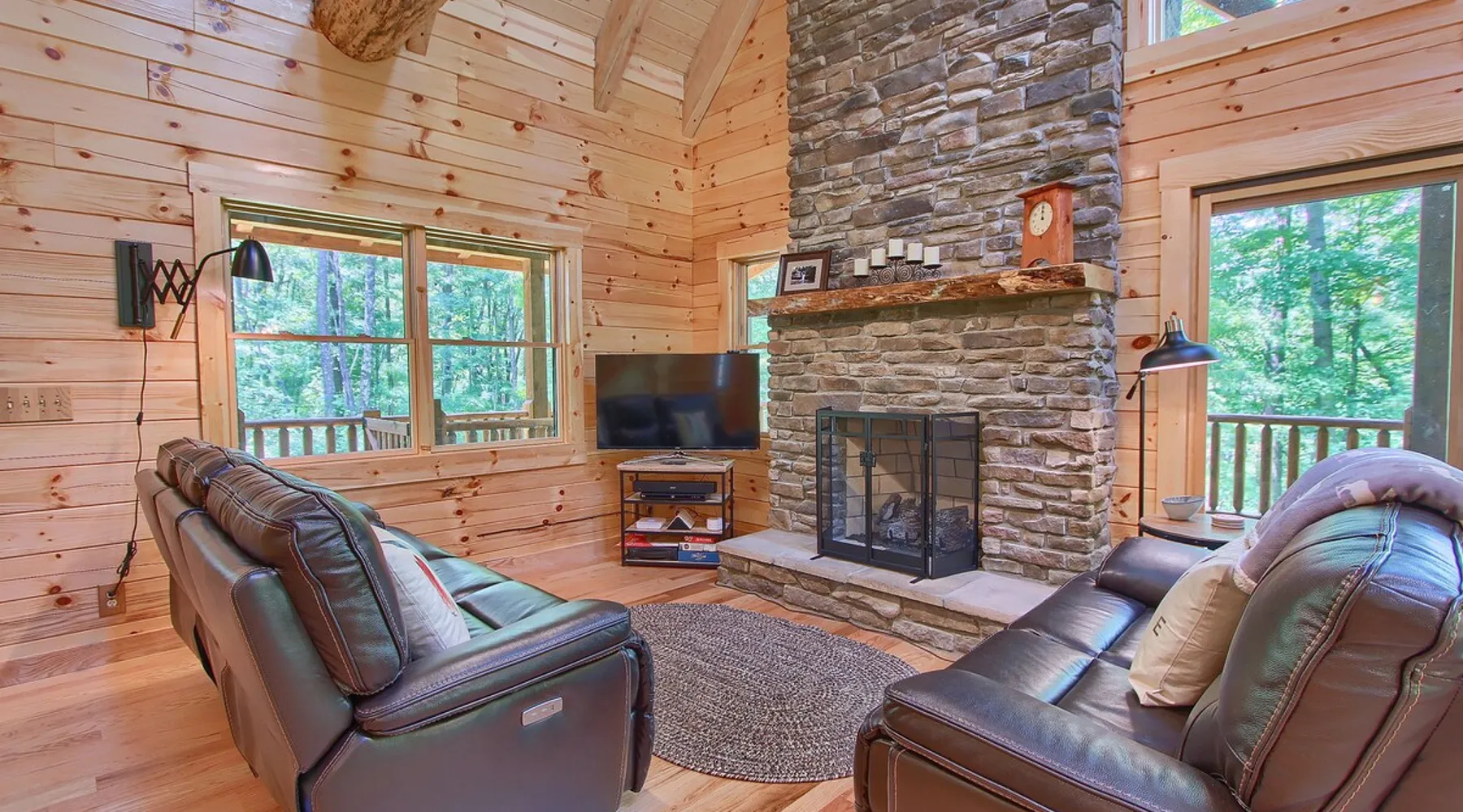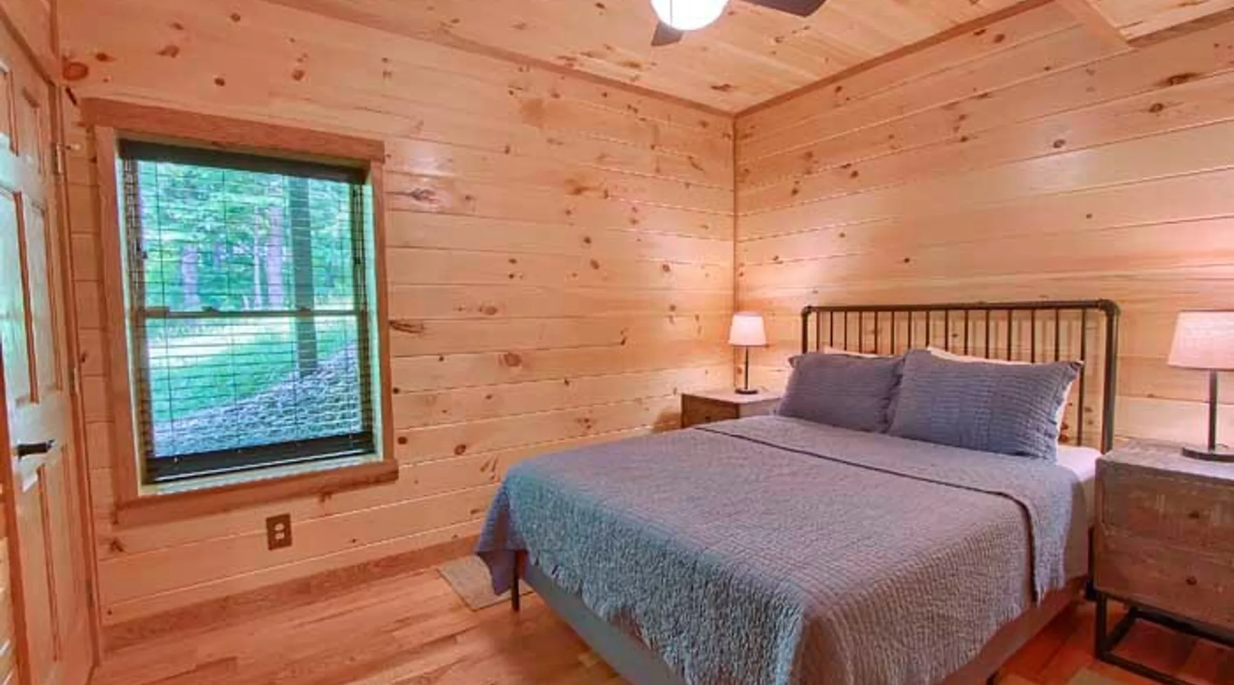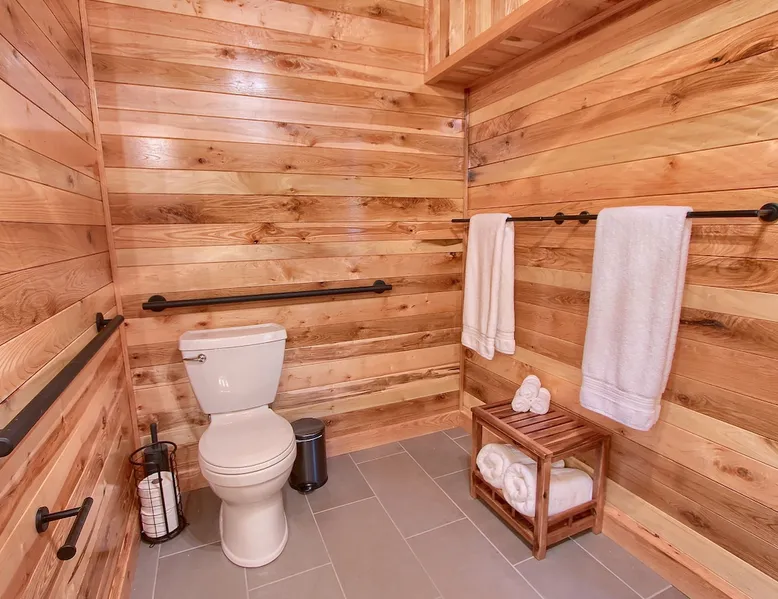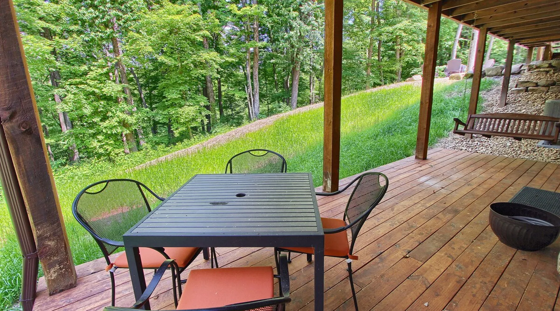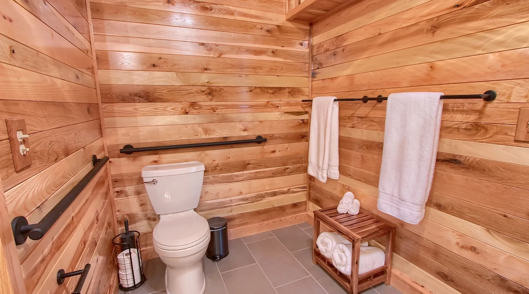 Enjoy your Hocking Hills vacation at this beautifully appointed custom built lodge. Spacious accommodations with wooded views situated on a gated 10 acre property in the Heart of the Hocking Hills. Spend cozy nights in the front of the outdoor fireplace or roast s'mores in the large outdoor fire pit. Easy access to the property with exterior ramp entrance and walk in tile surround shower in the first floor master. The space 4 private bedrooms each with a Queen size bed. The loft bedroom offers a trundle bed with two single beds. Fully equipped and well stocked kitchen to prepare your meal with gas range. Master bedroom is en-suite. Enjoy the gas log indoor and outdoor fireplaces. Finished lower level with additional great room and flat screen TV. Private hot tub with outdoor seating and large outdoor fire pit area. Washer and dryer access. Guest access Private entire log home rental. Sleeps up to 10 guests comfortably.