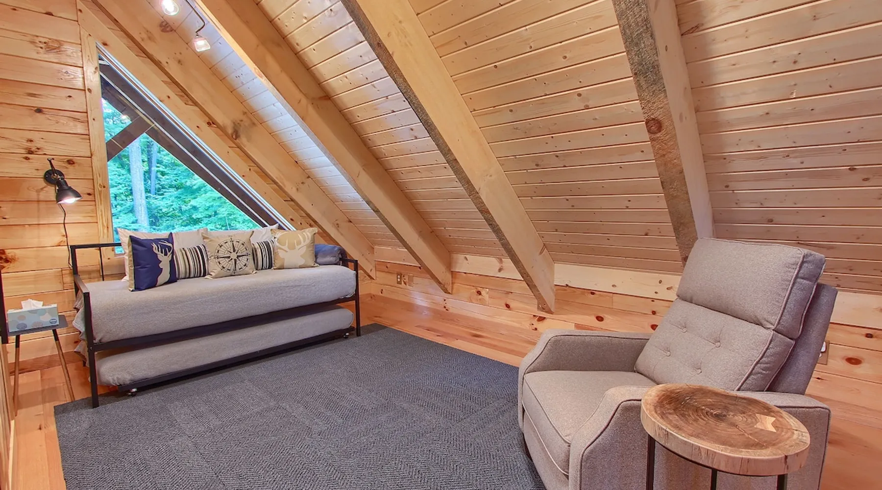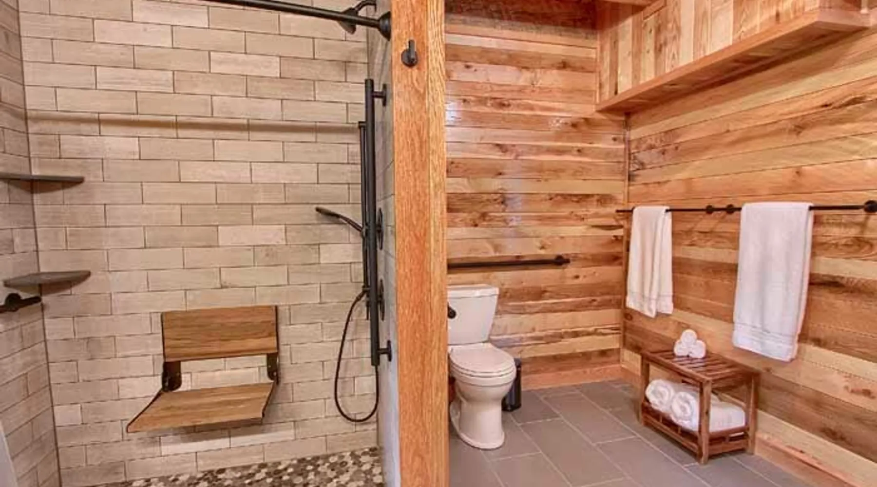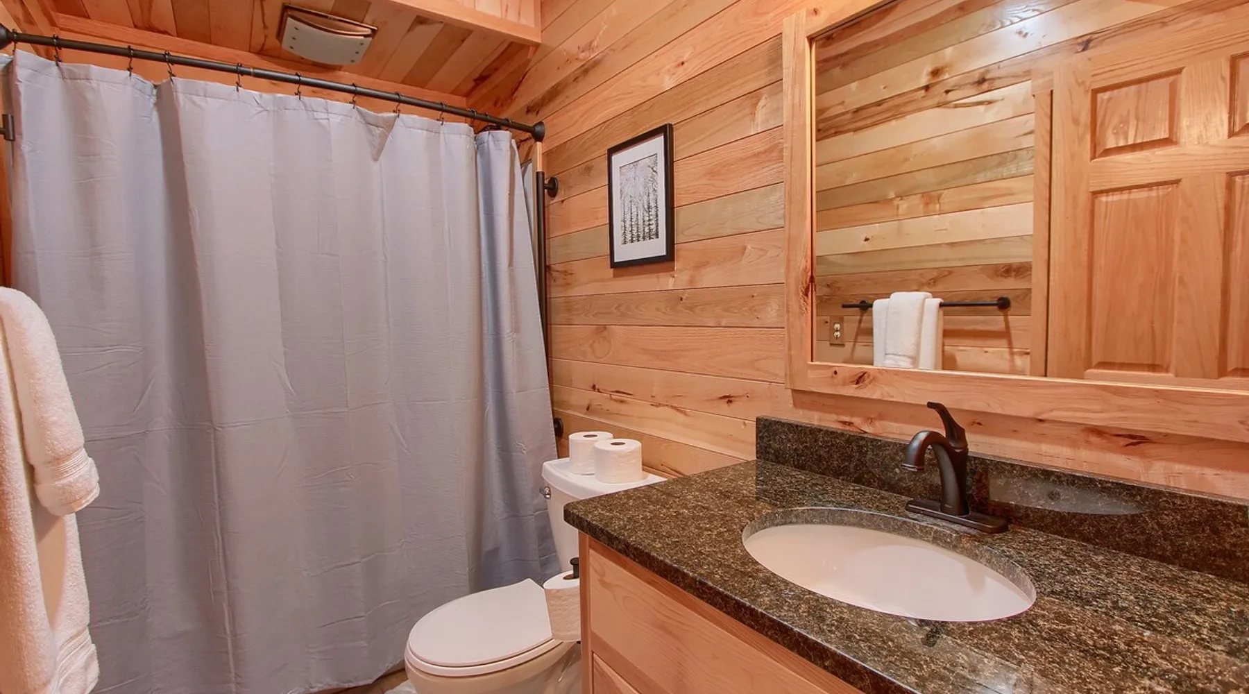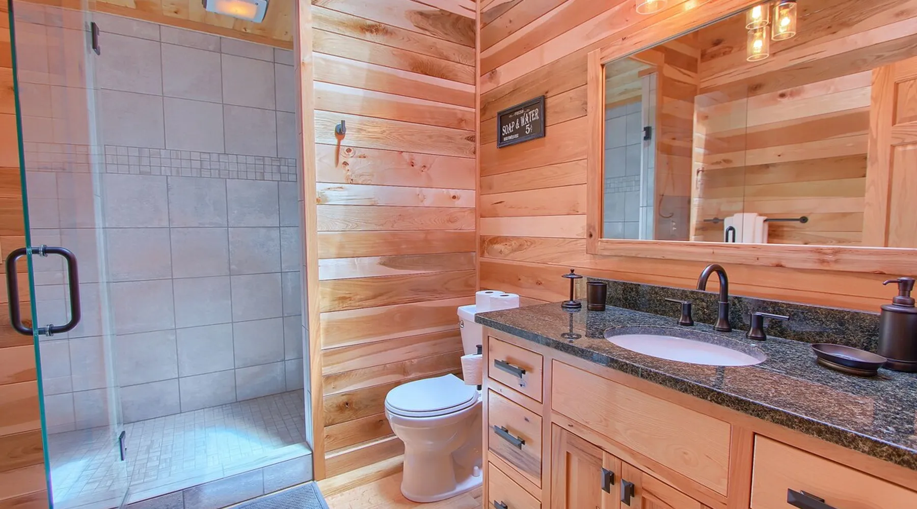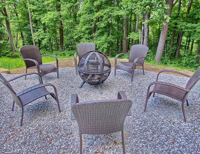 Enjoy your Hocking Hills vacation at this beautifully appointed custom built lodge. Spacious accommodations with wooded views situated on a gated 10 acre property in the Heart of the Hocking Hills. Spend cozy nights in the front of the outdoor fireplace or roast s'mores in the large outdoor fire pit. Easy access to the property with exterior ramp entrance and walk in tile surround shower in the first floor master. The space 4 private bedrooms each with a Queen size bed. The loft bedroom offers a trundle bed with two single beds. Fully equipped and well stocked kitchen to prepare your meal with gas range. Master bedroom is en-suite. Enjoy the gas log indoor and outdoor fireplaces. Finished lower level with additional great room and flat screen TV. Private hot tub with outdoor seating and large outdoor fire pit area. Washer and dryer access. Guest access Private entire log home rental. Sleeps up to 10 guests comfortably.