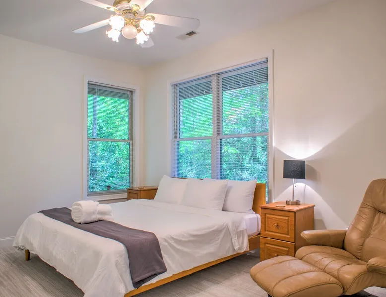 Get ready to experience Mountain Chalet! This 3-bedroom chalet is the perfect spot for your trip to the mountains, you’ll have spectacular waterfalls within minutes, close to Pisgah National Forest, Dupont Forest, and Gorges Forest. The beautiful town of Brevard, with live music, restaurants, and craft brewery scene within 15 minutes. The space You are greeted with an abundance of natural light coming in from the wall of windows in the living room. Offering plenty of comfortable seating to gather around the soaring stone gas fireplace and relax. The piano is a lovely bonus for your musically inclined member of the group. The fully equipped kitchen has an easy flow, and the chef of the group and will have everything needed to cook meals during your stay. Between the eat in kitchen table and the adjoining dining room, there will be room for all to enjoy meals together. The screened in porch and the deck overlooking the front yard are the prime spots to take in the fresh mountain air. The lower level family room, boasting floor to ceiling windows, offers more comfortable seating, with a wood burning fireplace, a large tv for streaming and the perfect space to play board games. A desk space if available for those who need to get some work done, while away from the office. Sitting around the firepit is the ideal ending to a day of exploring. Mountain Chalet will become your favorite place to create memories for years to come! Exclusive Yonder Special: When you book Mountain Chalet you will receive a special code for discounted tickets to the Biltmore Estate! Home Truths: - Sleeps in beds: 6 - Max Occupancy: 8 - Pull out sofa in the lower level - Yonder provides linens for all beds; other occupancy will require guests providing their own linens - Parking for up to 5 vehicles - The garage is available for bike storage and/or parking - The speed limit in the community is 20mph, this is strictly enforced - Internet Speed: Download - 400Mbps - Cleaning fee: Yonder openly shares our Cleaning Fees in a manner of full disclosure, as we think this is the most honest and forthright approach with respect to our guests. Our Cleaning Fees are backed by our Clean Guarantee, which reflects the highest level of standards, pristine environments for our guests, and a level of clean that surpasses any other vacation homes; we literally guarantee it! Quiet Policy: Please note that the home/estate property is located in a very quiet community. Parties, loud noise and unruly behavior are absolutely prohibited, and guests are expected to respect the neighbors and the peace this mountain retreat area affords. Early Check In and/or Late Check Out may be possible, depending on cleaning schedules and other reservations. If it is possible, there may be an additional fee that would be determined based on the time that you wish to check in or out and the seasonal rates. Pets: Many of our guests have allergies so we have maintained a pet-free environment so they can enjoy their vacation without the potential of an allergic reaction. If you have a pet we can recommend some alternatives nearby. Please inquire for details regarding payment, the cancellation policy, military discounts, and trip insurance. Note: Reservations over 30 days are subject for review prior to acceptance. A separate rental agreement will be required for 90+ day stays. Last Minute Bookings: Reservations made within 7 days of check-in require additional documentation before confirmation.