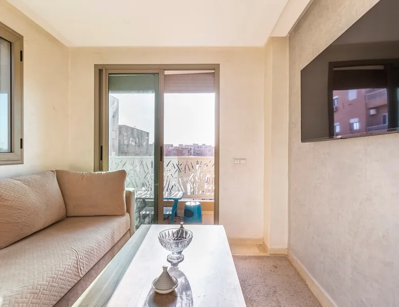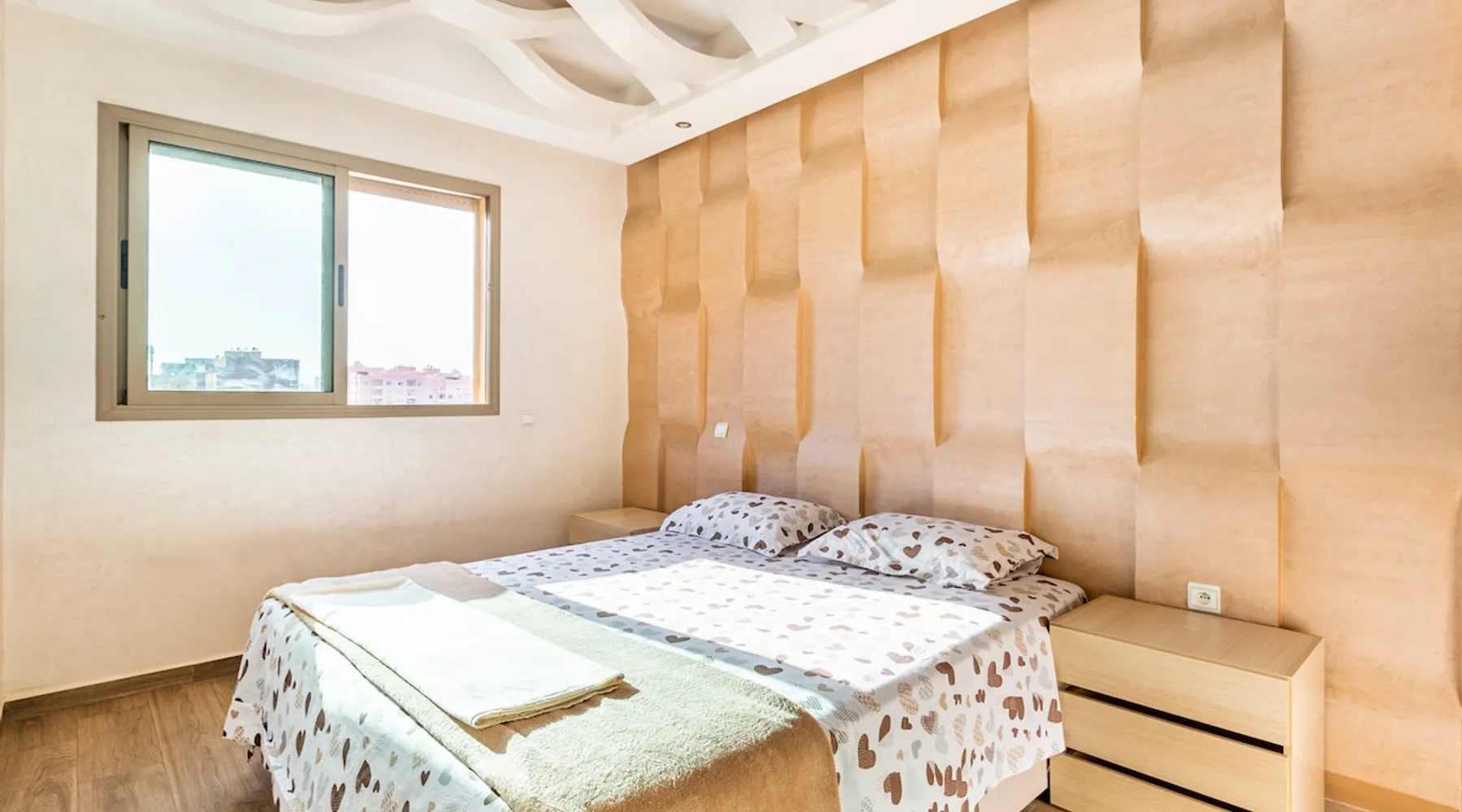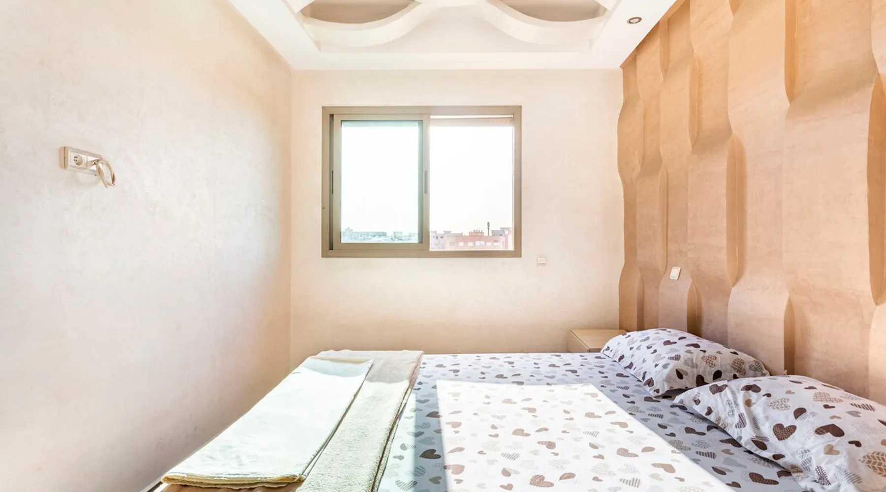 Adjoining private air-conditioned room in a magnificent apartment, with its private shower and toilet and 100Mbps fiber optic WiFi. I decided to share this beautiful room with travelers, the sense of sharing and the eco principle of this platform impressed me a lot, so I am here among you. Note : The room contains its private shower and toilet intended exclusively for the traveler, and access is in the room to go to the toilet The space We offer you a private room with its private shower and toilet also intended exclusively for the traveler, in a magnificent modern apartment close to the city center of Marrakech, located on the 2nd floor of the residence. A quiet, high standard and well secured residence, with the fastest 100Mbps Fiber Optic Wifi in the country, very close to all the necessary daily needs. And 10 minutes from the city center Guest access You can use the apartment's kitchen and dining room, these are spaces shared with other travelers During your stay Yes, I like to share and help and facilitate the stay of travelers and this sense which encouraged me to be here on this platform and share this beautiful private room which has a private shower and toilet and air conditioning and wifi 100Mbps optical fiber Other things to note For locals, Marriage certificate required, we do not accept unmarried couples