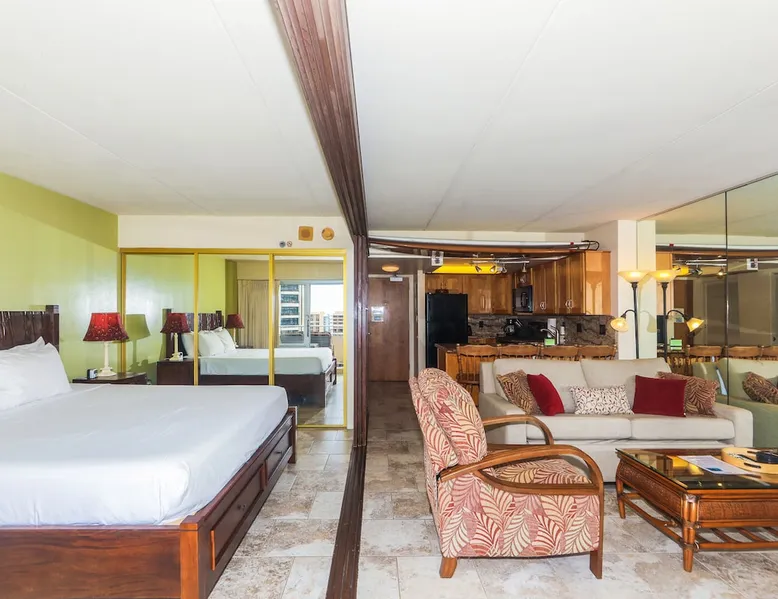 You've found your home away from home! This condo located within the Ilikai Hotel is the perfect spot for your vacation on Oahu. Wake up to the beautiful ocean view or relax on your spacious and private lanai at watch the surfers riding the waves in. Take in your front row seat for Friday Night Fireworks over the lagoon! This 1-bedroom is a spacious 500 sq ft with a private 120-sq ft lanai, recently updated with travertine tile flooring throughout, granite countertops, upgraded cabinetry. The space 1 Bedroom Deluxe Lagoon View on the 15th Floor! You've found your home away from home! This condo located within the Ilikai Hotel is the perfect spot for your vacation on Oahu. Wake up to the beautiful ocean view or relax on your spacious and private lanai at watch the surfers riding the waves in. Take in your front row seat for Friday Night Fireworks over the lagoon! This 1-bedroom is a spacious 500 sq ft with a private 120-sq ft lanai, recently updated with travertine tile flooring throughout, granite countertops, upgraded cabinetry. The condo sleeps 2 with a King bed. For added privacy, there is a sliding shoji divider between the living area and bedroom. The kitchen is stocked and furnished to provide you the comforts of home while on vacation. Smart TV with cable TV access & FREE high speed internet access with password protected WIFI is included. Beach Access? The ramp from the hotel lobby leads directly to the Duke Kahanamoku Lagoon & the famous Waikiki beach! You'll be on the beach and in the sand in minutes! The Ilikai Hotel is well known as being the backdrop for the original Hawaii 5-0 television show. Located at 1777 Ala Moana Boulevard, the Ilikai Hotel is right around the corner from the Hawaii Convention Center, Ala Moana Shopping Center and-of course-the famous Waikiki Beach. The Ilikai offers two swimming pools, including a shallow pool with lounge chairs. Both pool decks along with the courtyard offers a space for you to lounge & sunbathe. There are coin-operated laundry facilities on each floor. Security is on property 24/7. Parking is available for an additional cost of $45/day, valet only or you can park at a nearby garage for $28/day. (Rates subject to change without advance notice). This building is perfect for snowbirds looking for an escape during the winter months, workers on temporary assignment, or residents relocating to Honolulu for work as the condos are fully furnished & ready for move in. Registration Details 260100070347, 1530, TA-170-548-4288-01
