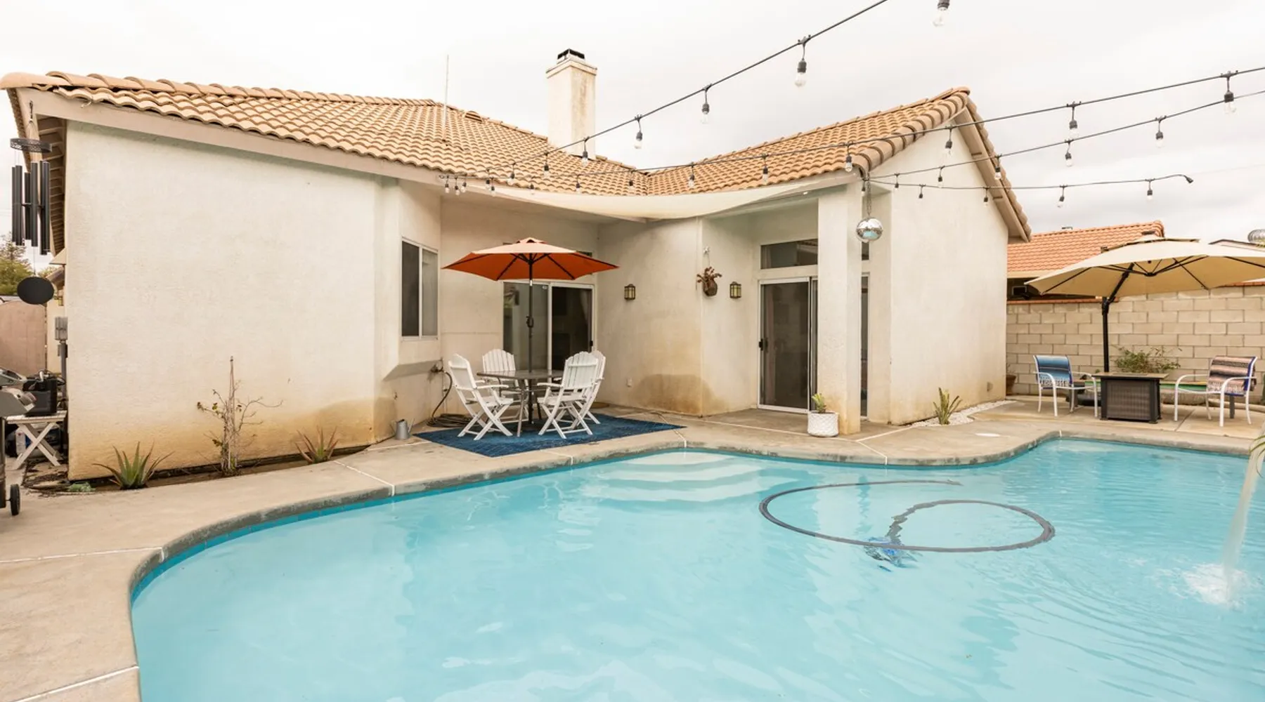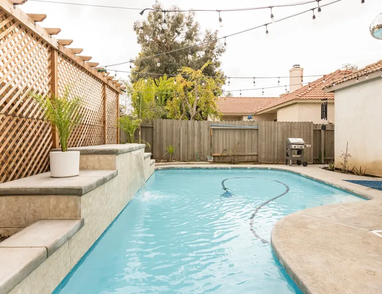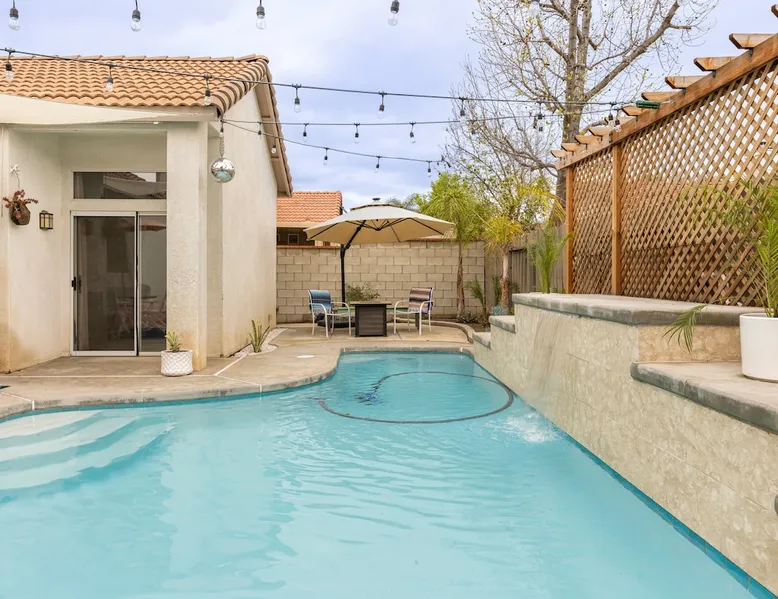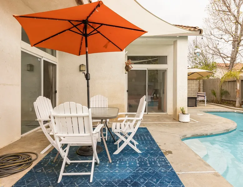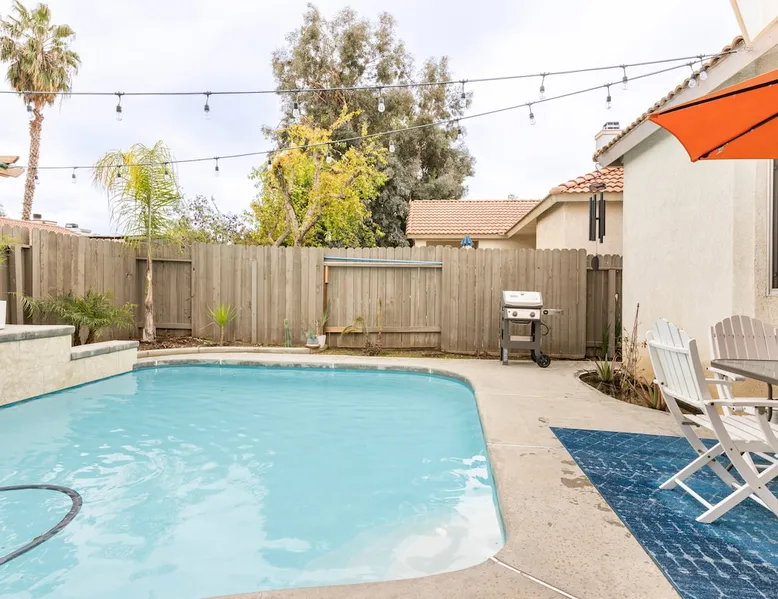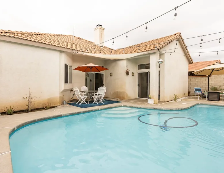 Escape to a stunning 3 bed, 2 bath home with a private pool! This stylish and modern oasis is the perfect retreat for a group getaway or family vacation. Enjoy the spacious living areas, fully equipped kitchen, and luxurious bedrooms, all designed with your comfort in mind. Step outside and soak up the sun by the pool or relax in the shaded outdoor area by the fire pit. With a prime location just minutes from local attractions, this is the ultimate vacation destination. Book your stay today! The space Welcome to our newly renovated and stylish 3 bedroom 2 bathroom home, a perfect retreat for your next vacation. Our home is designed with modern aesthetics and is equipped with all the necessary amenities for a comfortable and luxurious stay. Whether you're a family on a holiday, a group of friends looking for a getaway or a couple seeking a romantic escape, our home is the perfect choice for you. As you enter our home, you'll be welcomed by an open plan living room that seamlessly flows into the dining area and fully equipped kitchen. The living room is furnished with comfortable sofas and a large flat-screen TV where you can relax and unwind after a long day. The dining area can comfortably seat six guests, perfect for enjoying home-cooked meals together. The kitchen is equipped with state-of-the-art appliances, including a refrigerator, dishwasher, oven, and microwave. The kitchen also has a breakfast bar where you can enjoy your morning coffee or a quick bite to eat. The master bedroom is located on the first floor and is furnished with a comfortable king-sized bed and an ensuite bathroom. The second bedroom is furnished with a comfortable queen-sized bed. The third bedroom is used as an office space, which is perfect for guests who work remotely. Our home also features a stunning outdoor space, perfect for soaking up the California sun. The highlight of our outdoor space is the private swimming pool where you can take a refreshing dip on a hot day. The pool area is furnished with comfortable sun loungers and an outdoor dining area, perfect for enjoying meals al fresco. Our home is conveniently located in a quiet residential neighborhood, yet it is only a short drive from some of the city's most popular amenities. You'll also find plenty of restaurants and shopping options nearby. We take pride in providing our guests with a luxurious and comfortable stay. Our home is professionally cleaned before each guest's arrival, and we provide fresh linens and towels for your convenience. We also offer free high-speed Wi-Fi, cable TV, and air conditioning throughout the house