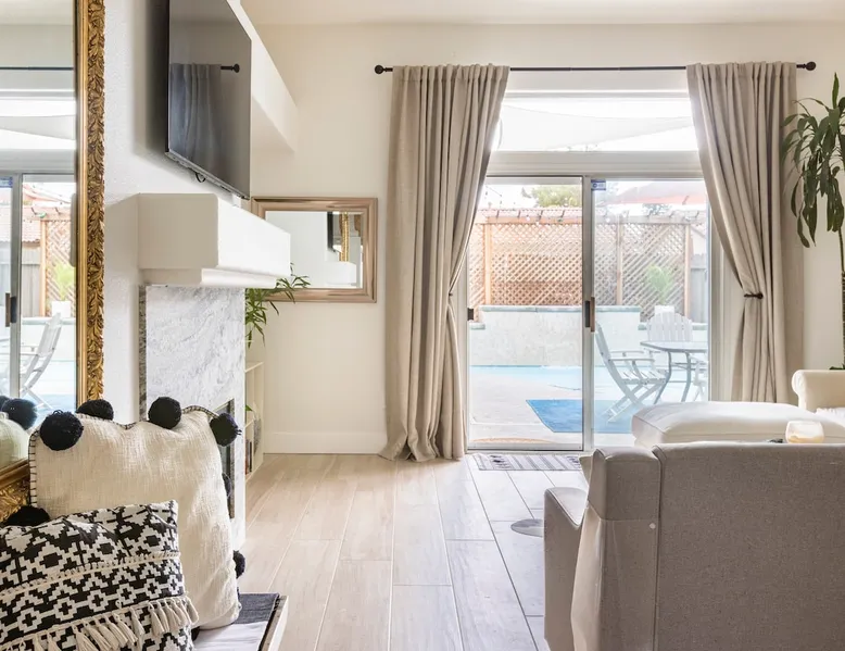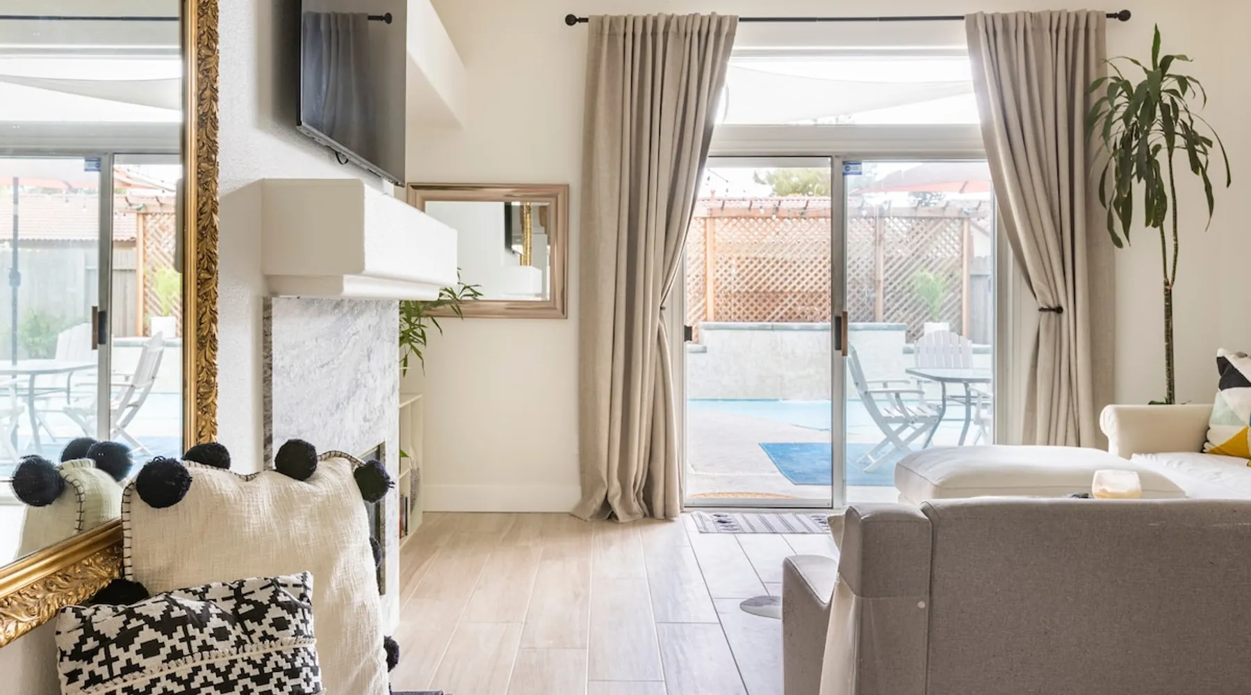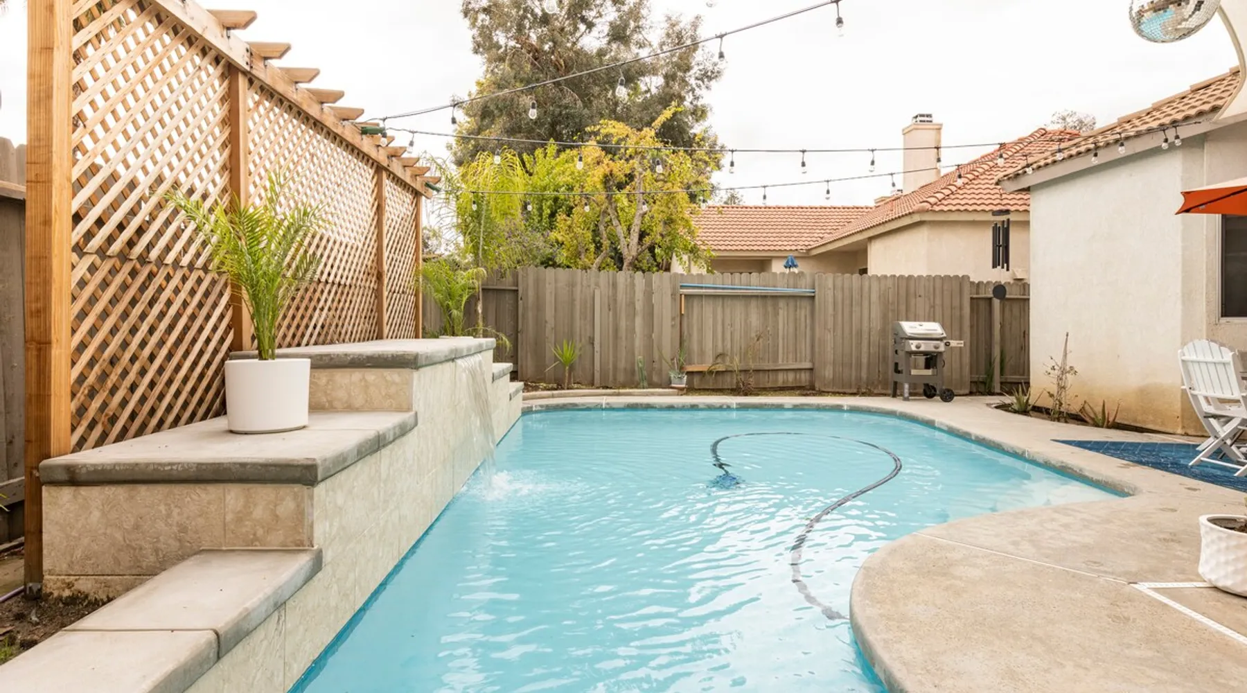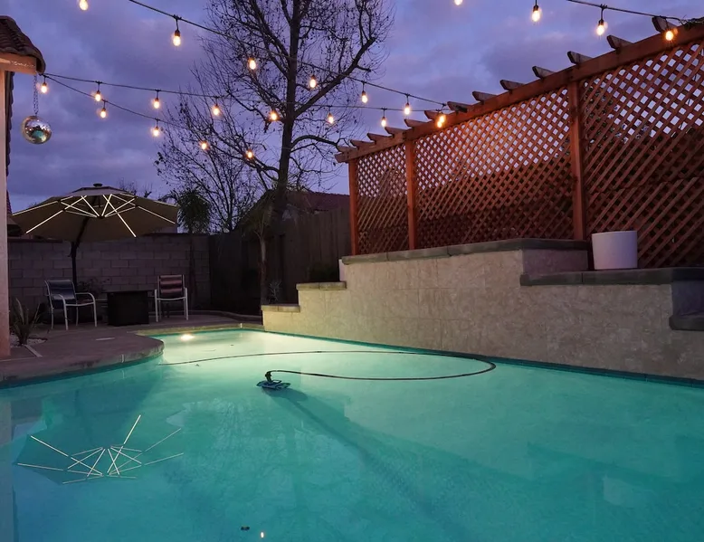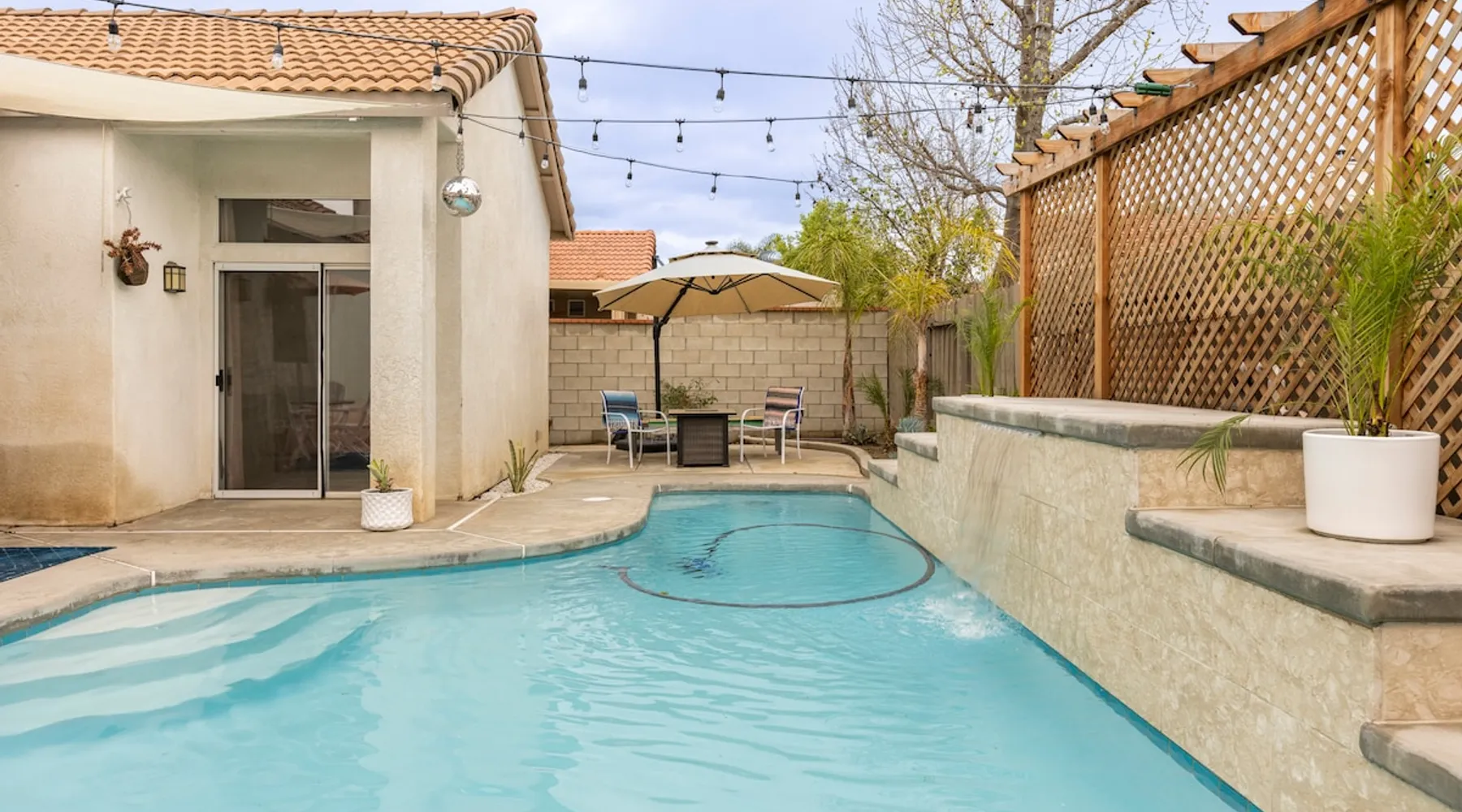Escape to a stunning 3 bed, 2 bath home with a private pool! This stylish and modern oasis is the perfect retreat for a group getaway or family vacation. Enjoy the spacious living areas, fully equipped kitchen, and luxurious bedrooms, all designed with your comfort in mind. Step outside and soak up the sun by the pool or relax in the shaded outdoor area by the fire pit. With a prime location just minutes from local attractions, this is the ultimate vacation destination. Book your stay today! The space Welcome to our newly renovated and stylish 3 bedroom 2 bathroom home, a perfect retreat for your next vacation. Our home is designed with modern aesthetics and is equipped with all the necessary amenities for a comfortable and luxurious stay. Whether you're a family on a holiday, a group of friends looking for a getaway or a couple seeking a romantic escape, our home is the perfect choice for you. As you enter our home, you'll be welcomed by an open plan living room that seamlessly flows into the dining area and fully equipped kitchen. The living room is furnished with comfortable sofas and a large flat-screen TV where you can relax and unwind after a long day. The dining area can comfortably seat six guests, perfect for enjoying home-cooked meals together. The kitchen is equipped with state-of-the-art appliances, including a refrigerator, dishwasher, oven, and microwave. The kitchen also has a breakfast bar where you can enjoy your morning coffee or a quick bite to eat. The master bedroom is located on the first floor and is furnished with a comfortable king-sized bed and an ensuite bathroom. The second bedroom is furnished with a comfortable queen-sized bed. The third bedroom is used as an office space, which is perfect for guests who work remotely. Our home also features a stunning outdoor space, perfect for soaking up the California sun. The highlight of our outdoor space is the private swimming pool where you can take a refreshing dip on a hot day. The pool area is furnished with comfortable sun loungers and an outdoor dining area, perfect for enjoying meals al fresco. Our home is conveniently located in a quiet residential neighborhood, yet it is only a short drive from some of the city's most popular amenities. You'll also find plenty of restaurants and shopping options nearby. We take pride in providing our guests with a luxurious and comfortable stay. Our home is professionally cleaned before each guest's arrival, and we provide fresh linens and towels for your convenience. We also offer free high-speed Wi-Fi, cable TV, and air conditioning throughout the house