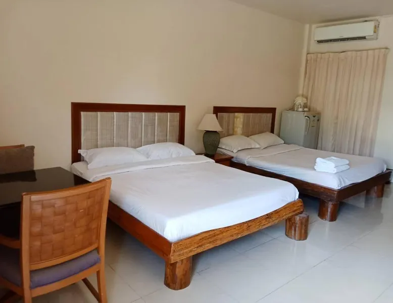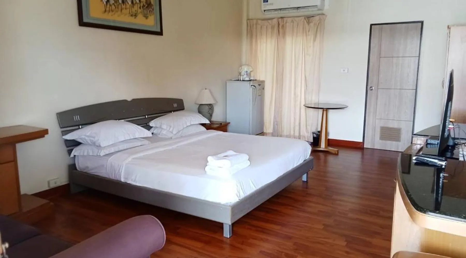 Comfortable Accommodations: Thai Ngam Palace Hotel in Chiang Mai offers family rooms with air-conditioning, balconies, and private bathrooms. Each room includes a tea and coffee maker, free toiletries, and a work desk. Leisure Facilities: Guests can relax in the garden or on the terrace. The hotel features a restaurant serving Thai cuisine and complimentary WiFi throughout the property. Convenient Services: Private check-in and check-out, a lounge, and a 24-hour front desk ensure a comfortable stay. Additional amenities include a minimarket, bicycle parking, and free on-site private parking. Location and Access: Located 53 mi from Khon Kaen Airport, the hotel provides easy access to local attractions. The spacious double room provides air conditioning, a tea and coffee maker, a balcony with garden views as well as a private bathroom featuring a shower. The unit offers 1 bed.