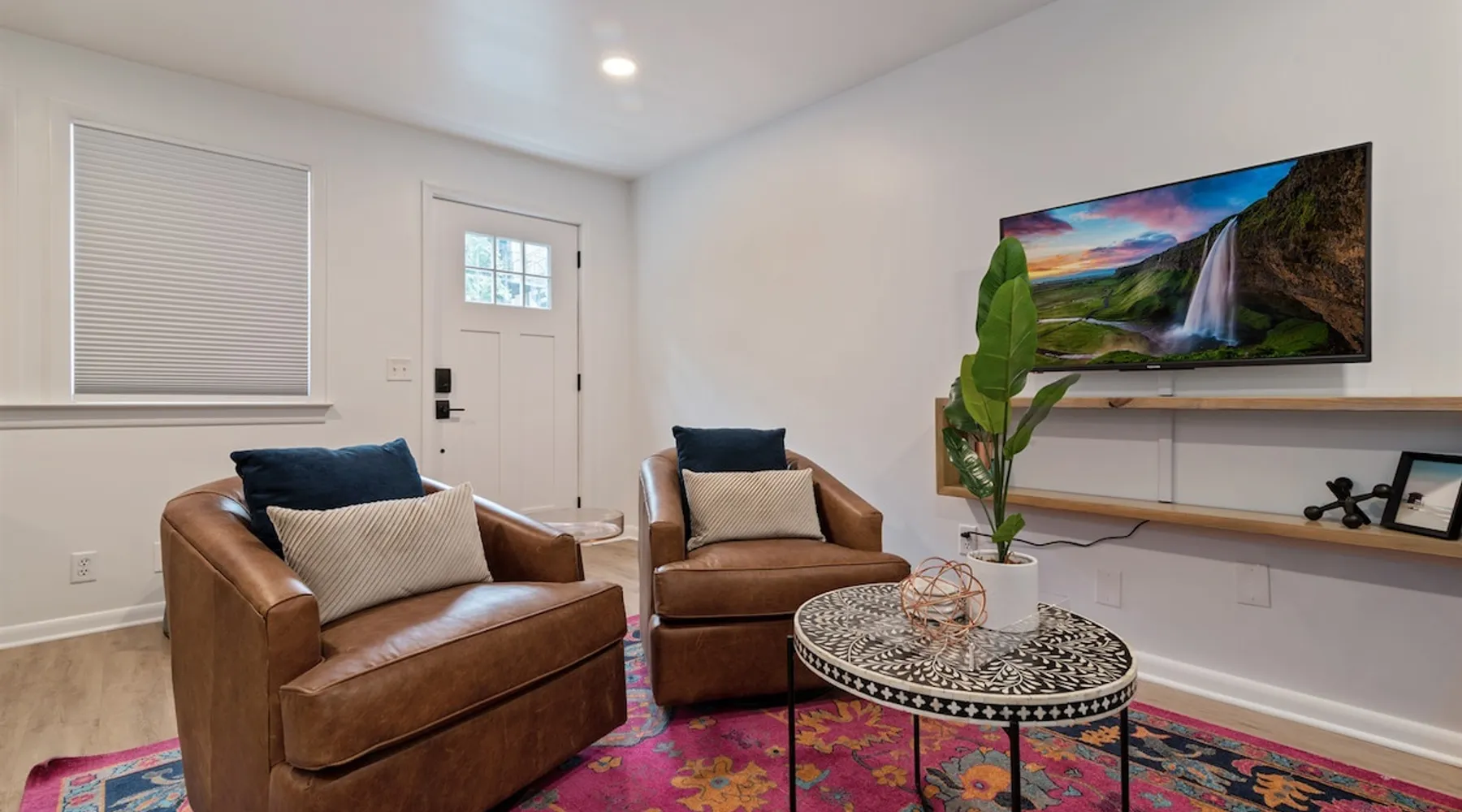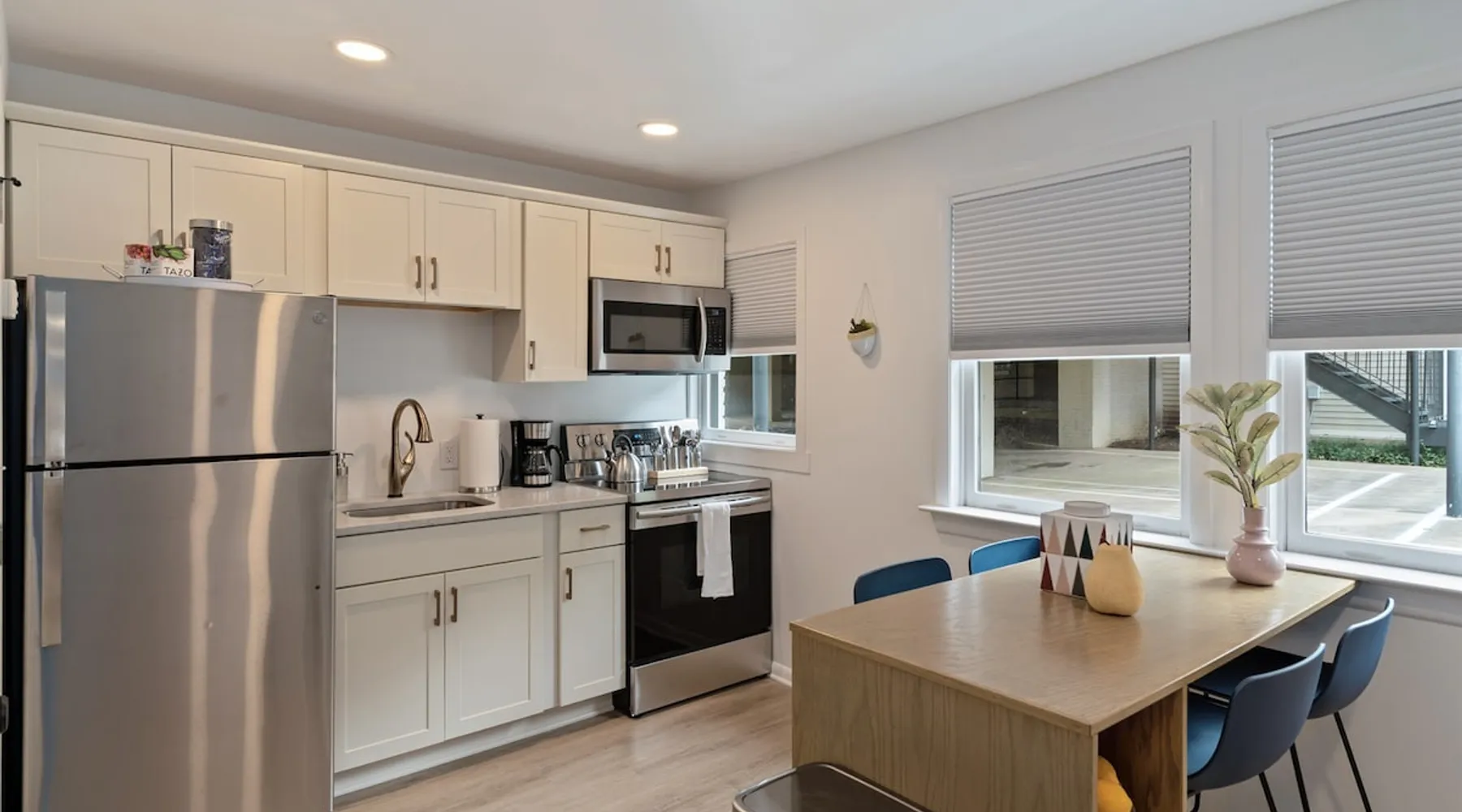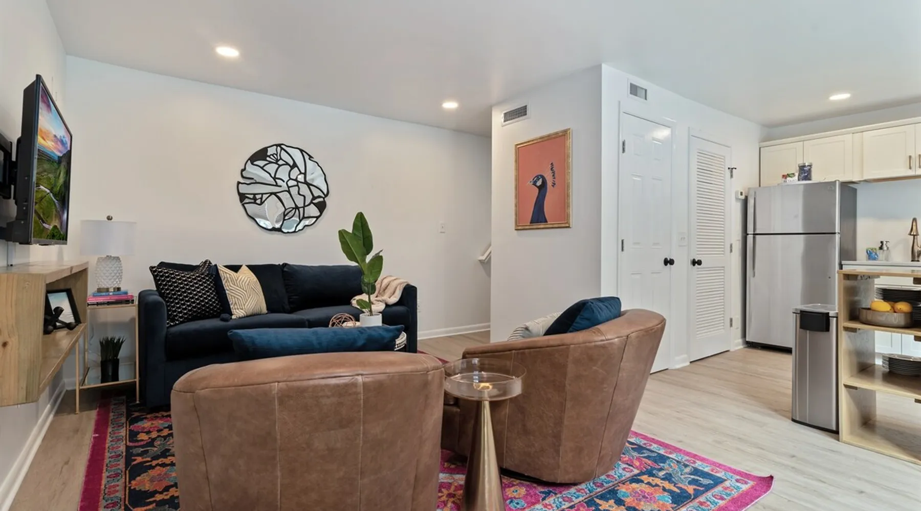 🛏️ Sleeps 5 w/ king bed, twin daybed & queen sleeper sofa 🛁 Full bath + blackout shades, ceiling fan & cozy comforts 🍳 Fully stocked kitchen + plush seating & Smart TV 🐾 Pet friendly! Up to 2 well-behaved pups welcome (fee applies) 🚗 Includes 1 dedicated off-street parking space 🎓 Walk to Belmont, Vanderbilt, shops & Music Row sights The space Welcome to Vanderbilt House—a beautifully restored two-story carriage home from the 1920s in the heart of Hillsboro Village. Part of the ComeVisitNashville collection, this flexible space offers comfort, style, and location for families, couples, and small groups. SLEEP & STAY 🛏️ Upstairs Bedroom: King memory-foam bed, twin daybed, blackout shades, ceiling fan, vanity, and storage. 🛋️ Queen Sofa Bed: Located in the first-floor living room—ideal for extra guests. 🚿 Full Bathroom: Combo tub/shower, plush towels, full-length mirror, and essentials. LOUNGE & CONNECT 🛋️ Living Room: Comfy seating, board games, Smart TV, and Bluetooth speaker. 📺 Entertainment: Bring your streaming logins and unwind with a movie night. COOK & DINE 🍳 Fully Stocked Kitchen: Includes microwave, toaster, coffee maker, full-size appliances, and all cookware. 🍷 Dining Bar: Perfect for shared meals and morning coffee. FAMILY & PET FRIENDLY 👨👩👧 Sleeps up to 5: Great for couples, families, or groups of friends. 🐾 Bring Your Dogs: Up to 2 well-behaved pups welcome (nightly fee; see House Rules). PARKING & LOCATION 🚗 Private Parking: 1 dedicated space in the lot with nearby street parking if needed. 🎓 Walkable to Belmont & Vanderbilt: Easy access to campus tours, events, and restaurants. 🎸 Downtown Access: Just 2.5 miles to Broadway, the Ryman, Bridgestone Arena, and more. Whether you’re in town for graduation, a weekend getaway, or just to explore Music City, Vanderbilt House offers the space, charm, and walkable location to make your stay truly unforgettable. Guest access Guests have complete and private access to the entire guest house, with one designated parking space. We provide starter supplies of toilet paper, paper towels, coffee/creamer/sugar, hand/dish soap, and toiletries. Other things to note Our nightly rate covers 1-3 guests. Additional guests (up to 5 total) are charged at $20 per person per night. Accurate headcount must be confirmed no later than 24 hours prior to arrival. Our max occupancy is firm and we cannot accommodate groups larger than 5. We welcome potty-trained, well-behaved dogs, up to 2 dogs per stay, for a fee of $25 per night per dog. Dogs must remain on-leash at all times outside the rental. Please let us know ahead of time if you plan to bring pets. (More details in House Rules.) Guests are required to sign a digital rental agreement within 48 hours (or ASAP if you’re arriving in the next 5 days). Failure to do so may lead to guest-initiated cancellation under the agreed policy. Standard check-in is 4 PM or later, with check-out at 11 AM. In some cases it may be possible to arrange for earlier check-in or later check-out for an additional fee. For added convenience to our guests, there is an Alexa-enabled bluetooth speaker in the living room. For your safety and ours, three cameras are actively recording on the rear of the office we share the parking lot with, that capture the parking and rental exterior only. We are fully permitted and abide by all local and state regulations governing short-term rentals. Registration Details 2022003463