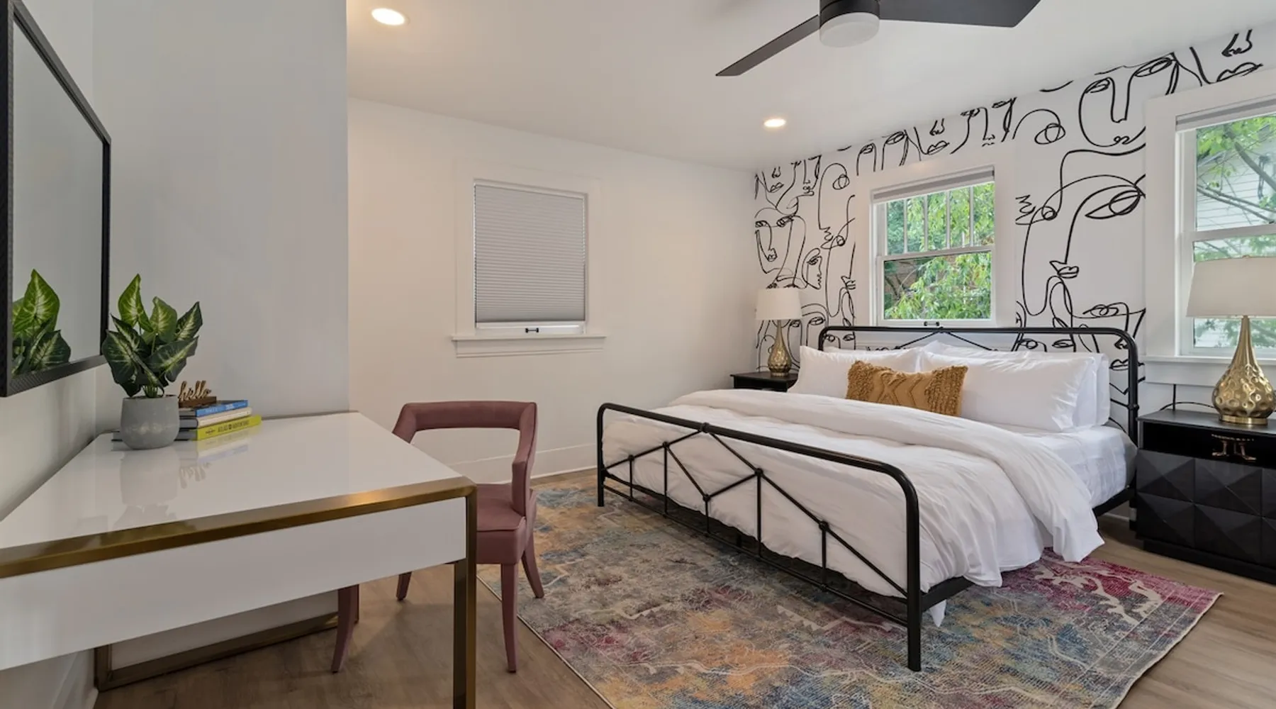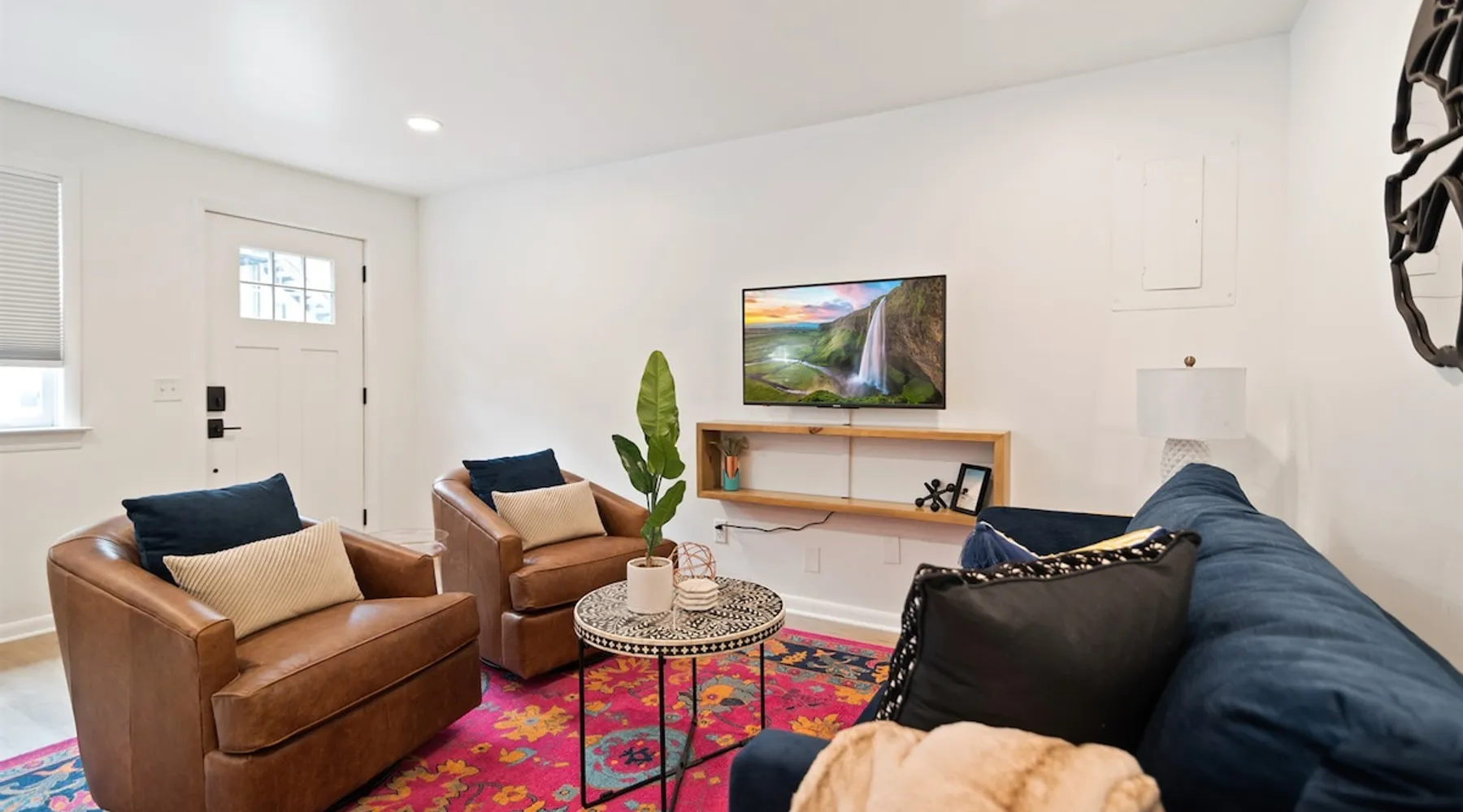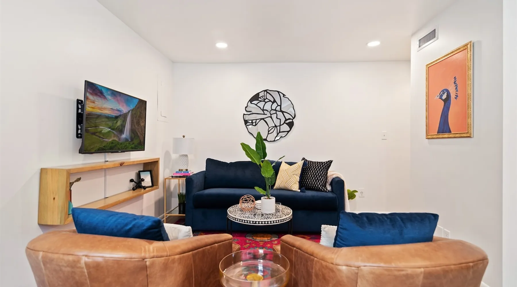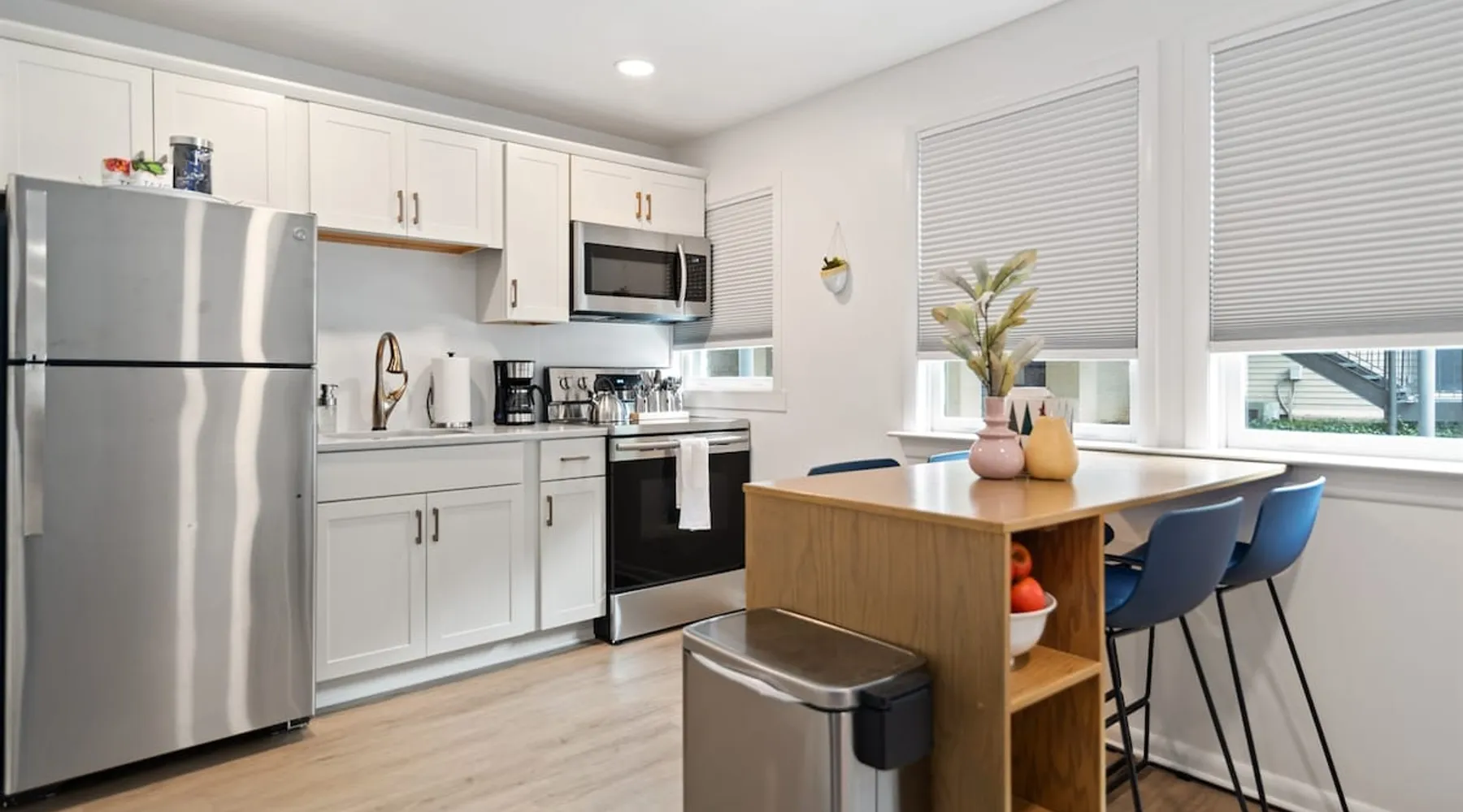 🛏️ Sleeps 5 w/ king bed, twin daybed & queen sleeper sofa 🛁 Full bath + blackout shades, ceiling fan & cozy comforts 🍳 Fully stocked kitchen + plush seating & Smart TV 🐾 Pet friendly! Up to 2 well-behaved pups welcome (fee applies) 🚗 Includes 1 dedicated off-street parking space 🎓 Walk to Belmont, Vanderbilt, shops & Music Row sights The space Welcome to Vanderbilt House—a beautifully restored two-story carriage home from the 1920s in the heart of Hillsboro Village. Part of the ComeVisitNashville collection, this flexible space offers comfort, style, and location for families, couples, and small groups. SLEEP & STAY 🛏️ Upstairs Bedroom: King memory-foam bed, twin daybed, blackout shades, ceiling fan, vanity, and storage. 🛋️ Queen Sofa Bed: Located in the first-floor living room—ideal for extra guests. 🚿 Full Bathroom: Combo tub/shower, plush towels, full-length mirror, and essentials. LOUNGE & CONNECT 🛋️ Living Room: Comfy seating, board games, Smart TV, and Bluetooth speaker. 📺 Entertainment: Bring your streaming logins and unwind with a movie night. COOK & DINE 🍳 Fully Stocked Kitchen: Includes microwave, toaster, coffee maker, full-size appliances, and all cookware. 🍷 Dining Bar: Perfect for shared meals and morning coffee. FAMILY & PET FRIENDLY 👨👩👧 Sleeps up to 5: Great for couples, families, or groups of friends. 🐾 Bring Your Dogs: Up to 2 well-behaved pups welcome (nightly fee; see House Rules). PARKING & LOCATION 🚗 Private Parking: 1 dedicated space in the lot with nearby street parking if needed. 🎓 Walkable to Belmont & Vanderbilt: Easy access to campus tours, events, and restaurants. 🎸 Downtown Access: Just 2.5 miles to Broadway, the Ryman, Bridgestone Arena, and more. Whether you’re in town for graduation, a weekend getaway, or just to explore Music City, Vanderbilt House offers the space, charm, and walkable location to make your stay truly unforgettable. Guest access Guests have complete and private access to the entire guest house, with one designated parking space. We provide starter supplies of toilet paper, paper towels, coffee/creamer/sugar, hand/dish soap, and toiletries. Other things to note Our nightly rate covers 1-3 guests. Additional guests (up to 5 total) are charged at $20 per person per night. Accurate headcount must be confirmed no later than 24 hours prior to arrival. Our max occupancy is firm and we cannot accommodate groups larger than 5. We welcome potty-trained, well-behaved dogs, up to 2 dogs per stay, for a fee of $25 per night per dog. Dogs must remain on-leash at all times outside the rental. Please let us know ahead of time if you plan to bring pets. (More details in House Rules.) Guests are required to sign a digital rental agreement within 48 hours (or ASAP if you’re arriving in the next 5 days). Failure to do so may lead to guest-initiated cancellation under the agreed policy. Standard check-in is 4 PM or later, with check-out at 11 AM. In some cases it may be possible to arrange for earlier check-in or later check-out for an additional fee. For added convenience to our guests, there is an Alexa-enabled bluetooth speaker in the living room. For your safety and ours, three cameras are actively recording on the rear of the office we share the parking lot with, that capture the parking and rental exterior only. We are fully permitted and abide by all local and state regulations governing short-term rentals. Registration Details 2022003463