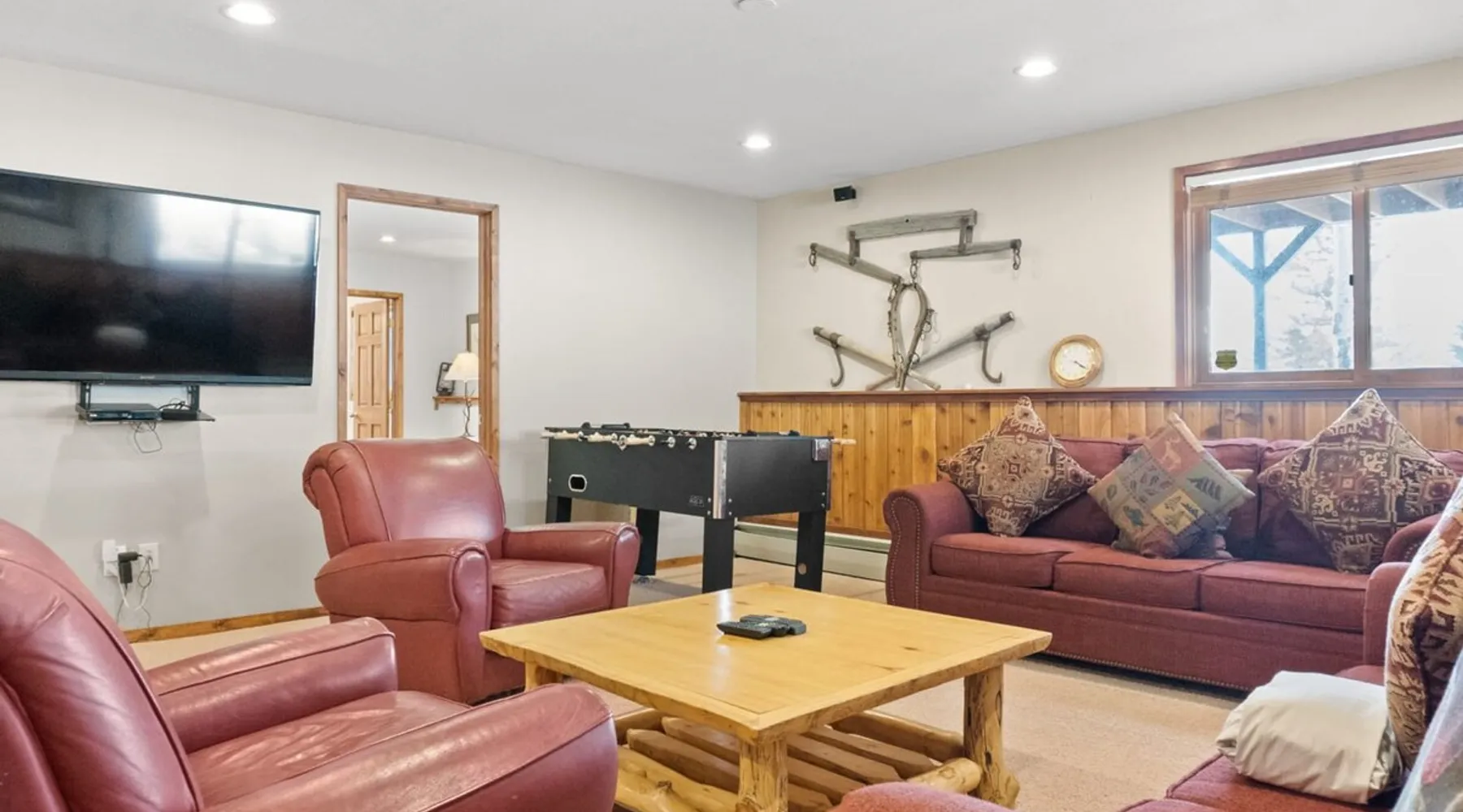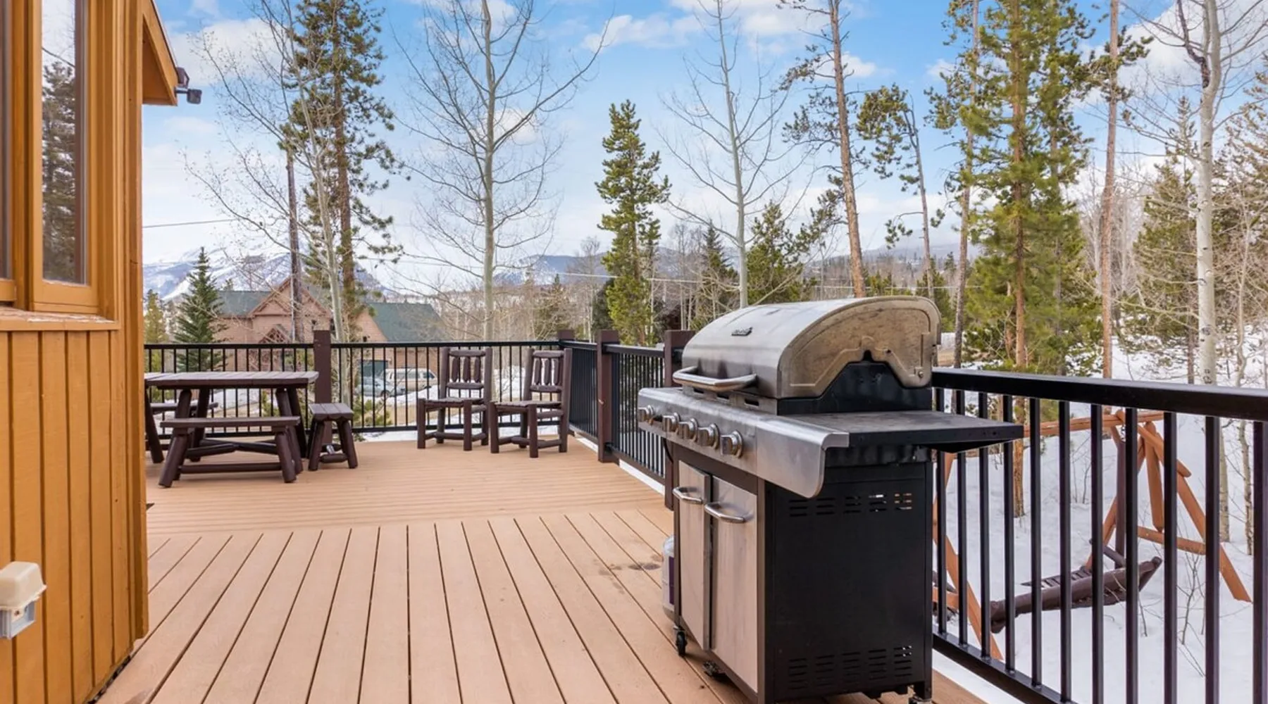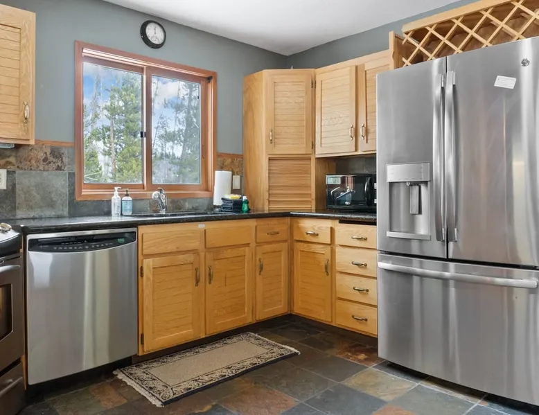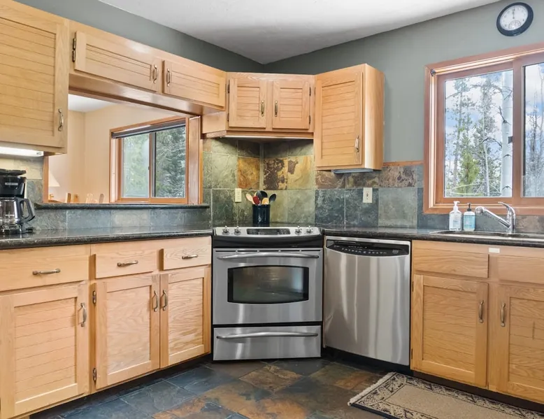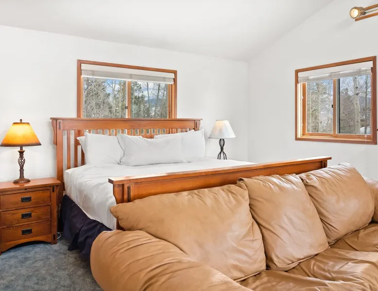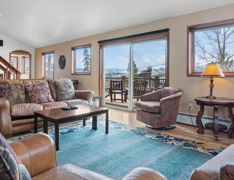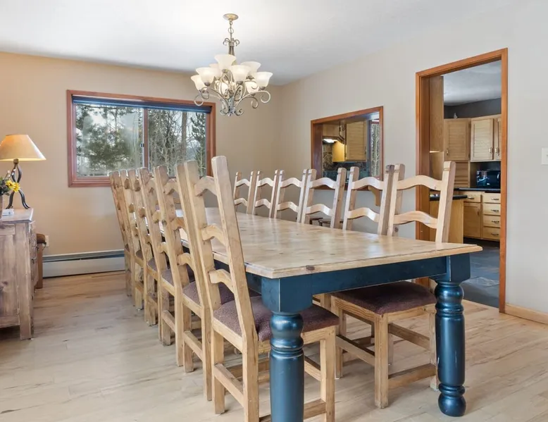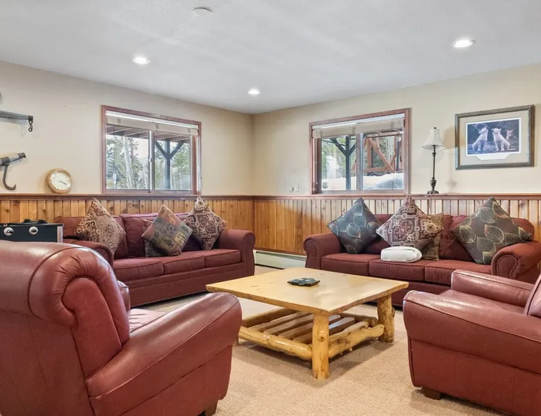 This charming 4-bedroom home will have everything you need for a mountain vacation with up to 10 of your loved ones. Surrounded by trees with a beautiful view of Buffalo Peak & within 40 minutes of 6 different ski areas, this home is perfect for those who want to experience the great outdoors of the Rocky Mountains. Inside the home you will find two living rooms, a hot tub & a sauna, and a spacious deck, providing plenty of space to keep everyone comfortable and entertained. The space This mountain home is designed for comfort and socializing with an open living area, a spacious deck, 4 cozy bedrooms, and 6 bathrooms, you will have ample room for large families or groups of friends to spread out. Guests will love the special features this house has from the magnificent views, private hot tub and sauna, the sunny deck, and two living rooms. As you walk in the front door of the home, you will find a tiled entryway with a closet and bench providing a comfortable place to unload your outdoor gear before settling in. Just off the entryway, you will first come to the main-level shared bathroom, which is connected to a sauna. For those looking to ease sore muscles after a busy day of outdoor adventures, you will love relaxing in the spacious sauna, which features 2 levels for extra room to spread out. Once you are done in the sauna, you can easily freshen up in the connected full bathroom, where you will find a shower/bathtub combo. The bathroom features a door separating the shower/bathtub from the bathroom sink, providing additional privacy and space. Further, into the main level of the home, you will find the cozy living room with high ceilings and windows from all around providing views over the surrounding trees and mountains. Relax in the inviting living room, where you can enjoy a movie night on the TV or take in the views from out the large windows. From the living room, you can step out the sliding glass doors to the spacious deck and take in the fresh mountain air and beautiful views. During the summer months, the deck provides a great outdoor living space with a BBQ, a picnic table, and patio furniture with seating for up to 15. In the wintertime enjoy snowy nights out in the hot tub, and in the summer time bring the fun outside and take in the sunshine while you enjoy a BBQ with your group. Back inside you will find the dining area located just off the living room and next to the kitchen with a pass-thru window connecting the two areas making it easy to bring meals straight to the table for a family-style dinner. The dining room features a large table with seating for 13, so your entire group can enjoy a meal together. In the fully equipped kitchen, you will find stainless steel appliances, spacious countertops perfect for meal prep, and all the cookware needed to whip up a delicious meal. The kitchen also features a built-in sitting area with space for two, making it a cozy spot to grab a snack or get in some remote work. When you are ready to settle in for the night, you will find the master bedroom on the main level. This spacious bedroom is full of natural light and charm! The room has windows all around, providing great views right from the king-size bed. The dynamic room includes a comfortable couch, desk, and chair great for any remote work needs, as well as a dresser, an armoire, a large closet, and an attached bathroom. Freshen up before bed in the master bathroom, where you will find a large double-sink vanity and a door that separates the bathtub/shower area for additional privacy. Head upstairs where you will find an additional two bedrooms. Each of these bedrooms features queen-size beds, a TV, and an attached full bathroom with showers. One of the bedrooms also features access to a balcony. On the basement level of the home, you will find the remaining 1 bedroom, as well as a second living room. The second living room is a dynamic space perfect for entertaining with its large TV and foosball table and ample seating accommodations. At night, turn this space into a sleeping area and pull out the queen bed in one of the couches. The basement-level bedroom provides ample sleeping space with 3 sets of bunk beds! This room is great for families traveling with small children, or for all the cousins in the family to share a room! In addition, the basement includes a full shared bathroom with a large tiled shower, as well as a laundry room. STR License Number: STR21-01485 Guest access Guests will have access to the entire home and outdoor spaces, which include a spacious deck and 7-person hot tub. Guests will also have access to parking for up to 5 vehicles, with 2 parking spots inside the garage and 3 parking spots in the driveway. Other things to note Please note that, like most homes in the area, this home does not have A/C. Please keep in mind that if you plan to ski, you are responsible for verifying the ski resorts' opening and closing dates. 4-wheel drive or 2-wheel drive tires with snow chains may be necessary for safe travel to this property, even if it hasn’t snowed in a few days. Registration details STR21-01485