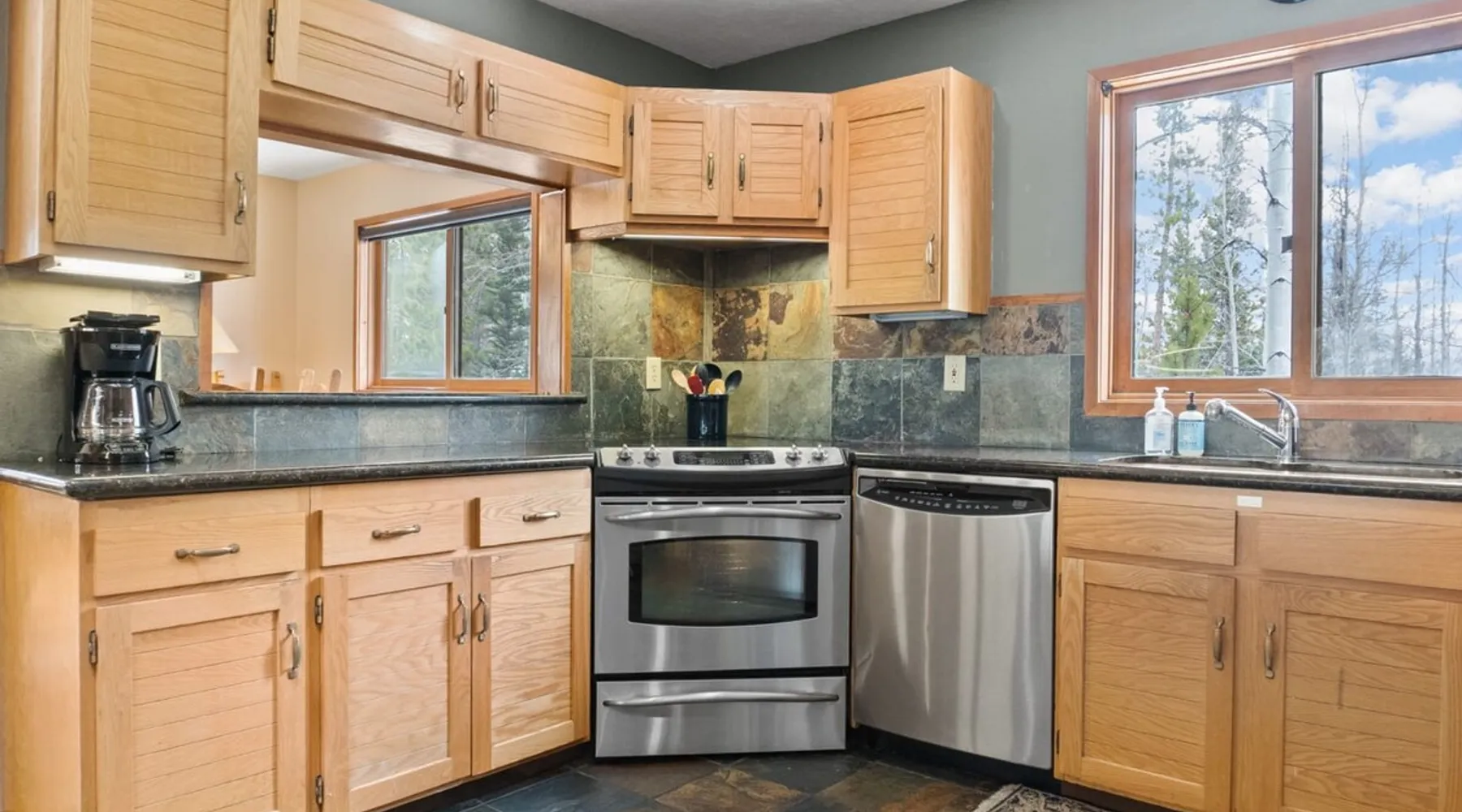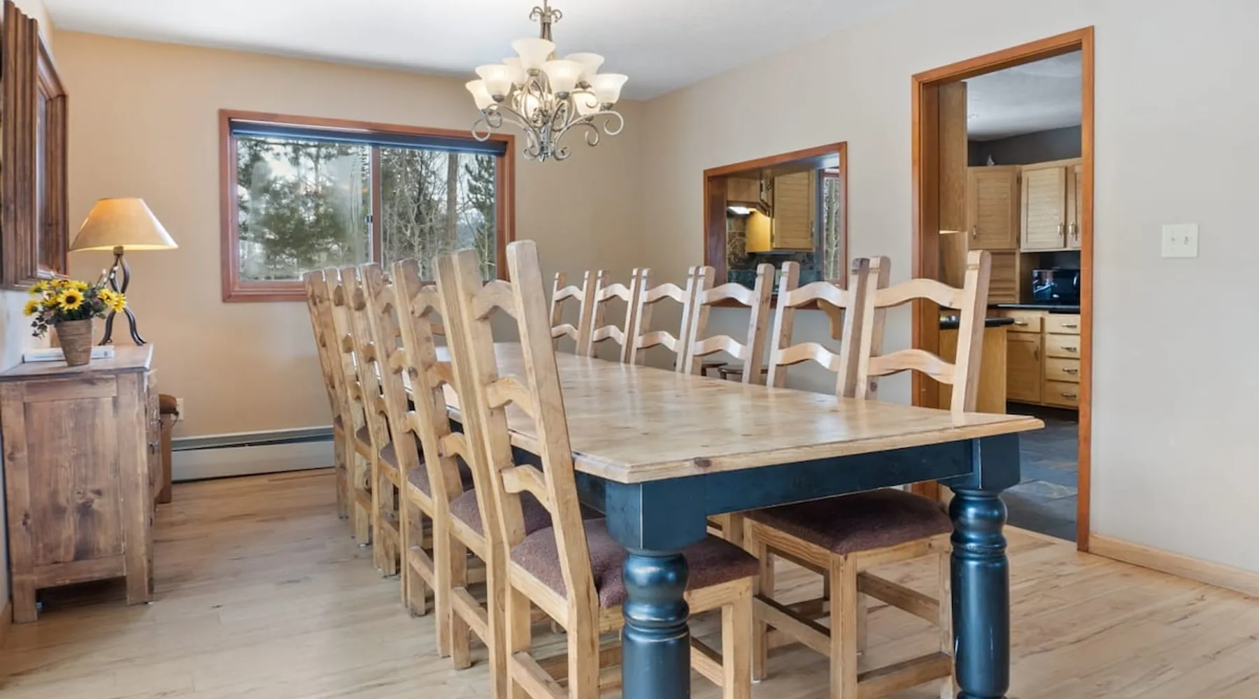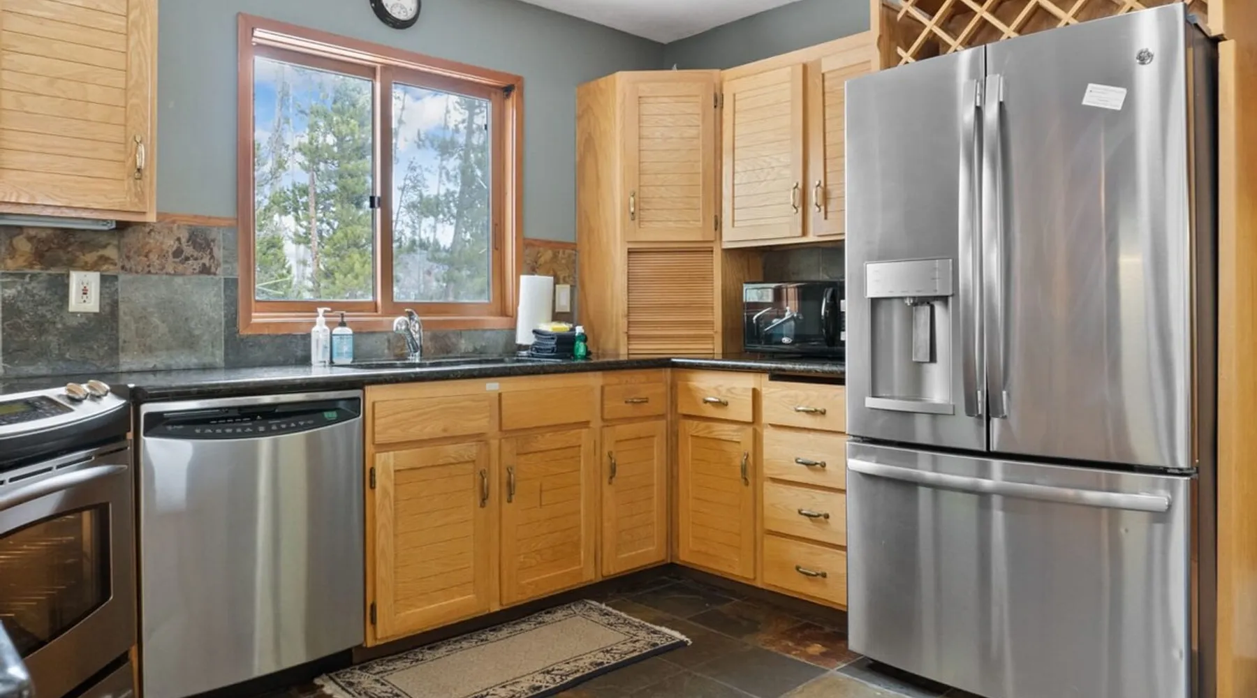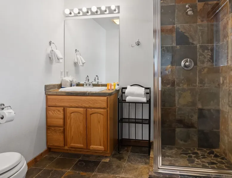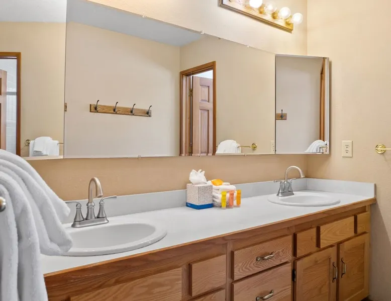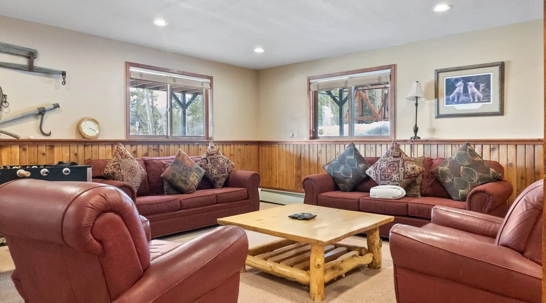 This charming 4-bedroom home will have everything you need for a mountain vacation with up to 10 of your loved ones. Surrounded by trees with a beautiful view of Buffalo Peak & within 40 minutes of 6 different ski areas, this home is perfect for those who want to experience the great outdoors of the Rocky Mountains. Inside the home you will find two living rooms, a hot tub & a sauna, and a spacious deck, providing plenty of space to keep everyone comfortable and entertained. The space This mountain home is designed for comfort and socializing with an open living area, a spacious deck, 4 cozy bedrooms, and 6 bathrooms, you will have ample room for large families or groups of friends to spread out. Guests will love the special features this house has from the magnificent views, private hot tub and sauna, the sunny deck, and two living rooms. As you walk in the front door of the home, you will find a tiled entryway with a closet and bench providing a comfortable place to unload your outdoor gear before settling in. Just off the entryway, you will first come to the main-level shared bathroom, which is connected to a sauna. For those looking to ease sore muscles after a busy day of outdoor adventures, you will love relaxing in the spacious sauna, which features 2 levels for extra room to spread out. Once you are done in the sauna, you can easily freshen up in the connected full bathroom, where you will find a shower/bathtub combo. The bathroom features a door separating the shower/bathtub from the bathroom sink, providing additional privacy and space. Further, into the main level of the home, you will find the cozy living room with high ceilings and windows from all around providing views over the surrounding trees and mountains. Relax in the inviting living room, where you can enjoy a movie night on the TV or take in the views from out the large windows. From the living room, you can step out the sliding glass doors to the spacious deck and take in the fresh mountain air and beautiful views. During the summer months, the deck provides a great outdoor living space with a BBQ, a picnic table, and patio furniture with seating for up to 15. In the wintertime enjoy snowy nights out in the hot tub, and in the summer time bring the fun outside and take in the sunshine while you enjoy a BBQ with your group. Back inside you will find the dining area located just off the living room and next to the kitchen with a pass-thru window connecting the two areas making it easy to bring meals straight to the table for a family-style dinner. The dining room features a large table with seating for 13, so your entire group can enjoy a meal together. In the fully equipped kitchen, you will find stainless steel appliances, spacious countertops perfect for meal prep, and all the cookware needed to whip up a delicious meal. The kitchen also features a built-in sitting area with space for two, making it a cozy spot to grab a snack or get in some remote work. When you are ready to settle in for the night, you will find the master bedroom on the main level. This spacious bedroom is full of natural light and charm! The room has windows all around, providing great views right from the king-size bed. The dynamic room includes a comfortable couch, desk, and chair great for any remote work needs, as well as a dresser, an armoire, a large closet, and an attached bathroom. Freshen up before bed in the master bathroom, where you will find a large double-sink vanity and a door that separates the bathtub/shower area for additional privacy. Head upstairs where you will find an additional two bedrooms. Each of these bedrooms features queen-size beds, a TV, and an attached full bathroom with showers. One of the bedrooms also features access to a balcony. On the basement level of the home, you will find the remaining 1 bedroom, as well as a second living room. The second living room is a dynamic space perfect for entertaining with its large TV and foosball table and ample seating accommodations. At night, turn this space into a sleeping area and pull out the queen bed in one of the couches. The basement-level bedroom provides ample sleeping space with 3 sets of bunk beds! This room is great for families traveling with small children, or for all the cousins in the family to share a room! In addition, the basement includes a full shared bathroom with a large tiled shower, as well as a laundry room. STR License Number: STR21-01485 Guest access Guests will have access to the entire home and outdoor spaces, which include a spacious deck and 7-person hot tub. Guests will also have access to parking for up to 5 vehicles, with 2 parking spots inside the garage and 3 parking spots in the driveway. Other things to note Please note that, like most homes in the area, this home does not have A/C. Please keep in mind that if you plan to ski, you are responsible for verifying the ski resorts' opening and closing dates. 4-wheel drive or 2-wheel drive tires with snow chains may be necessary for safe travel to this property, even if it hasn’t snowed in a few days. Registration details STR21-01485