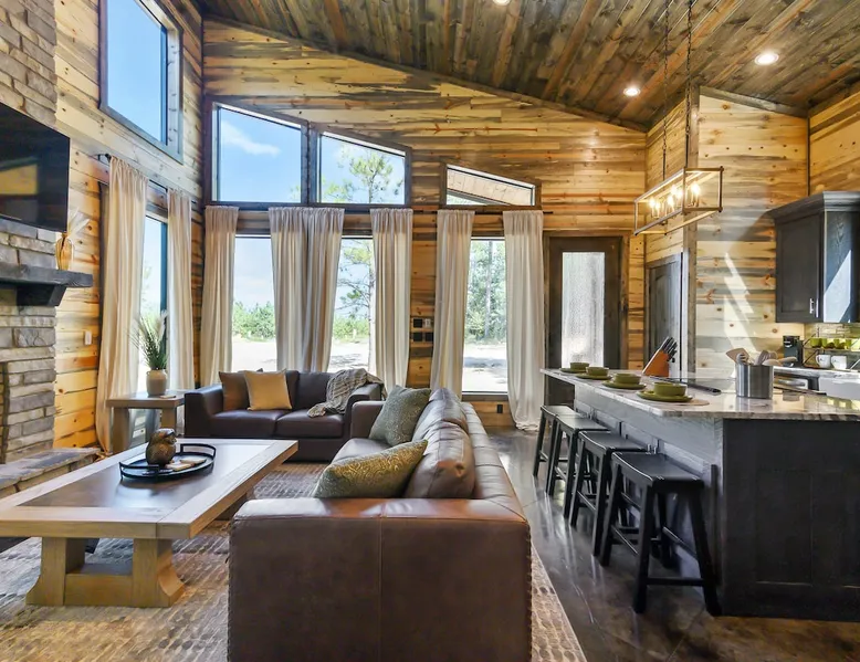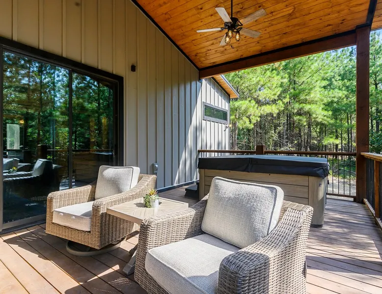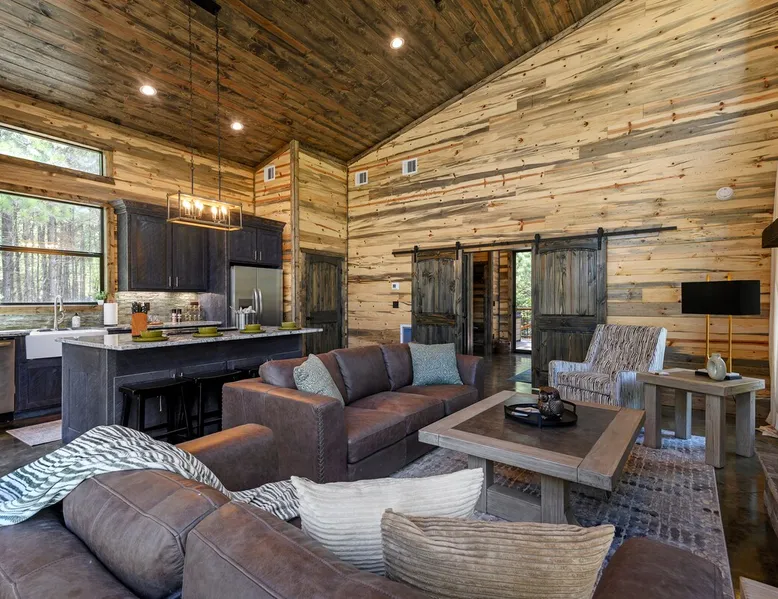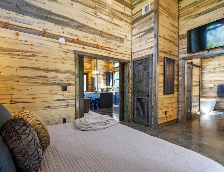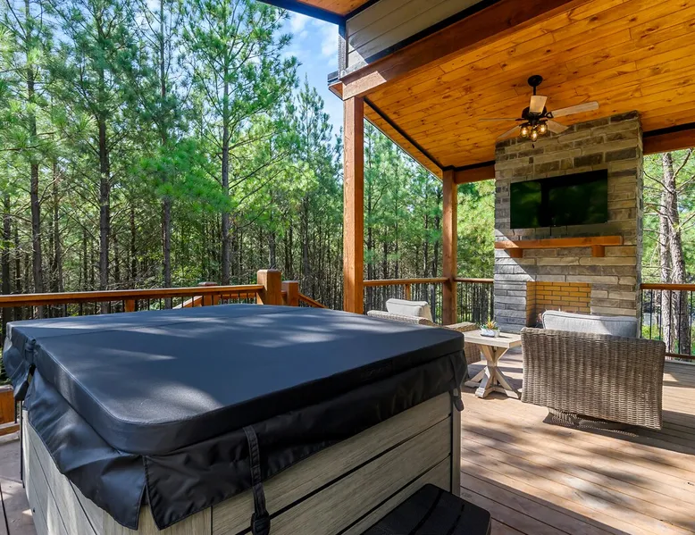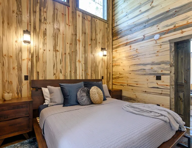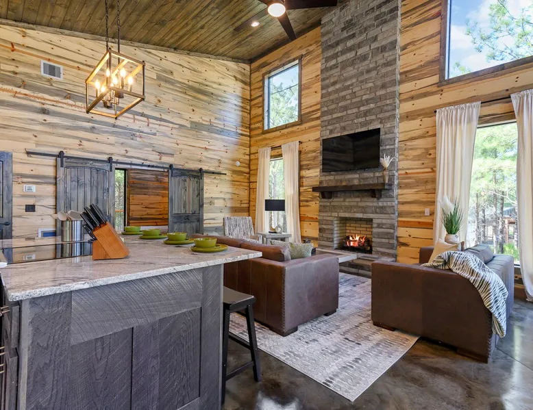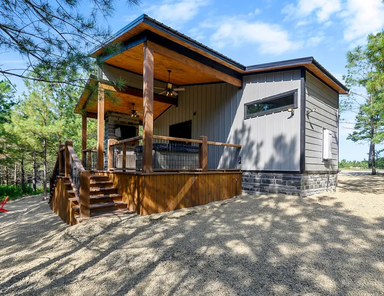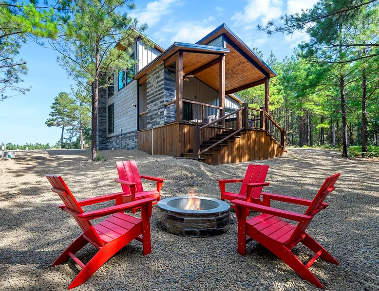 Sweet Seclusion - Hosted by Bravo Cabin Rentals, LLC Welcome to the New Luxury Romantic Cabin in Broken Bow! This stunning one-bedroom cabin is the ultimate destination for couples seeking a relaxing getaway in the mountains. With its direct patio access, you can step outside and immerse yourself in the beauty of nature. Whether you're looking for a romantic escape or a peaceful retreat, the New Luxury Romantic Cabin in Broken Bow offers the perfect setting for a memorable stay. The space The living room is tastefully furnished with two leather sofas, an additional lounge chair, and a cozy gas fireplace, creating the perfect ambiance for relaxation. Enjoy your favorite shows and movies on the big screen HDTV, providing entertainment during your stay. The kitchen and dining area are equipped with everything you need for a comfortable stay. The island seating for four allows you to enjoy meals together, while the fully equipped kitchen includes a Keurig coffee maker, toaster, blender, waffle maker, and basic seasonings. You'll find all the essentials to make your stay convenient and enjoyable. The master bedroom is a haven of luxury, featuring a comfortable king-size bed, nightstands on both sides and, a spacious closet with hangers. Unwind and watch your favorite shows on the big screen HDTV or pamper yourself in the ensuite bathroom. The bathroom boasts a large walk-in shower, a luxurious soaker tub, and double vanity sinks for added convenience. Step outside to the outdoor living area and be greeted by two patio chairs, a big screen HDTV, and a gas fireplace. Relax and soak in the private hot tub, or savor a delicious meal prepared on the gas grill. In the evenings, gather around the fire pit with seats for up to four and enjoy the warmth and ambiance it provides. General– A full-size washer and dryer are on site. An EV outlet is available, but guests will need to provide their own charger. Gas Fireplaces are seasonal (October 1st – May 15th). Any cancellations processed in which a refund is due to the guest will incur a $50 processing fee. Maximum occupancy is 2, NO EXCEPTIONS. Guest access Entire cabin Other things to note It is located near all the best restaurants, activities, and park amenities. It is just a short drive to Broken Bow Lake, Beavers Bend State Park, popular hiking trails, restaurants, breweries, wineries, and downtown Hochatown, and access to all the outdoors activities you want – boating, hiking, fly-fishing, kayaking, zip-lining, ATV trails, horseback riding, Cedar Creek Golf Course, Choctaw Landing Casino, mini-golf, helicopter rides, mining for gold, train rides, go-carts, and a great petting zoo. Don’t forget these items when you come to visit: • Rain gear and light jackets (Our average rainfall is 55″-60″ each year). • We have beautiful scenic trails; good hiking boots are a must. • Water shoes for our vast shorelines and streams. • Insect repellent, sunblock, and other first-aid supplies. • Coffee and filters – enjoy this while sitting on the deck in the early morning. • Condiments --A starter supply of coffee/filters, salt/pepper, paper towels, toilet paper, bath soap, dish soap, dishwasher tablets, trash bags, and laundry soap is provided. Still, guests may need to bring additional supplies. If we are missing something or you have a question we haven't answered, please feel free to reach out to us directly at Bravo Cabin Rentals and we will personally respond as soon as possible. We look forward to making your next vacation in Broken Bow/Hochatown one you won’t forget!