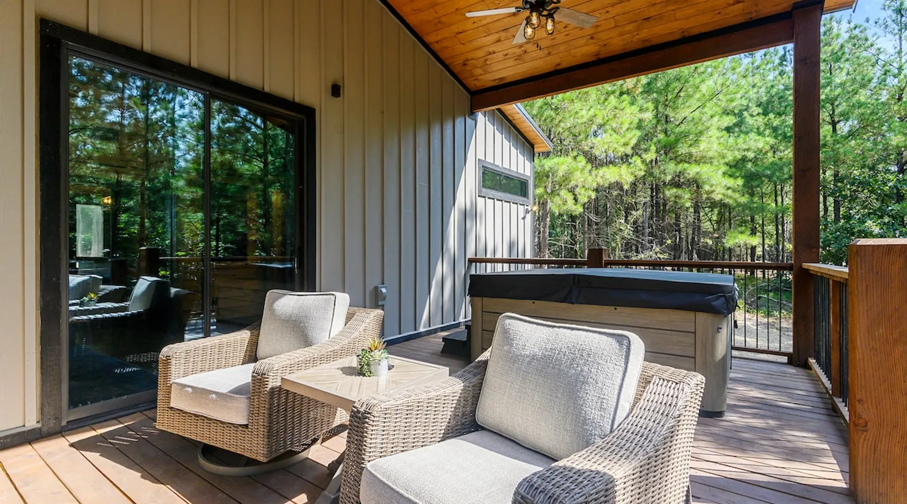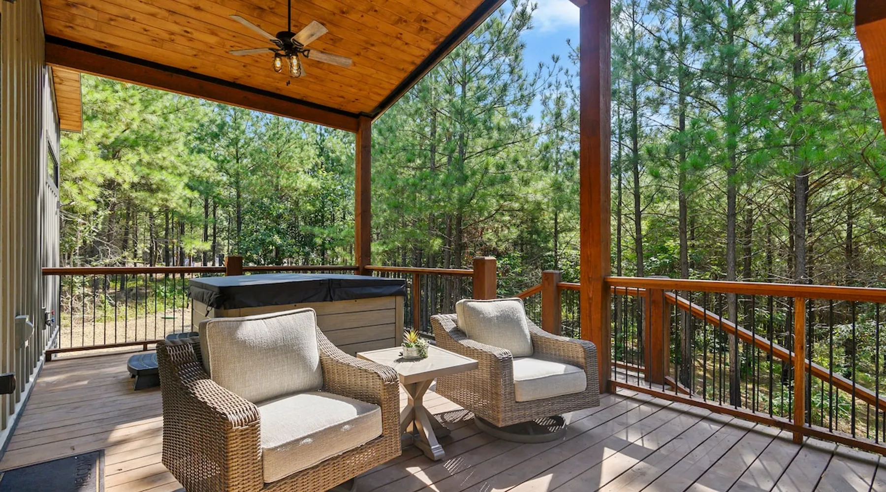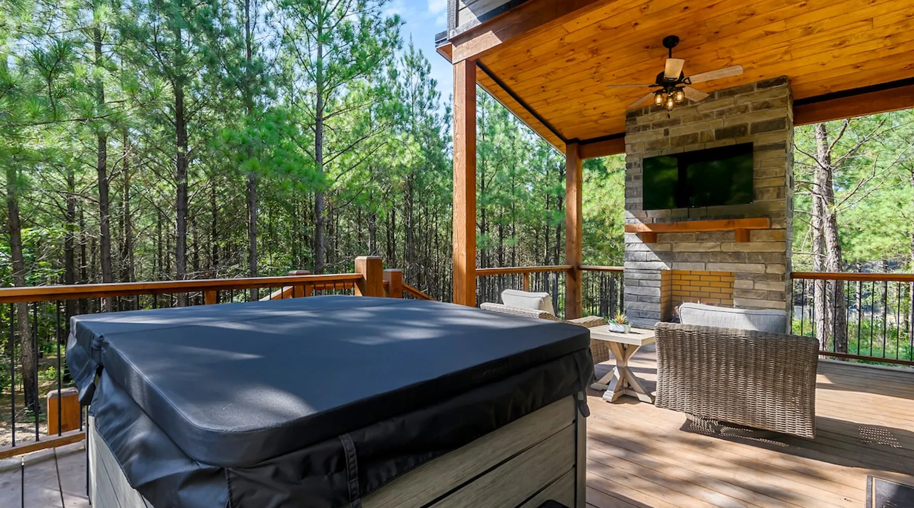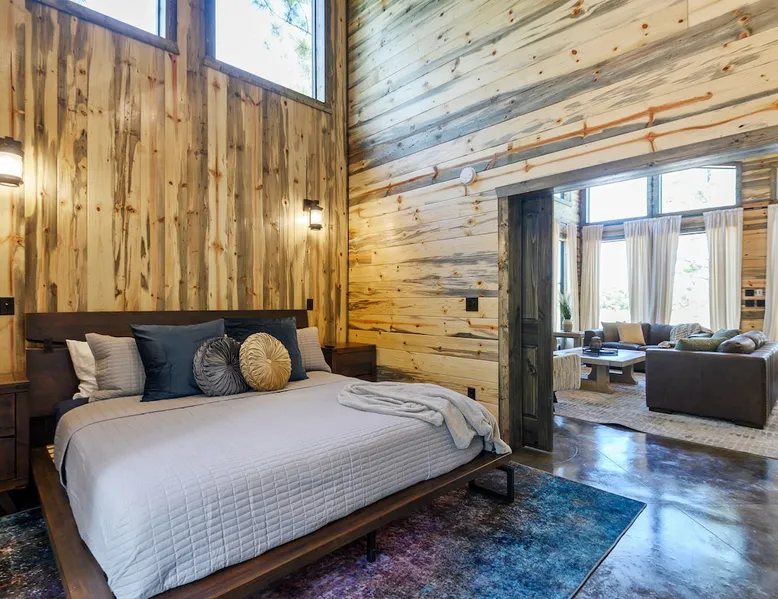 Sweet Seclusion - Hosted by Bravo Cabin Rentals, LLC Welcome to the New Luxury Romantic Cabin in Broken Bow! This stunning one-bedroom cabin is the ultimate destination for couples seeking a relaxing getaway in the mountains. With its direct patio access, you can step outside and immerse yourself in the beauty of nature. Whether you're looking for a romantic escape or a peaceful retreat, the New Luxury Romantic Cabin in Broken Bow offers the perfect setting for a memorable stay. The space The living room is tastefully furnished with two leather sofas, an additional lounge chair, and a cozy gas fireplace, creating the perfect ambiance for relaxation. Enjoy your favorite shows and movies on the big screen HDTV, providing entertainment during your stay. The kitchen and dining area are equipped with everything you need for a comfortable stay. The island seating for four allows you to enjoy meals together, while the fully equipped kitchen includes a Keurig coffee maker, toaster, blender, waffle maker, and basic seasonings. You'll find all the essentials to make your stay convenient and enjoyable. The master bedroom is a haven of luxury, featuring a comfortable king-size bed, nightstands on both sides and, a spacious closet with hangers. Unwind and watch your favorite shows on the big screen HDTV or pamper yourself in the ensuite bathroom. The bathroom boasts a large walk-in shower, a luxurious soaker tub, and double vanity sinks for added convenience. Step outside to the outdoor living area and be greeted by two patio chairs, a big screen HDTV, and a gas fireplace. Relax and soak in the private hot tub, or savor a delicious meal prepared on the gas grill. In the evenings, gather around the fire pit with seats for up to four and enjoy the warmth and ambiance it provides. General– A full-size washer and dryer are on site. An EV outlet is available, but guests will need to provide their own charger. Gas Fireplaces are seasonal (October 1st – May 15th). Any cancellations processed in which a refund is due to the guest will incur a $50 processing fee. Maximum occupancy is 2, NO EXCEPTIONS. Guest access Entire cabin Other things to note It is located near all the best restaurants, activities, and park amenities. It is just a short drive to Broken Bow Lake, Beavers Bend State Park, popular hiking trails, restaurants, breweries, wineries, and downtown Hochatown, and access to all the outdoors activities you want – boating, hiking, fly-fishing, kayaking, zip-lining, ATV trails, horseback riding, Cedar Creek Golf Course, Choctaw Landing Casino, mini-golf, helicopter rides, mining for gold, train rides, go-carts, and a great petting zoo. Don’t forget these items when you come to visit: • Rain gear and light jackets (Our average rainfall is 55″-60″ each year). • We have beautiful scenic trails; good hiking boots are a must. • Water shoes for our vast shorelines and streams. • Insect repellent, sunblock, and other first-aid supplies. • Coffee and filters – enjoy this while sitting on the deck in the early morning. • Condiments --A starter supply of coffee/filters, salt/pepper, paper towels, toilet paper, bath soap, dish soap, dishwasher tablets, trash bags, and laundry soap is provided. Still, guests may need to bring additional supplies. If we are missing something or you have a question we haven't answered, please feel free to reach out to us directly at Bravo Cabin Rentals and we will personally respond as soon as possible. We look forward to making your next vacation in Broken Bow/Hochatown one you won’t forget!