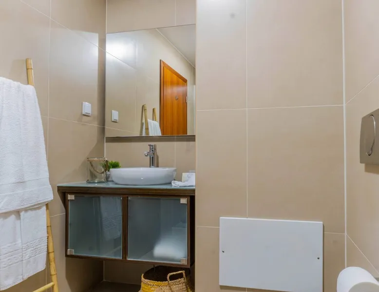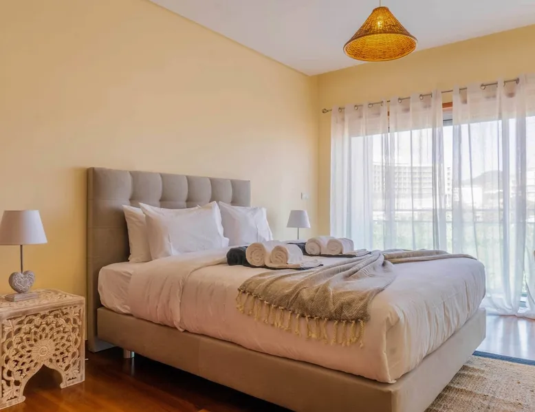 The apartment in São Pedro has 2 bedrooms and capacity for 4 people. Accommodation of 100 m² tastefully-furnished and is modern, It has views of the mountain. The space Important: In response to Covid-19, this property has extended cleaning & disinfection measures & protocols to guarantee the safety of our guests The apartment in São Pedro has 2 bedrooms and capacity for 4 people. Accommodation of 100 m² tastefully-furnished and is modern, It has views of the mountain. The property is located 200 m supermarket "Solmar São Gonçalo", 500 m nature reserve "Parque Urbano PDL", 1 km lake "Lado da UAÇ", 2 km bus station "Estação de autocarros Alfandega PDL", 2 km from the restaurant "Cantinho da Mãe", 4 km sand beach "Praia das Milícias", 5 km rock beach "Praia do Pópulo", 7 km airport "Aeroporto João Paulo II", 10 km golf course "Campo de Golge da Batalha", 30 km water park "Aqua Parque", 30 km thermal springs "Caldeira Velha" and it is located in a a quiet zone and in a residential complex. The accommodation is equipped with the following items: lift, 13 m² terrace, washing machine, iron, internet (Wi-Fi), hair dryer, balcony, electric heating, air-conditioned, open-air parking in near the building, 1 fan, 1 Tv, satellite tv (Languages: English, German, French). The independent kitchen, of gas, is equipped with refrigerator, microwave, oven, freezer, dishwasher, dishes/cutlery, kitchen utensils, coffee machine, toaster and kettle. Other things to note Included services - Final Cleaning - Disinfection - Towels - Heating - Air conditioning - Internet Access - Bed linen Optional services - Parking: Price: Included in the booking. - Cot/Crib: Price: Included in the booking. - Baby high chair: Price: EUR 20.00 per booking. - Arrival out of schedule: Price: EUR 20.00 per booking. Registration Details 3725/AL