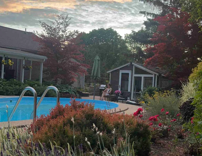 Cozy private garden-level apartment within our home. Queen bed, futon, and full bath with amenities. Your kitchen has everything you need to make a nice meal. 2 miles to MSU, 20 min to Sparrow/Capitol, 10 min to Lake Lansing. The backyard is absolutely breathtaking with a swimming pool and outdoor seating for you to enjoy. Dining options, the best groceries, and public transportation are all walking distance! We live upstairs with our 2 cairn terriers and will be sharing the yard with you. The space This is a lower-level private entrance, full apartment with an open concept kitchen/living room with a futon. A private bedroom offers a plush queen size bed and plenty of storage for clothing and a desk for working. The full bath has a tiled tub/shower, towels, shampoo and body wash. Also included is a first aid kit and a hair dryer. Your full kitchen is stocked well with pots, pans, accessories, and some basic food items such as salt/pepper/olive oil. In lieu of an oven, there is a large confection/microwave oven above the glass top stove. TVs in the living room and bedroom are complete with a streaming device. The space is also decorated with unique original art, that with the canned lighting makes this space bright and cheerful. Will consider dogs under 25 pound. The backyard is fully fenced and the neighborhood is great to walk dogs along with great trails a mile away. ALL PETS MUST BE PRE-APPROVED. No smoking please. Guests will pay a $100 fee for smoking in the apartment. Note: we live upstairs so you may hear foot traffic and dogs. The downstairs apartment has soundproofing drywall and insulation, so it is pretty quiet. The large 1/2 acre yard is shared with our family (me/hubby and dogs mostly- and visiting adult children)-- no other Airbnb guests. Since my dogs will be sharing the fenced in backyard with you, we will introduce you to them. They are small and friendly. Mack (the black dog) is afraid of children as well as some adults resulting in some unfriendly behavior. He is also prey driven, so if someone runs, he likes to chase. :) Guest access Full lower-level apartment, parking spot in the driveway decks, grill, patio furniture. You will have access to the inground pool, front and fenced in back yards; please note that you will be sharing the outdoor space with our family and dogs. There are several areas poolside for sun bathing, tables in sun and shade, and fun little reading nooks under trees. The yard is absolutely beautiful and is meant to be enjoyed by many! The laundry room is available to you with advanced notice. Other things to note We may be available for Michigan Flyer pick ups and drop offs; just let us know in advanced. We may also be available to do football game transportation. :)