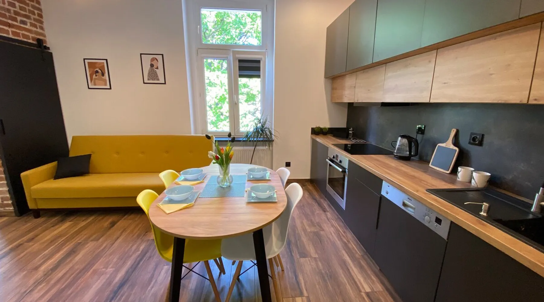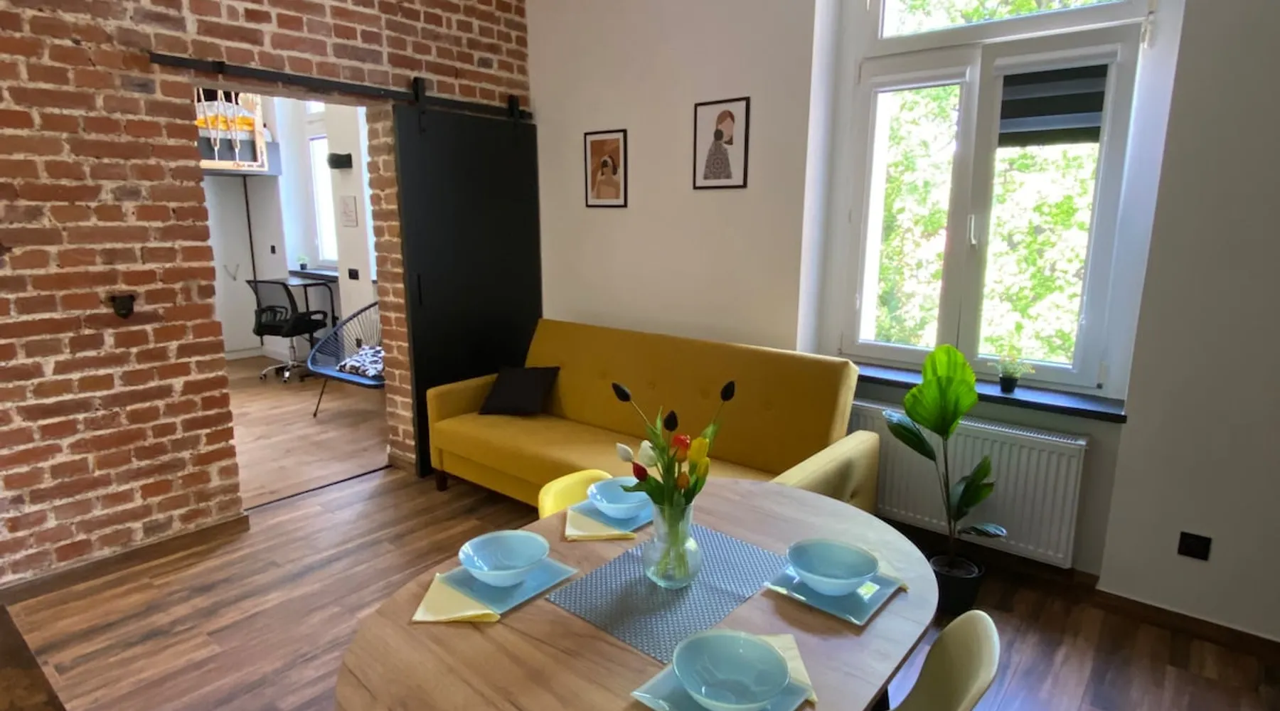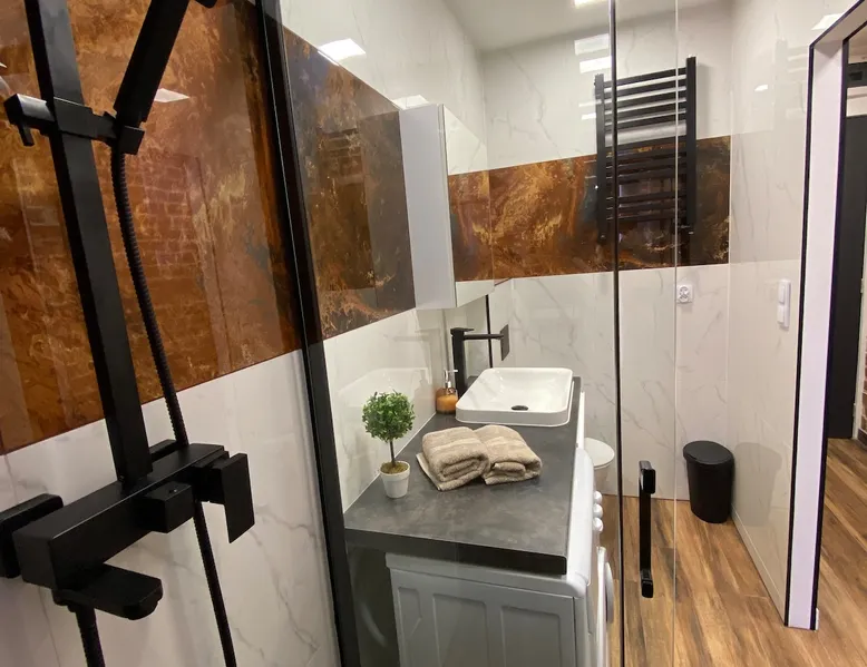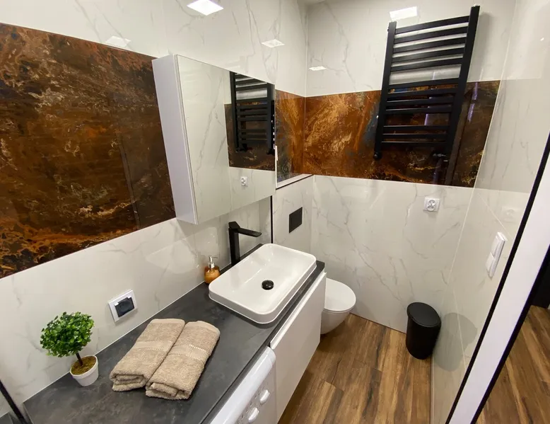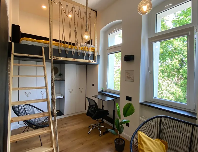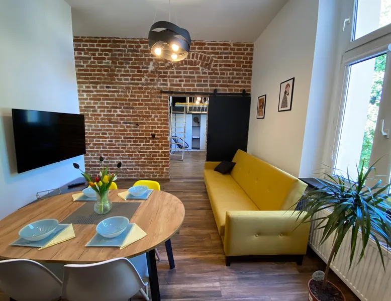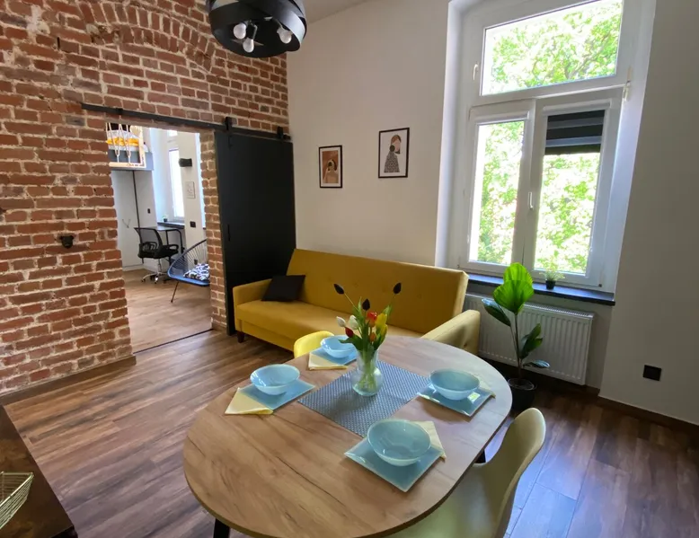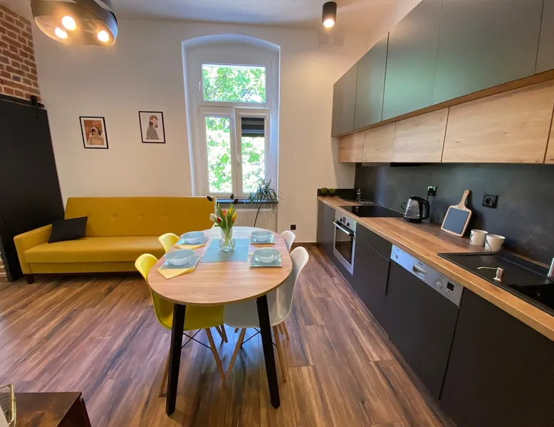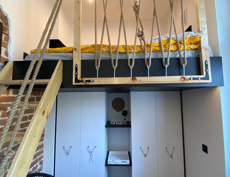 A perfect place for families with children for a short getaway in the Karkonosze Mountains. A small cozy apartment in an old restored tenement house in the center of Jelenia Góra - only 5 minutes walk to the Market Square. In the neighborhood there are, among othersC.K. Norwid Theater, the Karkonosze Museum, Time Gates, KCM, JCK, BWA, and the Town Hall Square. It is a perfect place to explore the beautiful surroundings of Jelenia Góra. Next to the bus stop (city and PKS), from where we will get to another corner of the city or Karpacz or Szklarska Poręba. The space For your disposal, a beautiful cozy, fully equipped apartment in the "sailor" style :). In the bedroom, there is a mezzanine with a mattress (140x200), and in the living room, a fold-out 3-person sofa with a sleeping function. The kitchenette is fully equipped with almost all the necessary things for everyday cooking. You will find a full service set for 4 people, as well as a set of pots and cooking utensils. The excellent location will allow you to visit both nearby attractions in the city center, as well as those a little further away.