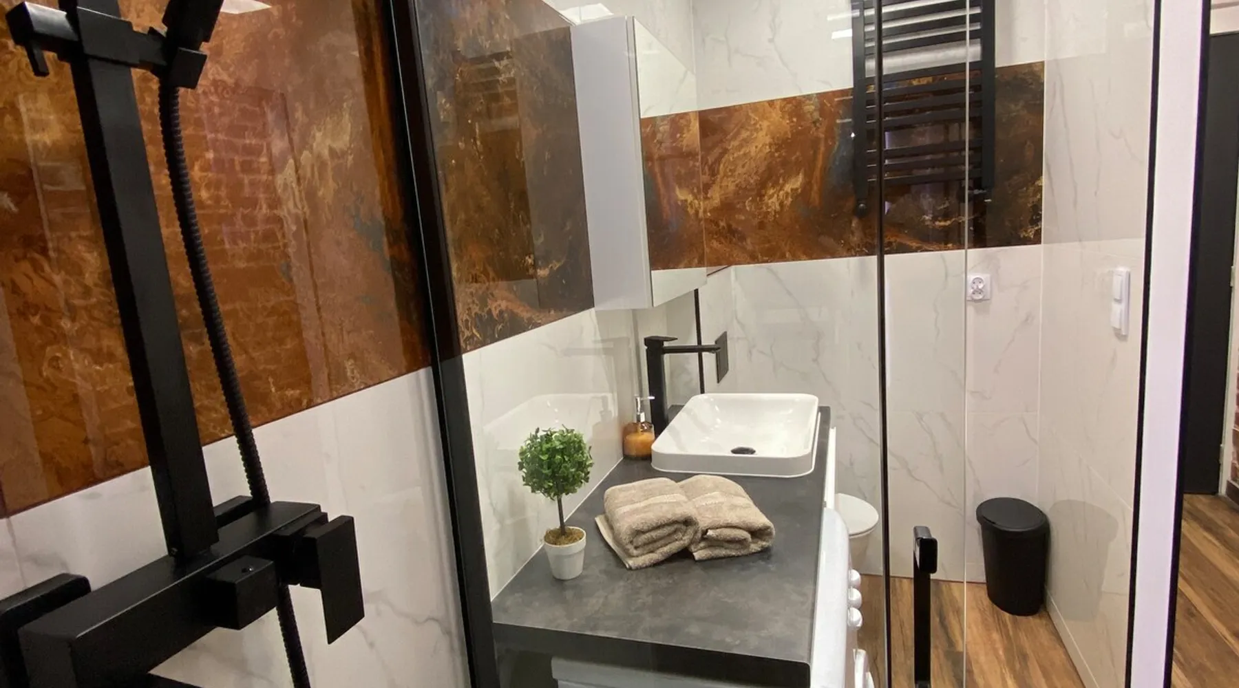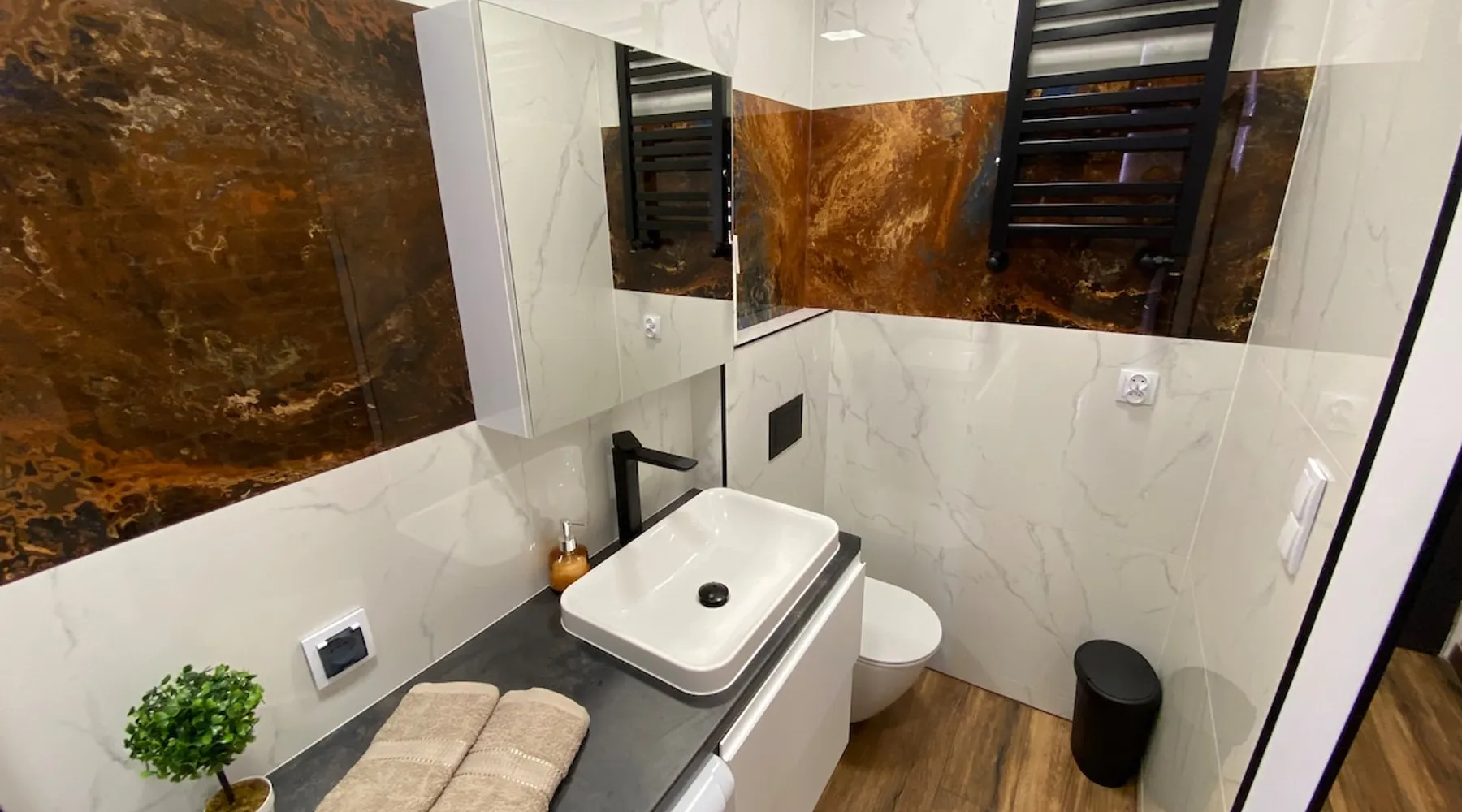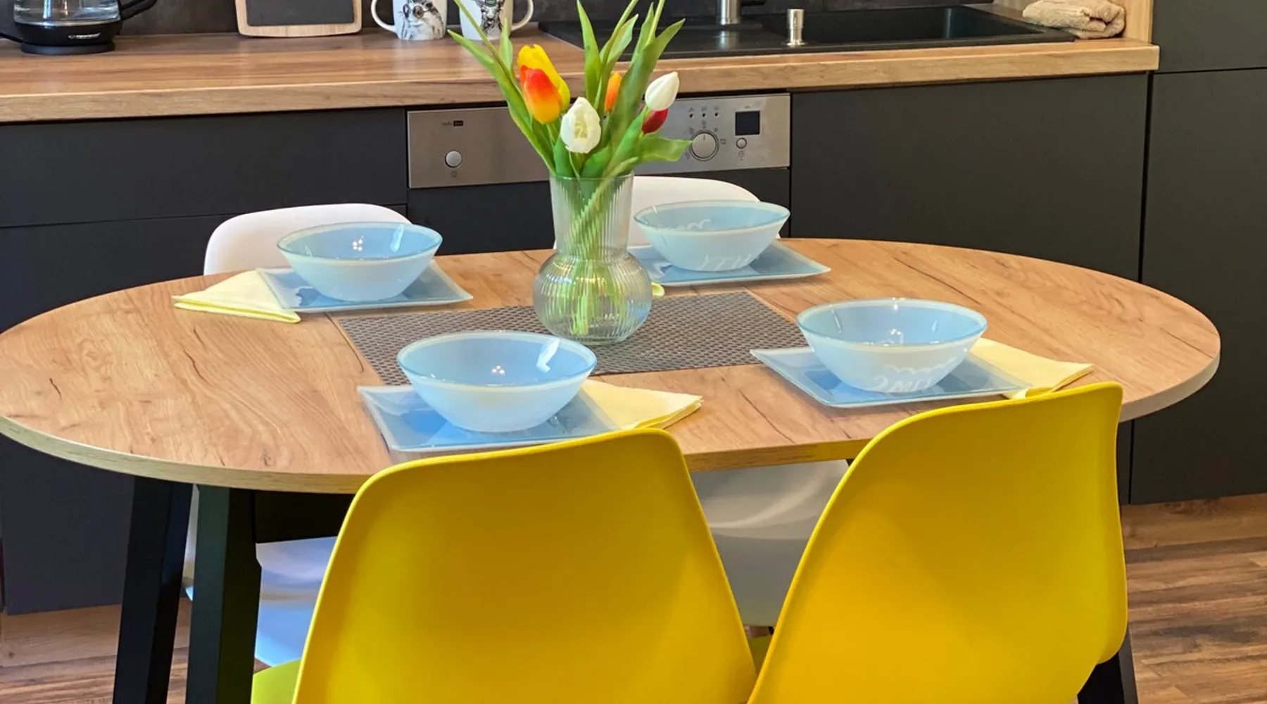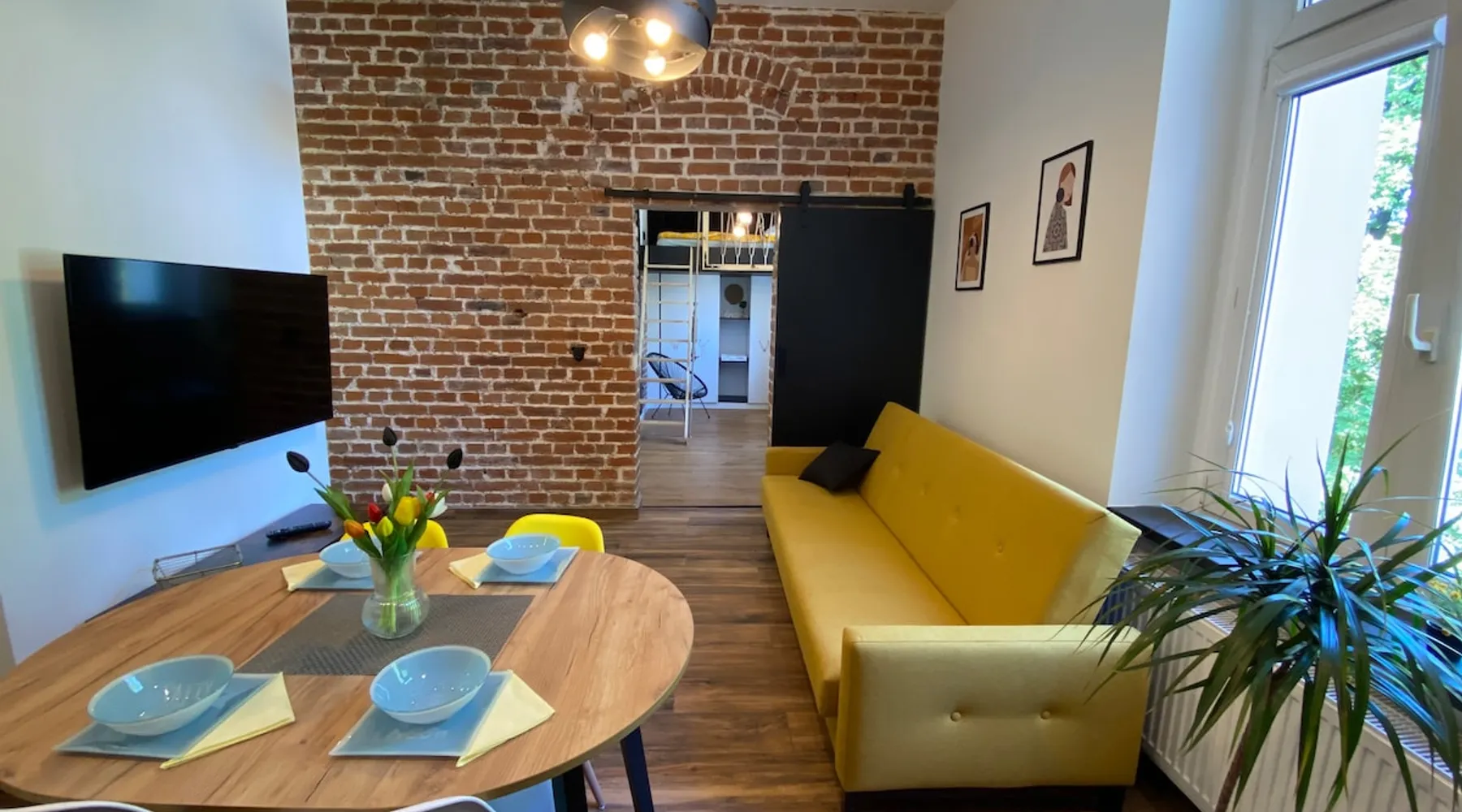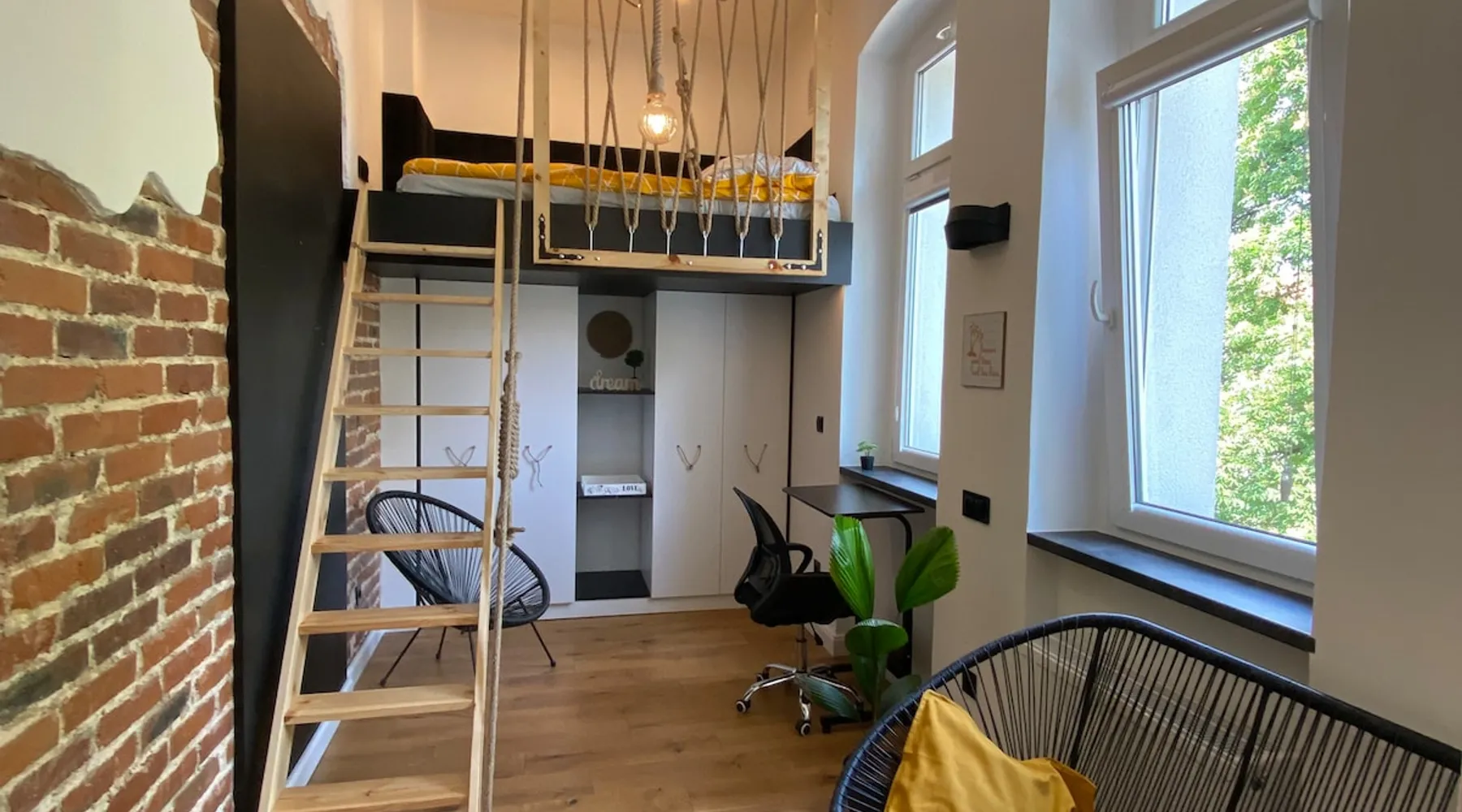 A perfect place for families with children for a short getaway in the Karkonosze Mountains. A small cozy apartment in an old restored tenement house in the center of Jelenia Góra - only 5 minutes walk to the Market Square. In the neighborhood there are, among othersC.K. Norwid Theater, the Karkonosze Museum, Time Gates, KCM, JCK, BWA, and the Town Hall Square. It is a perfect place to explore the beautiful surroundings of Jelenia Góra. Next to the bus stop (city and PKS), from where we will get to another corner of the city or Karpacz or Szklarska Poręba. The space For your disposal, a beautiful cozy, fully equipped apartment in the "sailor" style :). In the bedroom, there is a mezzanine with a mattress (140x200), and in the living room, a fold-out 3-person sofa with a sleeping function. The kitchenette is fully equipped with almost all the necessary things for everyday cooking. You will find a full service set for 4 people, as well as a set of pots and cooking utensils. The excellent location will allow you to visit both nearby attractions in the city center, as well as those a little further away.