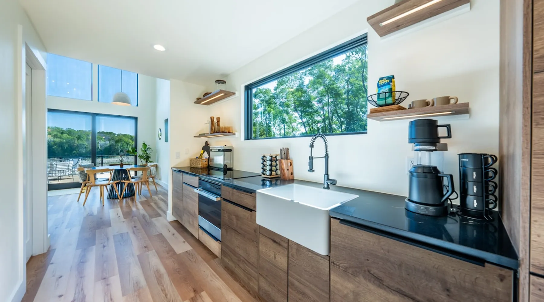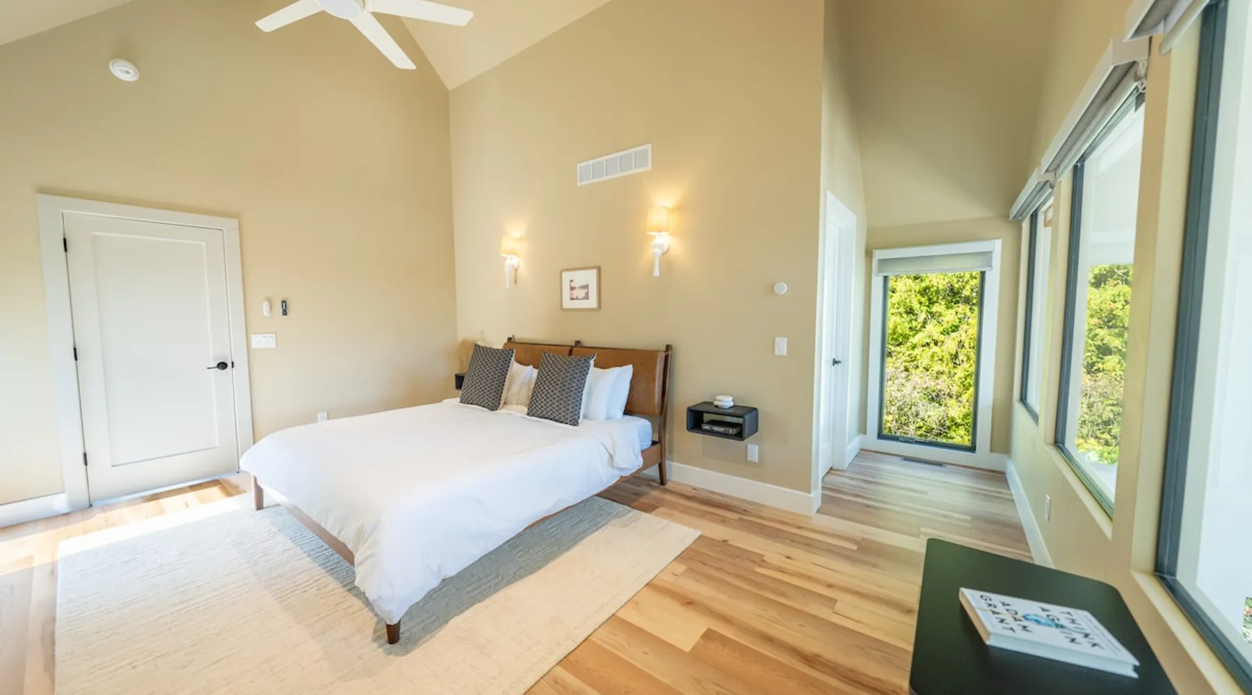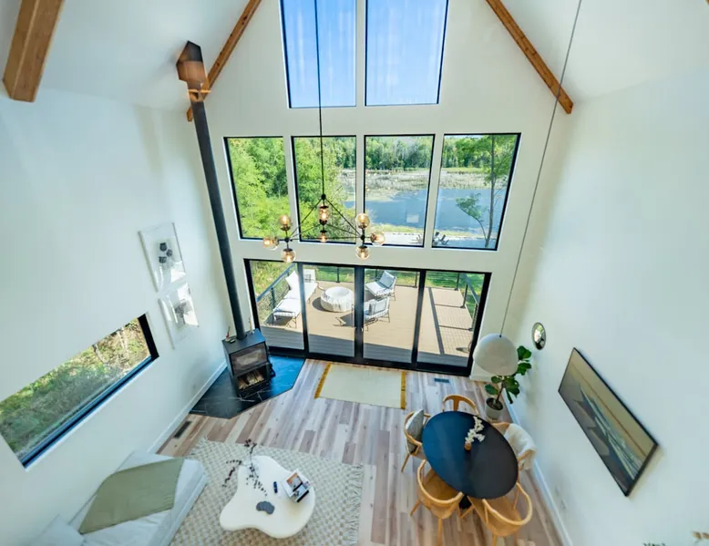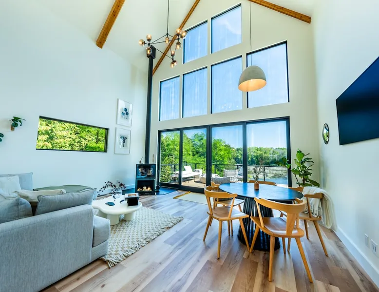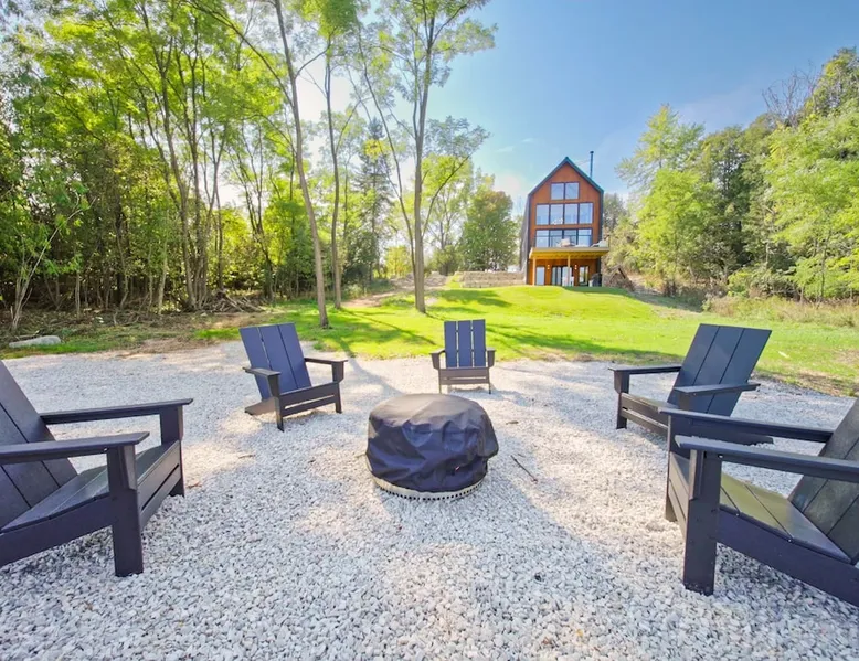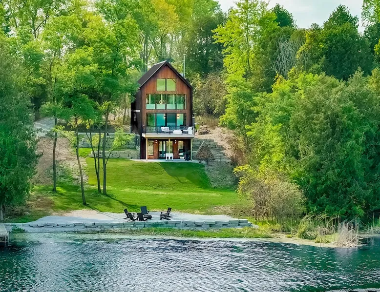 Immerse yourself in the beauty of Scandinavian design, the tranquility of nature, and the luxury of modern comforts. Book your stay at our waterfront cabin for an unparalleled Airbnb experience. Your secluded retreat awaits! The space This newly built Scandinavian cabin is a stunning retreat nestled in the picturesque landscapes of Door County. Designed with utmost care and attention to detail, this cabin offers a serene and luxurious living experience. The cabin features three spacious bedrooms, each thoughtfully designed to provide comfort and privacy to its occupants. Each bedroom is located on a separate floor, ensuring maximum privacy and tranquility for guests. The layout is as follows: Main Floor: The main floor is home to the first bedroom, which boasts breathtaking waterfront views from main living room. This cozy bedroom offers a two twin beds, ample storage space, and a soothing color palette that complements the natural surroundings. The main floor bathroom features modern fixtures and a refreshing rain shower. Basement Floor: On the basement floor, you'll discover the second bedroom, which also offers mesmerizing waterfront views from second living room with walkout patio door. This room is furnished with a comfy queen bed, elegant decor, and large windows that allow abundant natural light to flood the space. The private bathroom, adjacent to the bedroom, is equipped with contemporary amenities, including a luxurious rain shower. This floor also has a media room where there is a sofa that converts to a queen size bed to sleep 2. Master Floor: On the top floor, you'll find the Master bedroom suite, designed to provide a peaceful haven. From this elevated position, guests can enjoy panoramic views of the surrounding water and natural landscapes. The bedroom is furnished with a plush king size bed and offers a cozy ambiance for relaxation. The private bathroom on this floor is adorned with stylish fixtures and features a walk-in shower & freestanding tub. Throughout the cabin, the emphasis is on embracing the beauty of nature. Large windows adorn each room, allowing guests to immerse themselves in the breathtaking waterfront views from every angle. The interiors are crafted with natural materials like wood, stone, and earth tones to create a harmonious connection with the serene surroundings. Outside, the cabin boasts spacious deck, where guests can bask in the tranquility of the waterfront serendipity. Whether enjoying a morning coffee, reading a book, or simply soaking up the serenity, these outdoor spaces provide the perfect setting to unwind and connect with nature. In summary, this newly built Scandinavian cabin with three bedrooms and three private bathrooms, each located separately on different floors, offers a luxurious retreat with stunning waterfront views. With its thoughtful design, emphasis on privacy, and integration with nature, this cabin provides an unforgettable experience for those seeking relaxation and tranquility in the heart of Door County Guest access Full Cabin