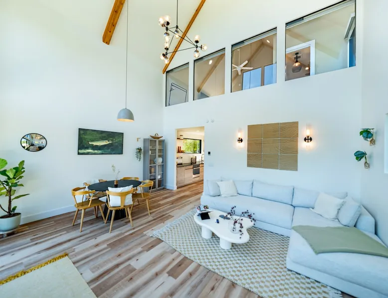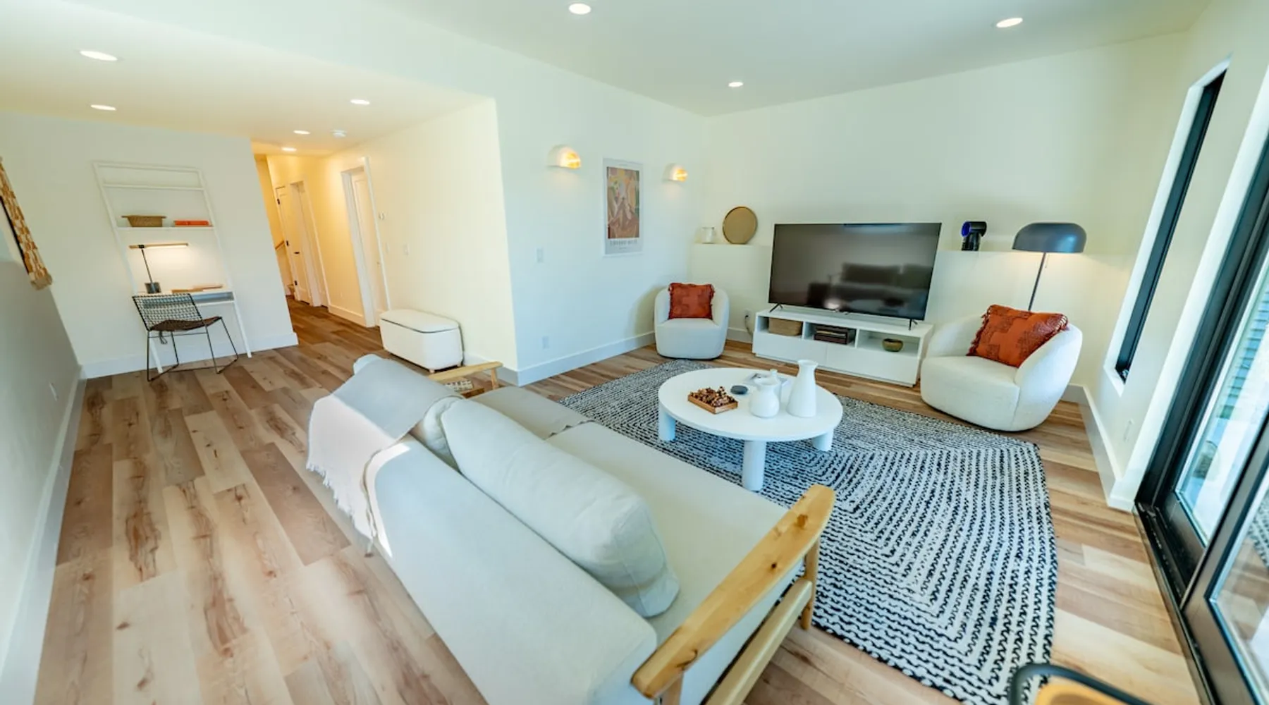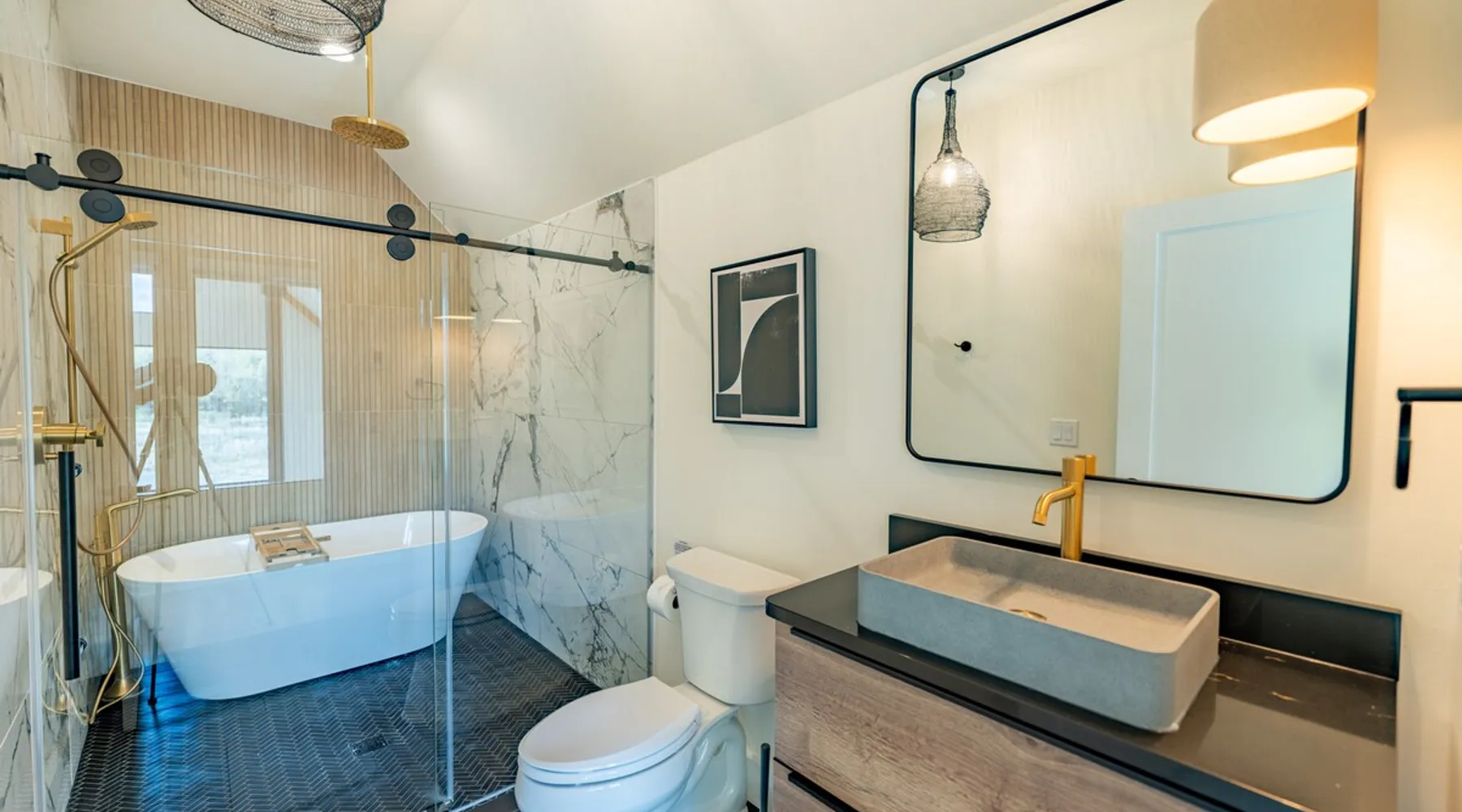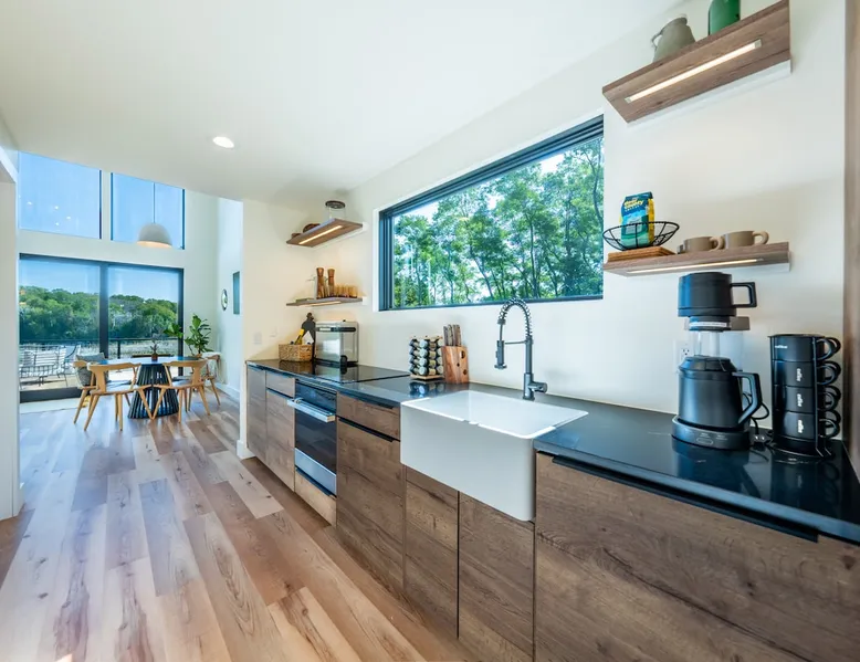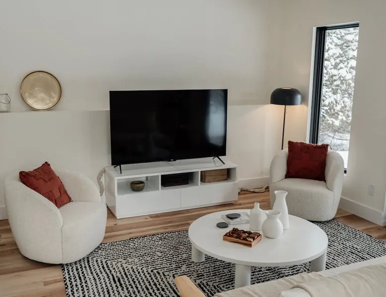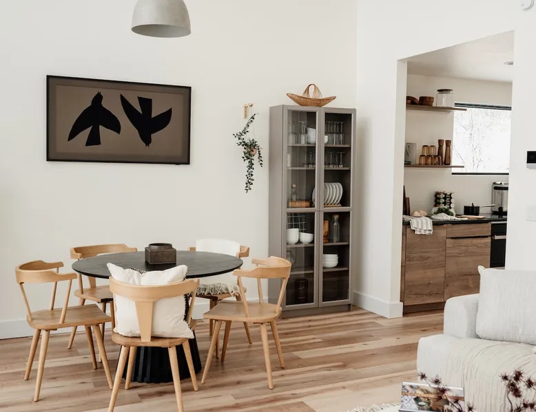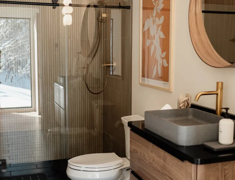 Immerse yourself in the beauty of Scandinavian design, the tranquility of nature, and the luxury of modern comforts. Book your stay at our waterfront cabin for an unparalleled Airbnb experience. Your secluded retreat awaits! The space This newly built Scandinavian cabin is a stunning retreat nestled in the picturesque landscapes of Door County. Designed with utmost care and attention to detail, this cabin offers a serene and luxurious living experience. The cabin features three spacious bedrooms, each thoughtfully designed to provide comfort and privacy to its occupants. Each bedroom is located on a separate floor, ensuring maximum privacy and tranquility for guests. The layout is as follows: Main Floor: The main floor is home to the first bedroom, which boasts breathtaking waterfront views from main living room. This cozy bedroom offers a two twin beds, ample storage space, and a soothing color palette that complements the natural surroundings. The main floor bathroom features modern fixtures and a refreshing rain shower. Basement Floor: On the basement floor, you'll discover the second bedroom, which also offers mesmerizing waterfront views from second living room with walkout patio door. This room is furnished with a comfy queen bed, elegant decor, and large windows that allow abundant natural light to flood the space. The private bathroom, adjacent to the bedroom, is equipped with contemporary amenities, including a luxurious rain shower. This floor also has a media room where there is a sofa that converts to a queen size bed to sleep 2. Master Floor: On the top floor, you'll find the Master bedroom suite, designed to provide a peaceful haven. From this elevated position, guests can enjoy panoramic views of the surrounding water and natural landscapes. The bedroom is furnished with a plush king size bed and offers a cozy ambiance for relaxation. The private bathroom on this floor is adorned with stylish fixtures and features a walk-in shower & freestanding tub. Throughout the cabin, the emphasis is on embracing the beauty of nature. Large windows adorn each room, allowing guests to immerse themselves in the breathtaking waterfront views from every angle. The interiors are crafted with natural materials like wood, stone, and earth tones to create a harmonious connection with the serene surroundings. Outside, the cabin boasts spacious deck, where guests can bask in the tranquility of the waterfront serendipity. Whether enjoying a morning coffee, reading a book, or simply soaking up the serenity, these outdoor spaces provide the perfect setting to unwind and connect with nature. In summary, this newly built Scandinavian cabin with three bedrooms and three private bathrooms, each located separately on different floors, offers a luxurious retreat with stunning waterfront views. With its thoughtful design, emphasis on privacy, and integration with nature, this cabin provides an unforgettable experience for those seeking relaxation and tranquility in the heart of Door County Guest access Full Cabin