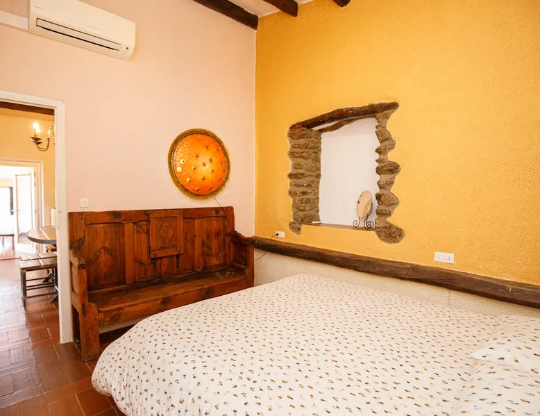 Beautiful farmhouse located in a small village on the Costa Brava, near Roses beach; at the foot of Cap de Creus with magnificent views of the Pyrenees and the sea. Perfect accommodation for families with children of all ages. Spacious and cozy outdoor area, with plenty of privacy for everyone. It has several terraces and a large swimming pool. The outdoor kitchen with gas barbecue offers many possibilities and is perfectly equipped. Cosy and tastefully decorated interiors. The space Beautiful 18th century farmhouse with charm. Perfect for families or friends. Distributed on two floors. The house consists of 4 bedrooms with 4 double beds and two single beds, 2 bathrooms, kitchen, kitchen, 2 living rooms and 2 dining rooms and a large swimming pool. All this with a careful and warm decoration, respecting the centenary air of the farmhouse. In the outdoor area, the private pool is surrounded by corners, and terraces from where you can contemplate the bay of Roses and the Pyrenees. A very equipped outdoor kitchen, and a dining room with very good shade, to enjoy outdoor meals and dinners. The house has a studio with a room and a bathroom for bookings of more than eight adults. Palau-saverdera is a very quiet town and located in a privileged area, surrounded by natural parks: Cap de Creus and Albera. A few kilometers from wonderful beaches and coves. Registration Details Catalonia – Regional registration number HUTG-032984