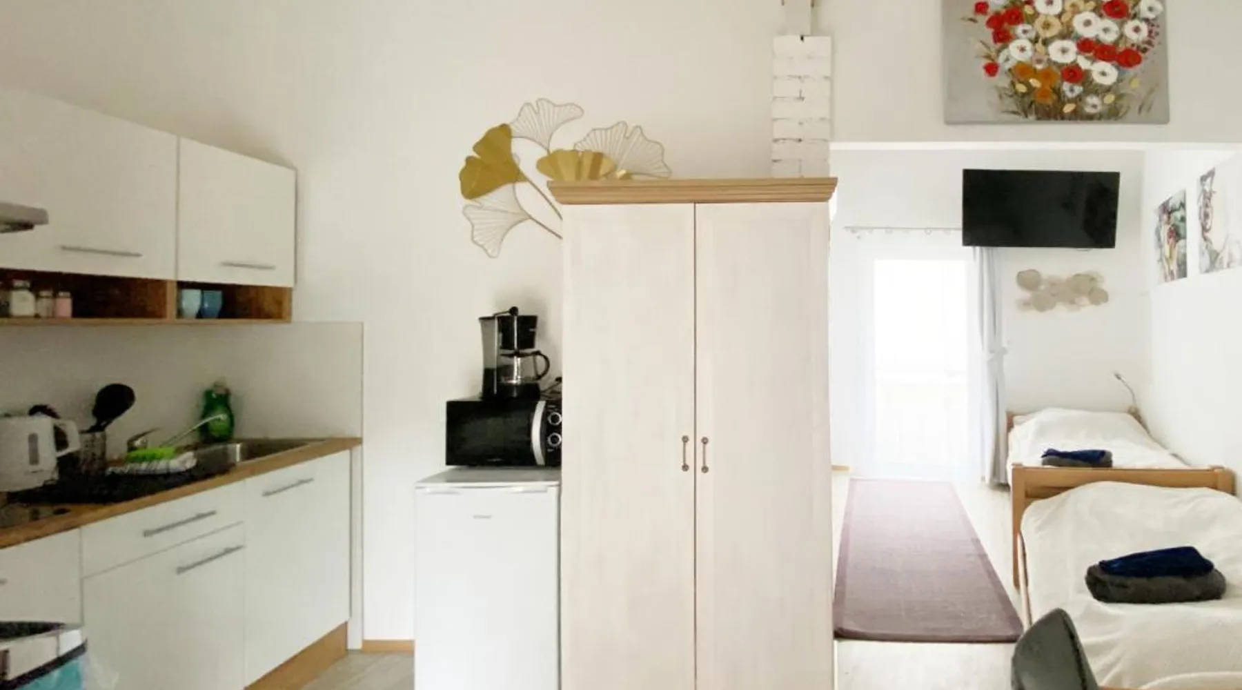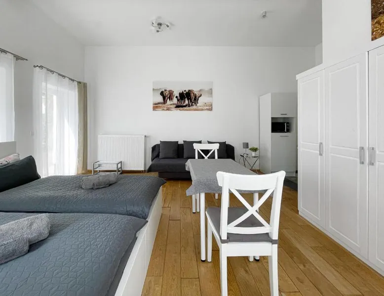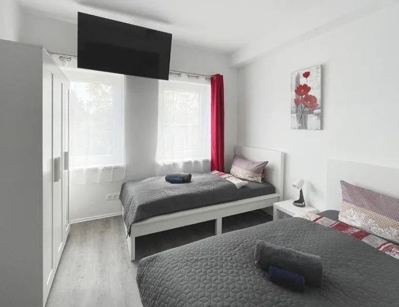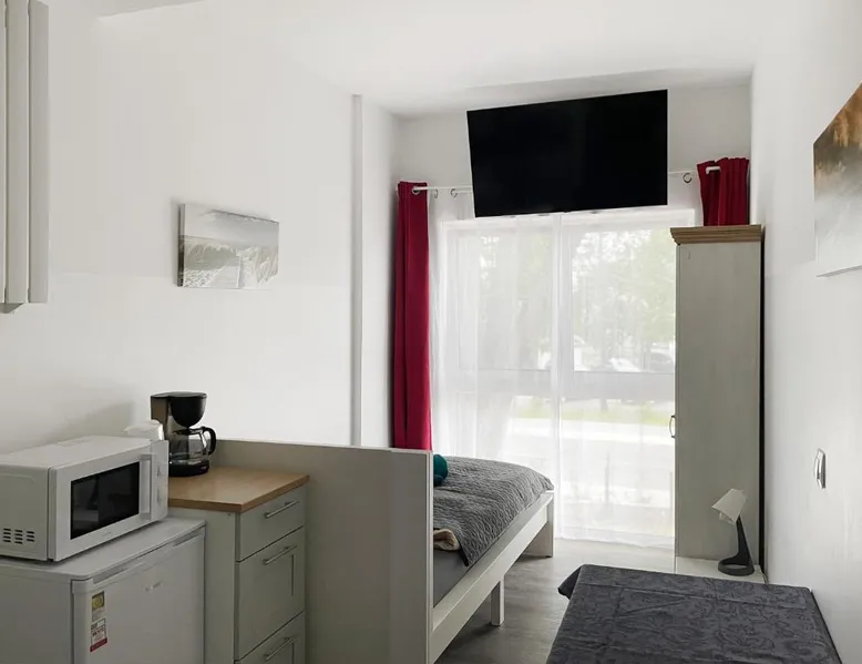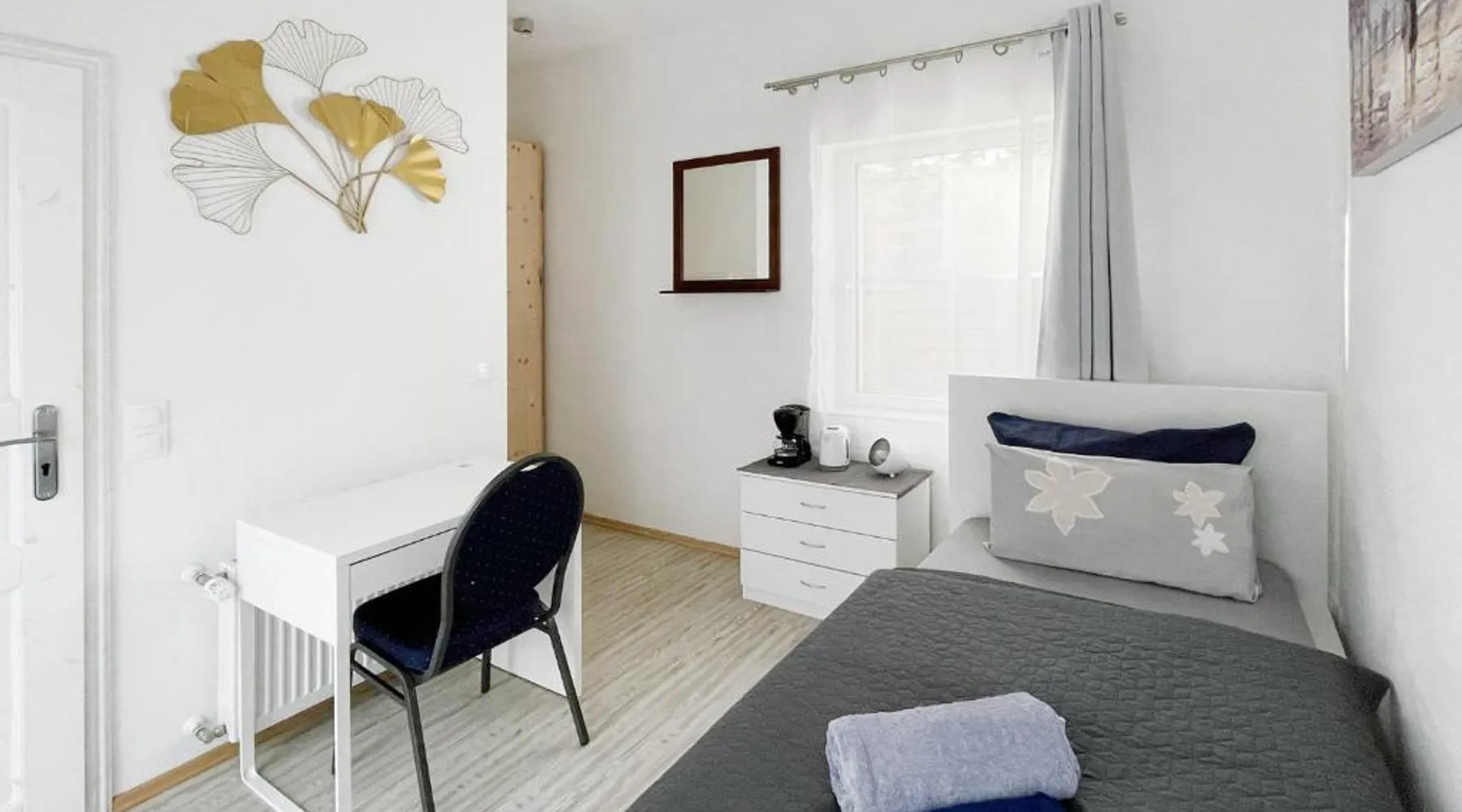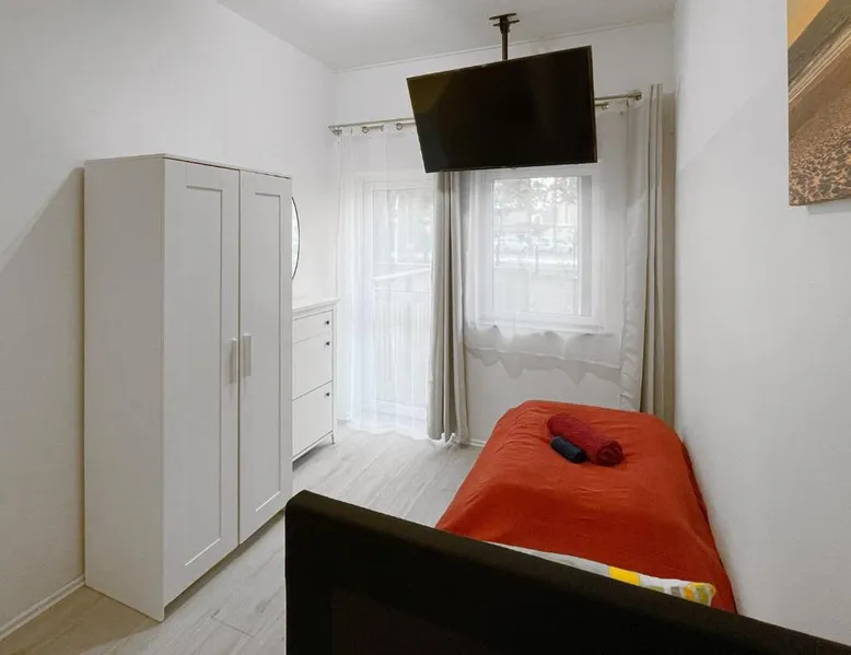 Comfortable Accommodations: Schwanenburg Apartments in Panketal offers apartment-style living with free WiFi, private bathrooms, and modern amenities. Each unit includes a kitchenette, balcony, and parquet floors, ensuring a pleasant stay. Convenient Facilities: Guests can enjoy free on-site private parking, bicycle parking, and a washing machine. Additional features include a work desk, dining area, and sofa bed, catering to all needs. Prime Location: Located 42 mi from Berlin Brandenburg Airport, the property is near attractions such as Alexanderplatz Underground Station (11 mi) and Berlin TV Tower (12 mi). Hiking enthusiasts can explore the surrounding area. Featuring a private entrance, this apartment consists of a kitchenette, 2 bedrooms and 1 bathroom with a shower and a hairdryer. Guests can make meals in the kitchenette that comes with a stovetop, a refrigerator, kitchenware and a microwave. This apartment features a tea and coffee maker, a wardrobe, a flat-screen TV with satellite channels and a balcony. The unit offers 3 beds.