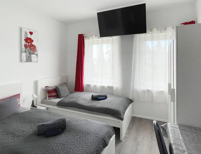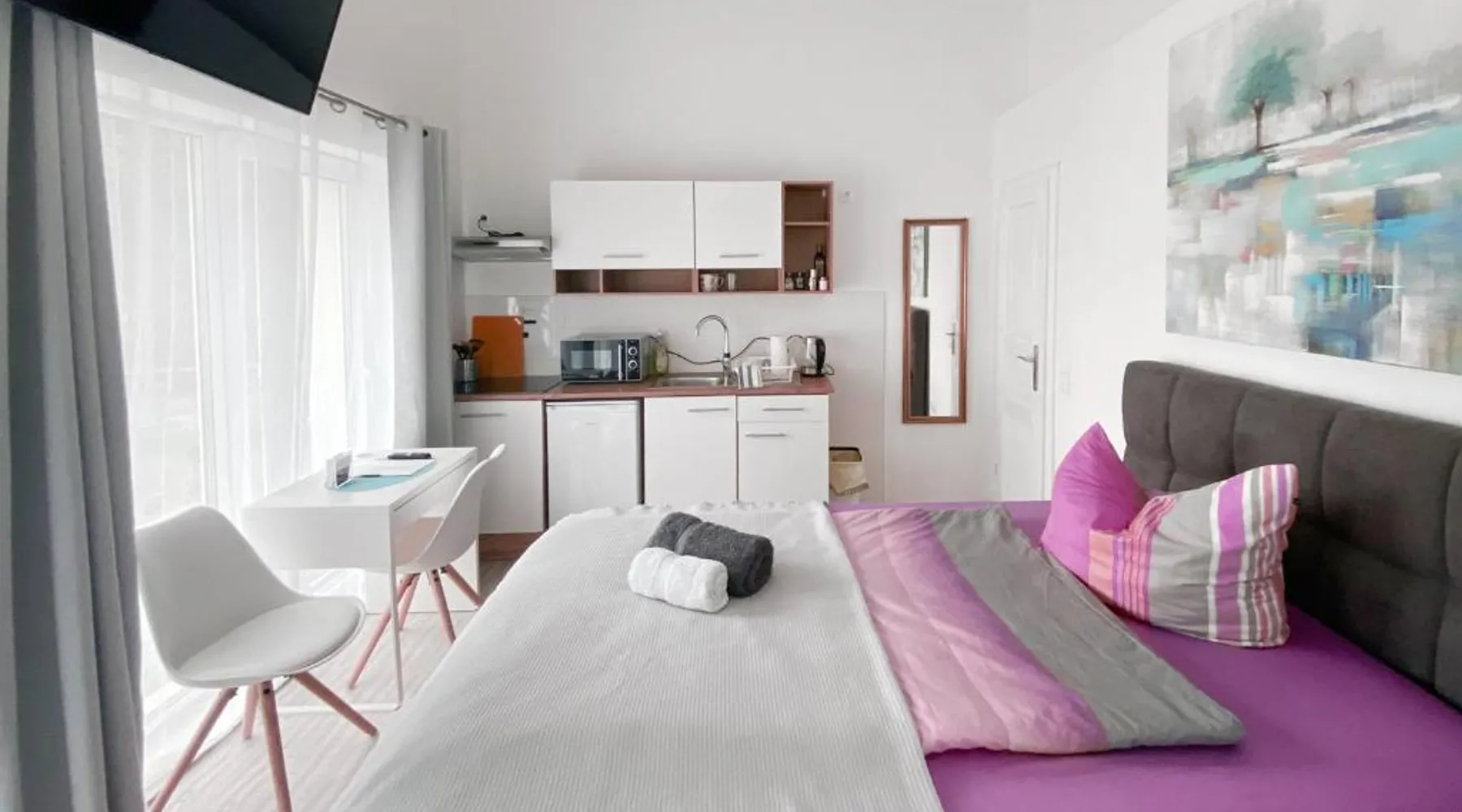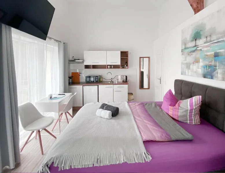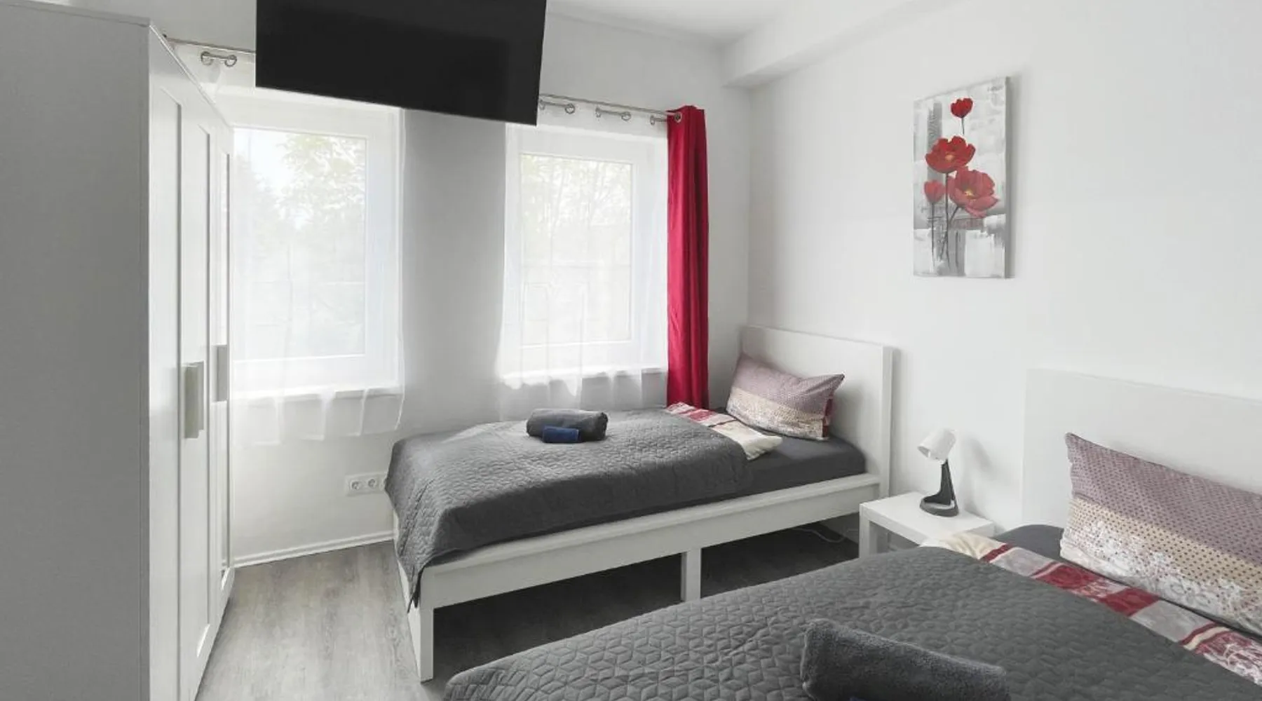 Comfortable Accommodations: Schwanenburg Apartments in Panketal offers apartment-style living with free WiFi, private bathrooms, and modern amenities. Each unit includes a kitchenette, balcony, and parquet floors, ensuring a pleasant stay. Convenient Facilities: Guests can enjoy free on-site private parking, bicycle parking, and a washing machine. Additional features include a work desk, dining area, and sofa bed, catering to all needs. Prime Location: Located 42 mi from Berlin Brandenburg Airport, the property is near attractions such as Alexanderplatz Underground Station (11 mi) and Berlin TV Tower (12 mi). Hiking enthusiasts can explore the surrounding area. Featuring a private entrance, this apartment consists of a kitchenette, 2 bedrooms and 1 bathroom with a shower and a hairdryer. Guests can make meals in the kitchenette that comes with a stovetop, a refrigerator, kitchenware and a microwave. This apartment features a tea and coffee maker, a wardrobe, a flat-screen TV with satellite channels and a balcony. The unit offers 3 beds.