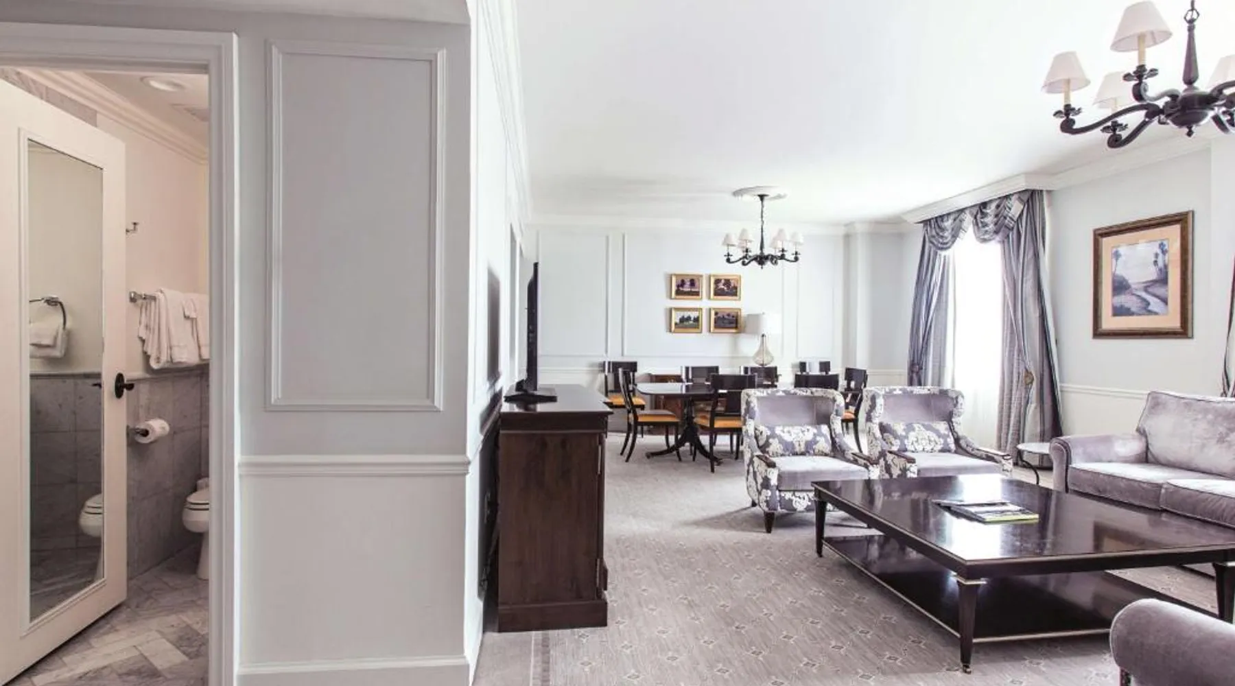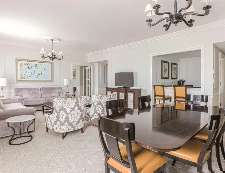 This historic hotel is located in Charleston city center 1581 feet from College of Charleston and 1 mi from South Carolina Aquarium. Offerings include 3 restaurants, 4 bars, and a full-service spa. An indoor and outdoor saltwater pool and a fitness center are featured at the The Charleston Place. Shops and a full-service concierge are also available on site. The rooftop Clocktower Terrace bar located at the pool deck is available to guests. The Charleston Grill is on site, which features live jazz and modern Southern American cuisine. Guests can have breakfast and lunch in the casual Palmetto Cafe or a cocktail in the Thoroughbred Club. Free WiFi, a cable TV, and an en suite with bathrobes are provided in each room at The Charleston Place. Room service is available 24 hours. The hotel is 328 feet from Peninsula Grill, 984 feet from Charleston Historic District and 1640 feet from Old Slave Mart Museum. Charleston International Airport is 9.3 mi away. This suite includes a seating area, complete with 1 sofa and 1 sofa bed. It has a dining table that seats 4 and offers Club Lounge access which includes: - Complimentary all-day food and beverage - Continental breakfast - Afternoon tea service - Evening hors d’oeuvres - Full bar selection - Nightly cordials and desserts