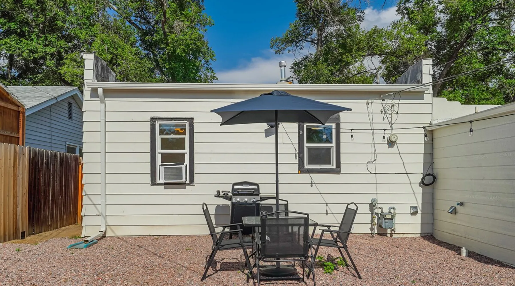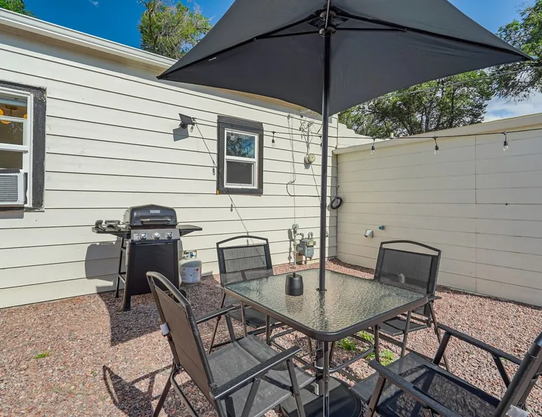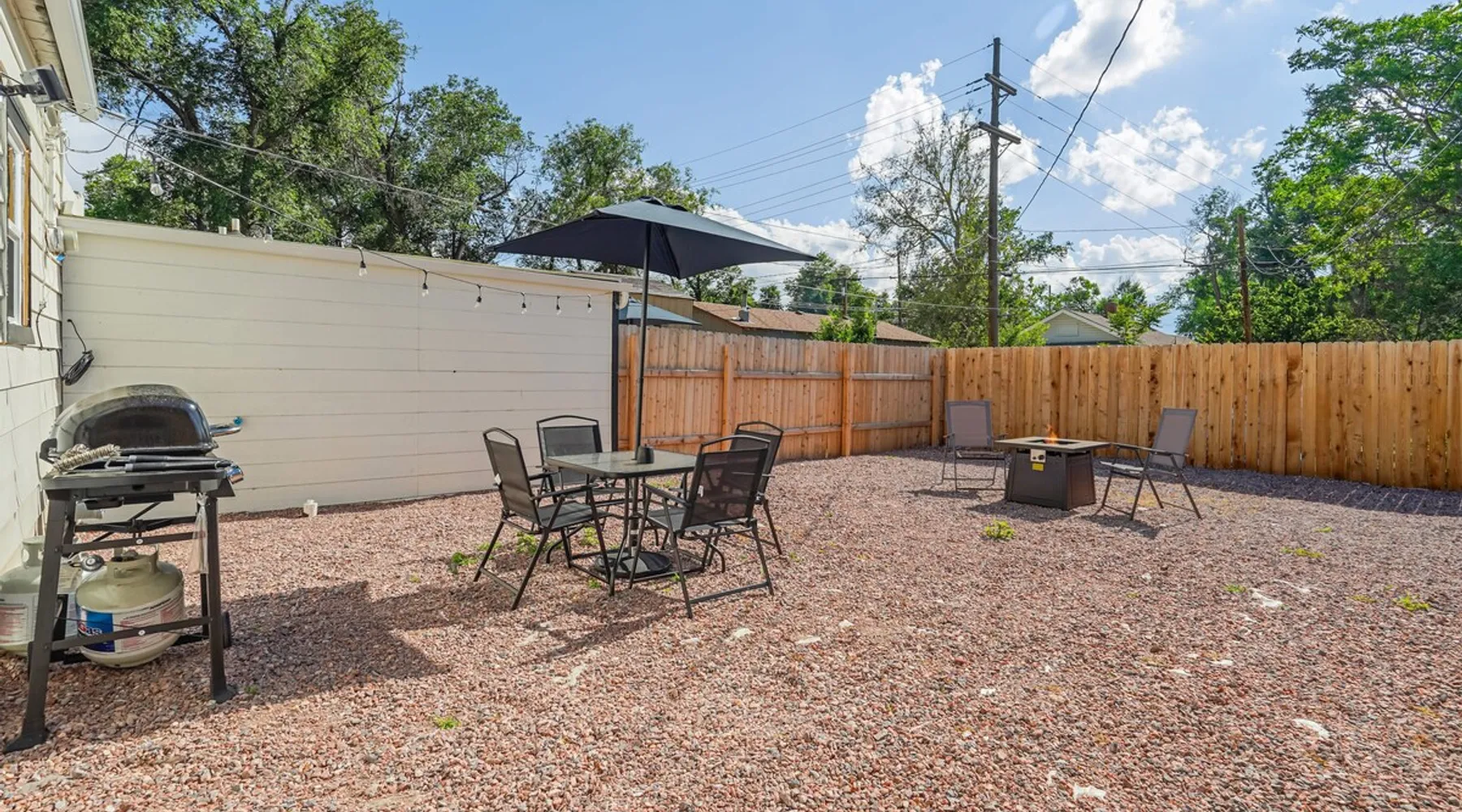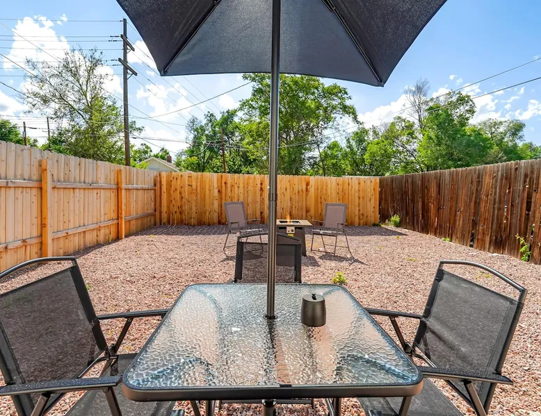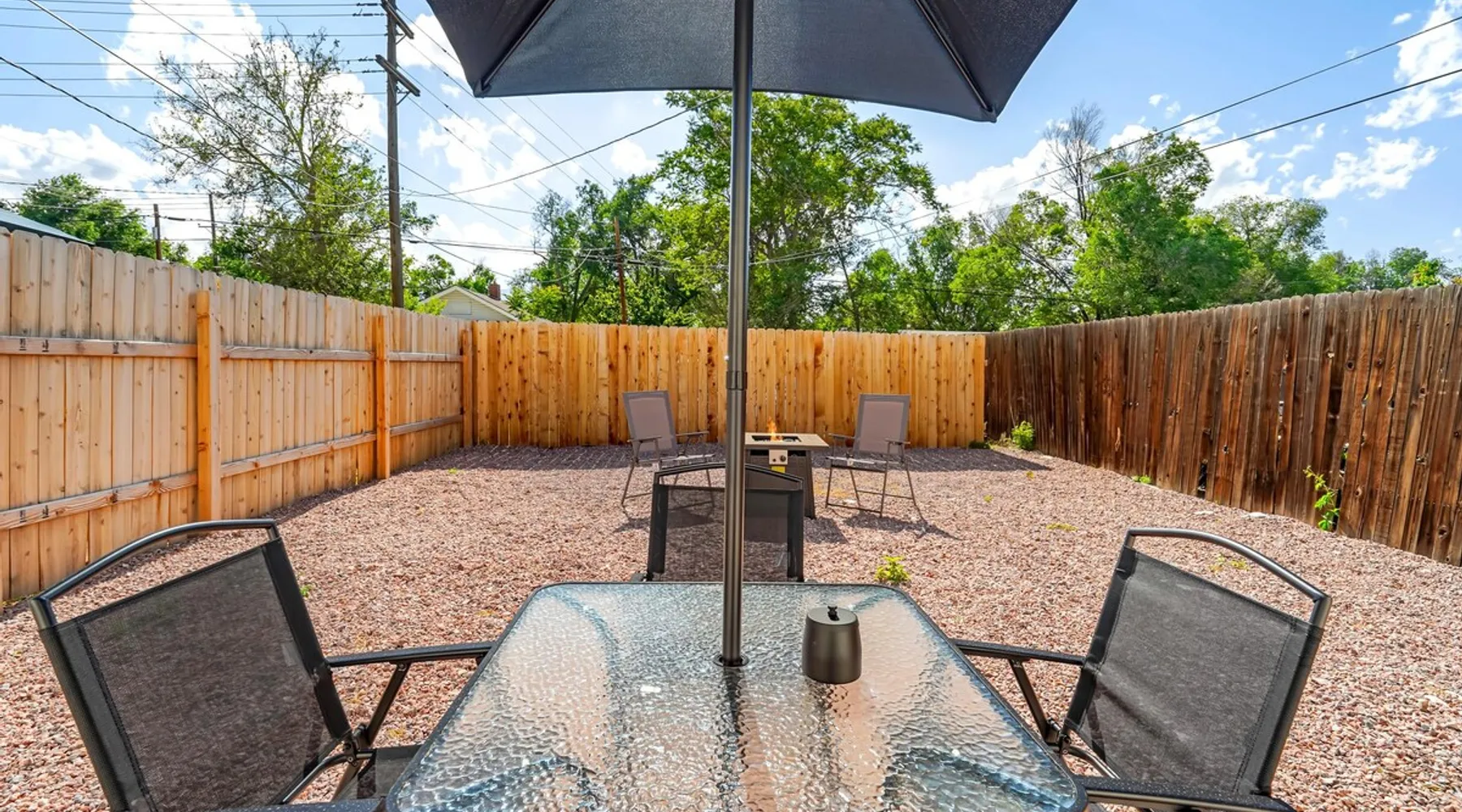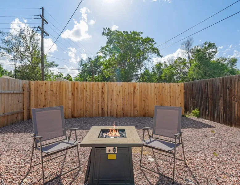 Welcome to your tranquil haven nestled in the heart of the city, where modern comfort meets ultimate relaxation in our beautifully appointed unit. ☀️ Professionally cleaned & sanitized ✨ Newly remodeled for your comfort 💻 Work remotely with ease 🍽️ Fully stocked kitchen & bathroom 🚗 Only 2 minutes to the Olympic Training Center, and just minutes to I-25, Garden of the Gods, Downtown Colorado Springs, and more! The space Welcome to our charming unit located in a prime location! This tastefully designed space offers comfort and convenience for your stay. 🛏️ Bedroom 1: King Bed Retreat to the spacious and stylish king bedroom, where you can enjoy your favorite shows or movies on the Smart TV. Unwind and relax in the comfortable ambiance of this inviting room. 🛏️ Bedroom 2: Queen Bed Rest peacefully in the cozy queen bedroom, complete with its own Window AC unit to keep you cool and comfortable. Experience a good night's sleep in the cozy queen bed and wake up refreshed and ready for the adventures ahead. 🛁 Bathroom Indulge in the modern and fully remodeled bathroom, where you can refresh yourself with a hot shower before a day of fun! Start your day feeling rejuvenated in this pristine space. 🍽️ Fully Stocked Kitchen Cook and prepare meals with ease in the fully stocked kitchen, featuring an electric range for all your culinary creations. Enjoy the convenience of everything you need right at your fingertips. 🧺 Laundry Take advantage of the washer and dryer conveniently located in the kitchen, available for use whenever you need. Perfect for longer stays or refreshing your wardrobe during your visit. 🛋️ Living Room Gather in the cozy living room, perfect for relaxation. Watch your favorite movies or shows on the Smart TV by logging into your favorite streaming services. The queen sofa bed provides additional sleeping space for extra guests. 🌳 Backyard Step outside to the private backyard for relaxing evenings! Enjoy the warmth of the fire pit during chilly nights and dine al fresco at the charming dining table, complete with an umbrella to protect from the Colorado sun. If you're feeling up to it, show off your grilling skills on the BBQ for delicious meals. Guest access 🔑 During your stay, you will have complete access to the entire property, including all its amenities and facilities. You are welcome to make use of everything available to ensure a comfortable and enjoyable experience. Please feel free to let us know if there's anything specific you'd like to know about the property or if you have any special requests during your stay. We want to ensure that you have a wonderful time while you're here. Other things to note 📜 Rental Agreement: For a seamless booking experience, a Rental Agreement is required for all reservations. Once your reservation is confirmed, we’ll provide details for completing the agreement. 🔑 Check-In Process: For a smooth check-in experience, your unique code along with your check-in instructions will be updated into your personalized guidebook on the morning of your arrival. You’ll use this code for entry. ☕ Starter Supply: We’ve prepared a starter supply that includes paper towels, coffee K-cups, toilet paper, shampoo, body wash, and plush white towels! We hope these amenities add an extra touch of comfort to your stay. 🐾 Pets: If you are looking to bring your dog, we allow up to 2 dogs during your stay for a fee. $100 for the first dog and $100 for the second dog (max. 2 dogs unless otherwise approved). This fee is charged after reservation confirmation. Reasonable rules and expectations for your dogs are outlined in our guidebook. ⏰ Unauthorized Late Checkout Fee: $20 Per Half Hour Late 💸 Additional Fees: To ensure that we have enough time to prepare for future guests, we ask that you please message us ahead of time for pricing regarding guaranteed early check-ins or late check-outs. These additional fees are necessary to cover the expenses of reworking the schedule or adding an additional cleaner to accommodate your request. 🏠 Duplex Setup: As part of a side-by-side duplex setup, this unit is all yours for the duration of your stay. The other unit is rented out separately, so the driveway is shared.