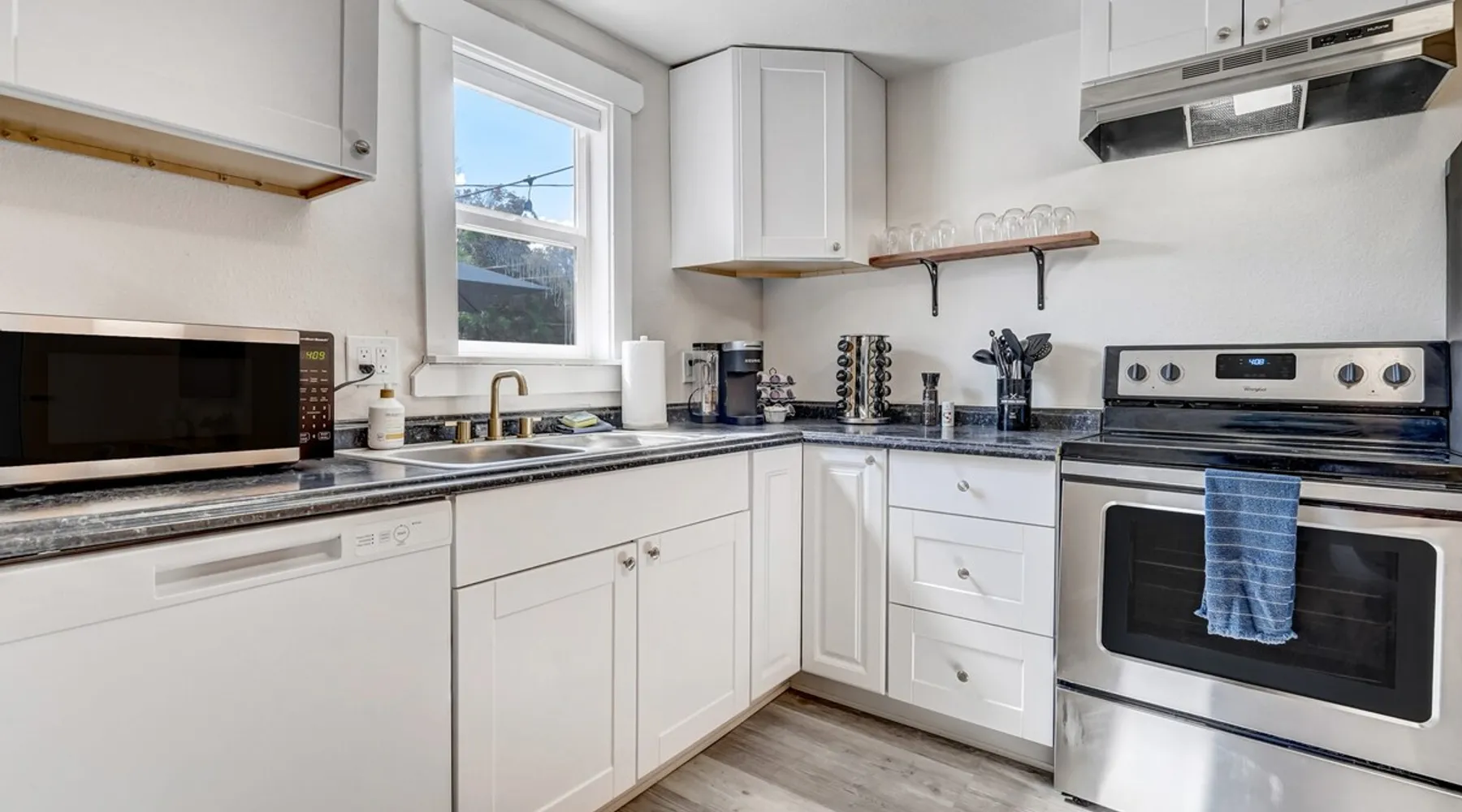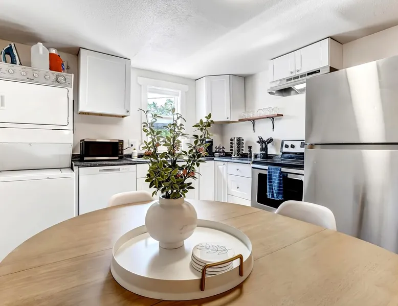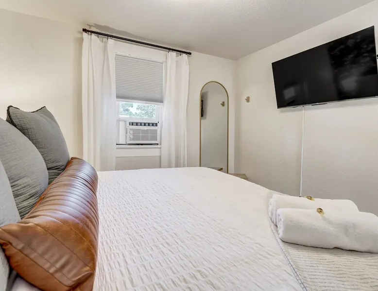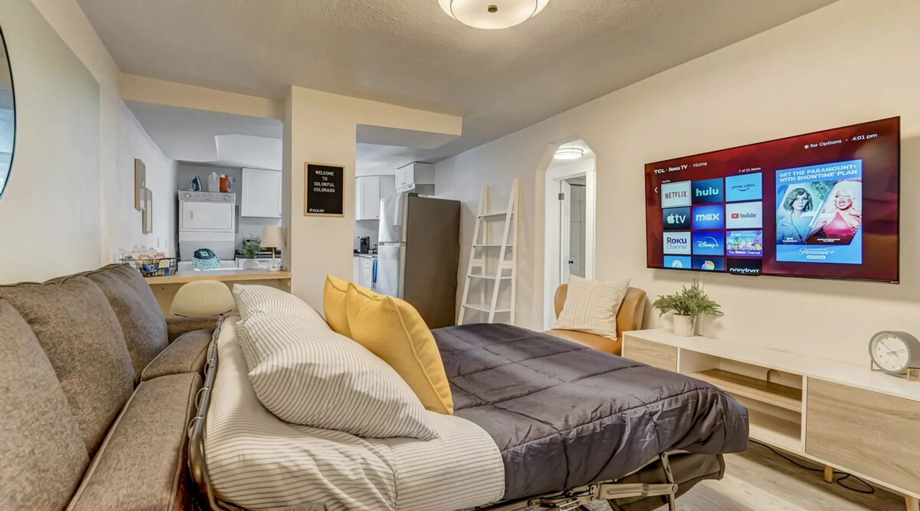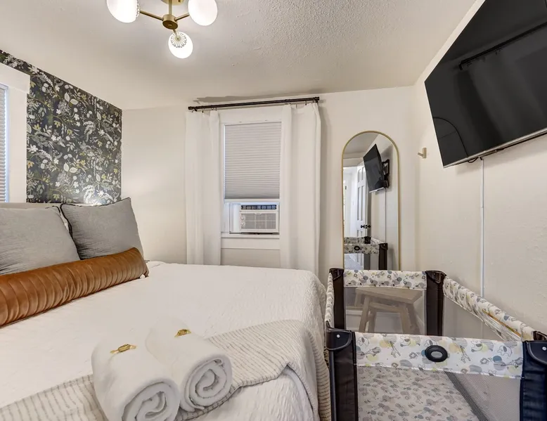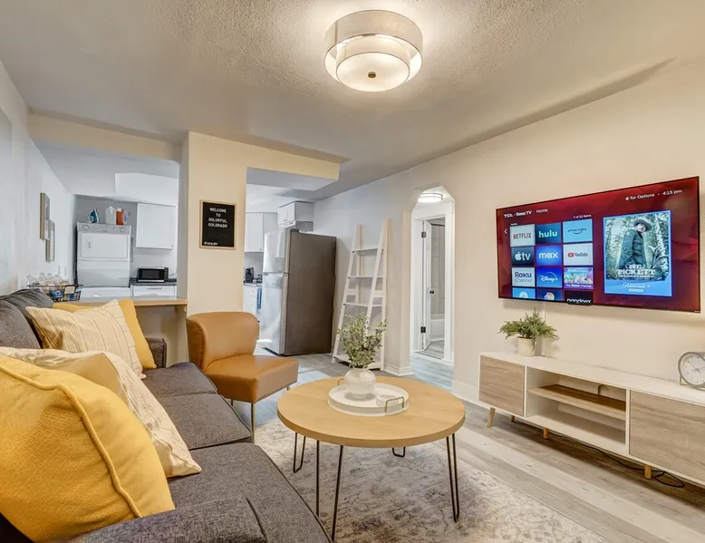 Welcome to your tranquil haven nestled in the heart of the city, where modern comfort meets ultimate relaxation in our beautifully appointed unit. ☀️ Professionally cleaned & sanitized ✨ Newly remodeled for your comfort 💻 Work remotely with ease 🍽️ Fully stocked kitchen & bathroom 🚗 Only 2 minutes to the Olympic Training Center, and just minutes to I-25, Garden of the Gods, Downtown Colorado Springs, and more! The space Welcome to our charming unit located in a prime location! This tastefully designed space offers comfort and convenience for your stay. 🛏️ Bedroom 1: King Bed Retreat to the spacious and stylish king bedroom, where you can enjoy your favorite shows or movies on the Smart TV. Unwind and relax in the comfortable ambiance of this inviting room. 🛏️ Bedroom 2: Queen Bed Rest peacefully in the cozy queen bedroom, complete with its own Window AC unit to keep you cool and comfortable. Experience a good night's sleep in the cozy queen bed and wake up refreshed and ready for the adventures ahead. 🛁 Bathroom Indulge in the modern and fully remodeled bathroom, where you can refresh yourself with a hot shower before a day of fun! Start your day feeling rejuvenated in this pristine space. 🍽️ Fully Stocked Kitchen Cook and prepare meals with ease in the fully stocked kitchen, featuring an electric range for all your culinary creations. Enjoy the convenience of everything you need right at your fingertips. 🧺 Laundry Take advantage of the washer and dryer conveniently located in the kitchen, available for use whenever you need. Perfect for longer stays or refreshing your wardrobe during your visit. 🛋️ Living Room Gather in the cozy living room, perfect for relaxation. Watch your favorite movies or shows on the Smart TV by logging into your favorite streaming services. The queen sofa bed provides additional sleeping space for extra guests. 🌳 Backyard Step outside to the private backyard for relaxing evenings! Enjoy the warmth of the fire pit during chilly nights and dine al fresco at the charming dining table, complete with an umbrella to protect from the Colorado sun. If you're feeling up to it, show off your grilling skills on the BBQ for delicious meals. Guest access 🔑 During your stay, you will have complete access to the entire property, including all its amenities and facilities. You are welcome to make use of everything available to ensure a comfortable and enjoyable experience. Please feel free to let us know if there's anything specific you'd like to know about the property or if you have any special requests during your stay. We want to ensure that you have a wonderful time while you're here. Other things to note 📜 Rental Agreement: For a seamless booking experience, a Rental Agreement is required for all reservations. Once your reservation is confirmed, we’ll provide details for completing the agreement. 🔑 Check-In Process: For a smooth check-in experience, your unique code along with your check-in instructions will be updated into your personalized guidebook on the morning of your arrival. You’ll use this code for entry. ☕ Starter Supply: We’ve prepared a starter supply that includes paper towels, coffee K-cups, toilet paper, shampoo, body wash, and plush white towels! We hope these amenities add an extra touch of comfort to your stay. 🐾 Pets: If you are looking to bring your dog, we allow up to 2 dogs during your stay for a fee. $100 for the first dog and $100 for the second dog (max. 2 dogs unless otherwise approved). This fee is charged after reservation confirmation. Reasonable rules and expectations for your dogs are outlined in our guidebook. ⏰ Unauthorized Late Checkout Fee: $20 Per Half Hour Late 💸 Additional Fees: To ensure that we have enough time to prepare for future guests, we ask that you please message us ahead of time for pricing regarding guaranteed early check-ins or late check-outs. These additional fees are necessary to cover the expenses of reworking the schedule or adding an additional cleaner to accommodate your request. 🏠 Duplex Setup: As part of a side-by-side duplex setup, this unit is all yours for the duration of your stay. The other unit is rented out separately, so the driveway is shared.