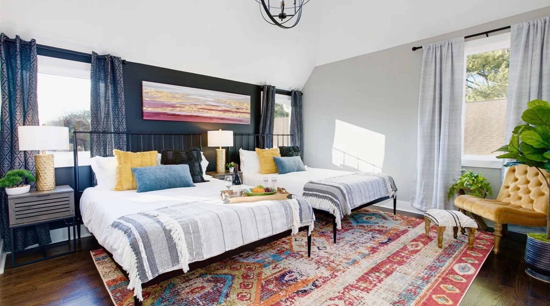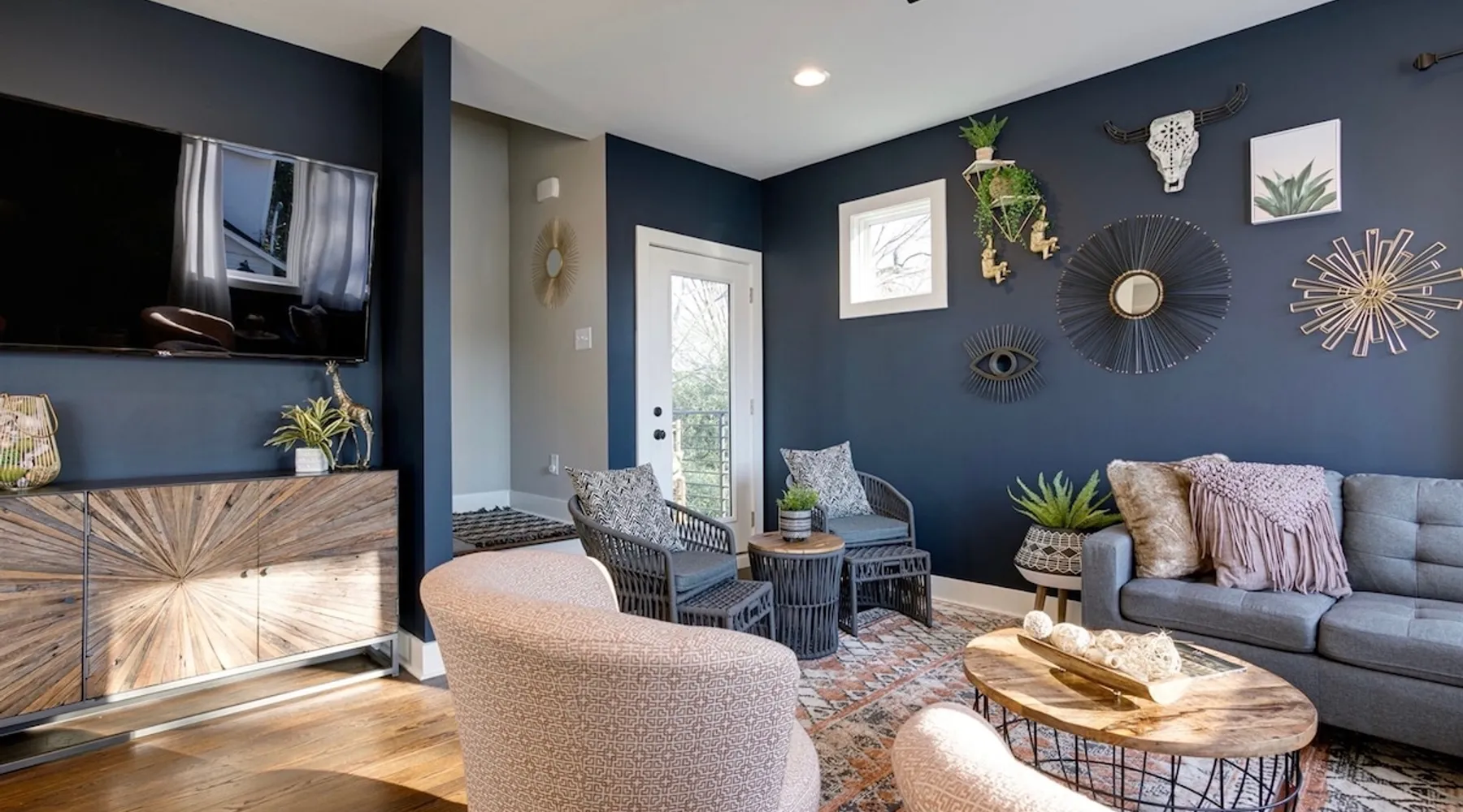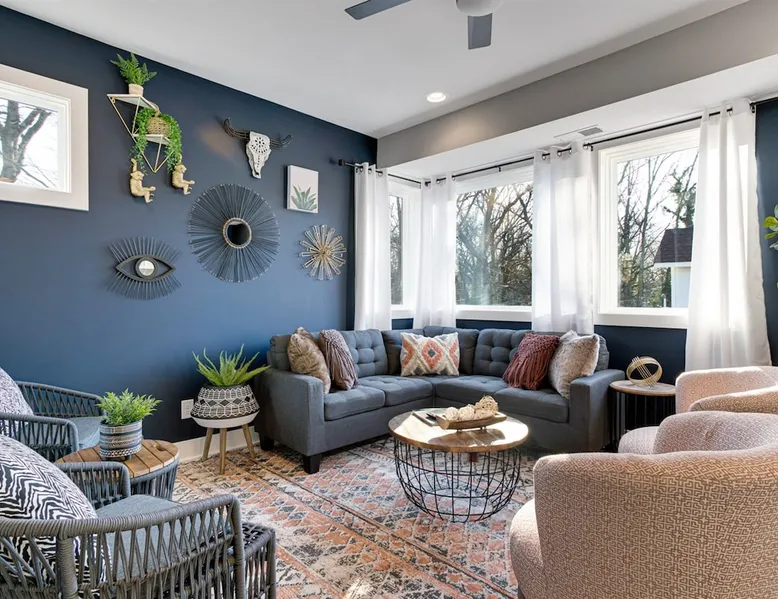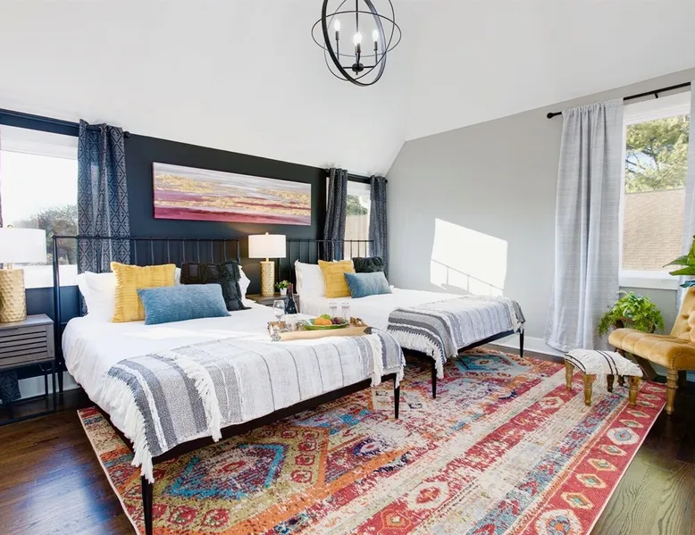 Welcome to your Nashville retreat - where boho charm meets easy comfort near The Gulch & Broadway. Gather with friends or family and enjoy skyline views, spacious living, and thoughtful touches throughout. - Sleeps 12 | 4 bedrooms | 7 beds | 4 baths - Private patio w/ outdoor dining & skyline view - Fully equipped kitchen & large lounge w/ 65” TV - Family-ready w/ baby gear & safety features - Free 2-car carport + street parking - Dedicated workspace & high-speed Wi-Fi The space Morning light filters through wide windows as you sip coffee on the patio, the Nashville skyline glowing softly in the distance. Evenings invite slow meals outdoors, where soft lights and easy laughter carry across the table. Just beyond, the hum of The Gulch and Broadway beckons, blending the city’s rhythm with the home’s relaxed bohemian charm. Sleeping arrangements This home comfortably accommodates up to 12 guests across 4 bedrooms and a flex space. Each bedroom includes its own private ensuite bath, offering both comfort and privacy. The flex space features a daybed that converts into two twin beds, ideal for families or friends traveling together. Soft cotton linens, room-darkening shades, and extra blankets create a restful setting for every guest. Kitchen & dining The fully equipped kitchen features stainless steel appliances, a gas stove, and all the essentials for home-cooked meals. Mornings begin with freshly brewed coffee, and evenings bring everyone together around the large dining table. Whether you’re preparing a shared breakfast or toasting a Nashville adventure, the space is designed for easy connection. Living areas Tall ceilings and an open layout invite conversation and relaxation. The lounge includes a spacious seating area for movie nights on the 65-inch TV or quiet moments with a book. A sound system adds warmth to gatherings, and thoughtful touches throughout ensure families feel at home, including a pack ’n play, high chair, baby bath, and built-in safety features. Outdoor living Step onto the private patio to take in the skyline views or enjoy dinner in the open air. The backyard offers green space to unwind, giving you a quiet retreat within the heart of the city. Work & connectivity A dedicated workspace provides privacy for remote work, supported by high-speed Wi-Fi throughout the home. Whether checking in with the office or planning your next outing, you’ll stay comfortably connected. Practical comforts The home includes in-unit laundry, free parking for two cars in a covered carport plus street parking, and everyday essentials like towels, toiletries, and an iron. Central air conditioning, ceiling fans, and heating maintain year-round comfort. Neighborhood Situated near The Gulch and Broadway, the home offers walkable access to local favorites like Hattie B’s, Zanies, and 8th & Roast. You’re close to the city’s vibrant music and dining scene, yet tucked into a peaceful spot where you can unwind after a day of exploring Nashville. Guest access Enjoy complete privacy with full access to all rooms and amenities. Park effortlessly in the carport or driveway and enter seamlessly with keyless entry. Stay connected with high-speed WiFi and make yourself at home. Just minutes from Nashville’s top restaurants, grocery stores, and iconic attractions, our retreat offers the perfect blend of comfort and convenience for an unforgettable stay. Other things to note 🎯 Travel Insurance - Protect your trip with Airbnb’s travel insurance! Opt for coverage at checkout and review the plan to ensure it suits your needs. After booking, you’ll receive an email with your policy and a link to easily manage your coverage. 🎯 Be Neighborly - We’re thrilled to host you! Please respect our home and neighbors to help maintain the cozy, welcoming environment we’ve created. 🎯 Local Discounts - Unlock exclusive local savings on attractions, coffee spots, and tours to experience Nashville like a local. 🎯 Family Friendly - Traveling with kids? We’ve got you covered with amenities like a pack N play, high chair, and games to make your stay stress-free. 🎯 Pet Policy - We love pets, but only service animals are allowed. Emotional support pets aren’t recognized under ADA guidelines.