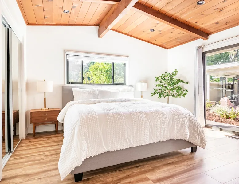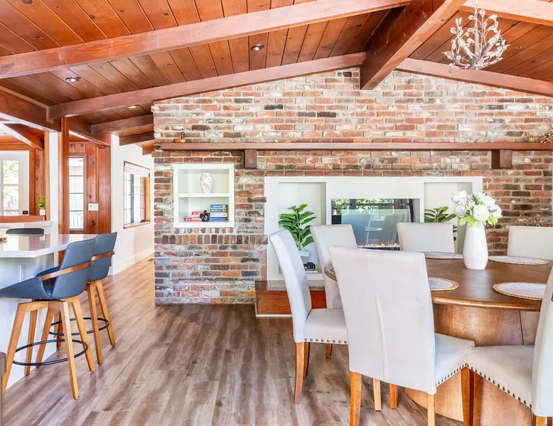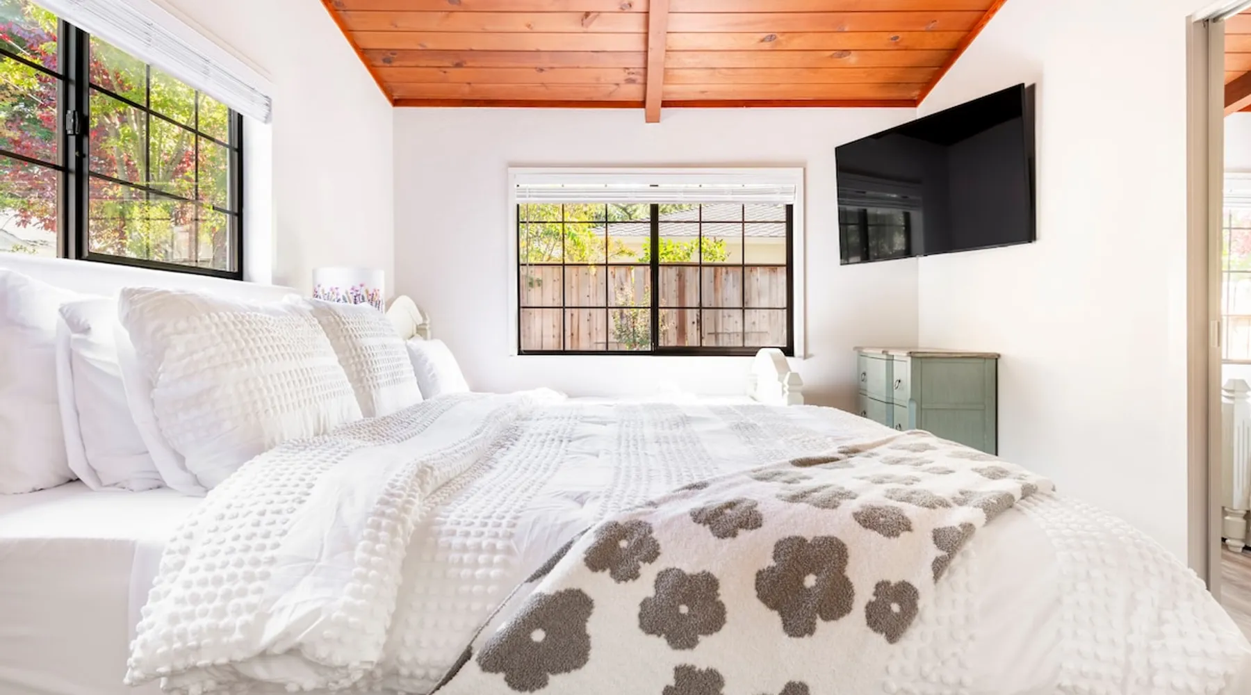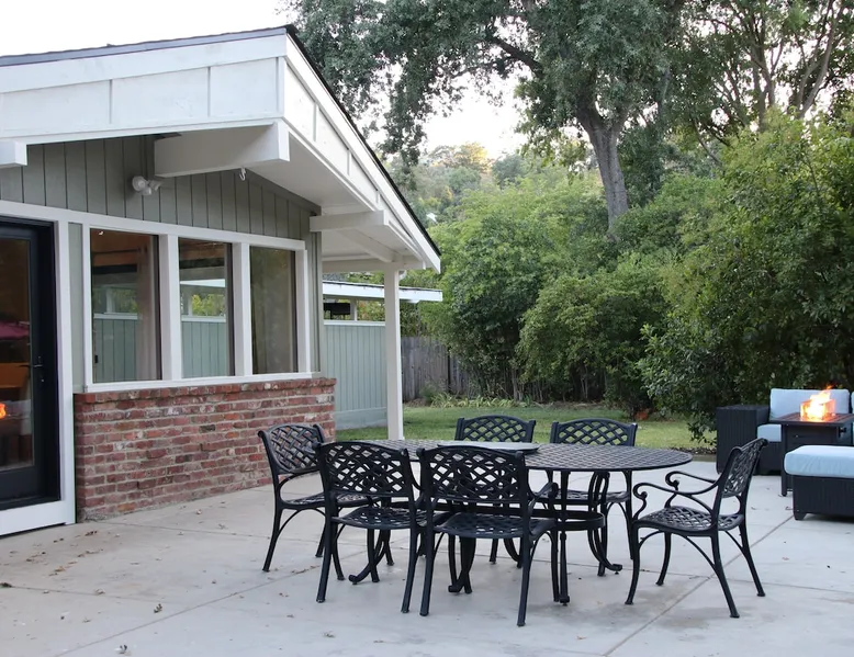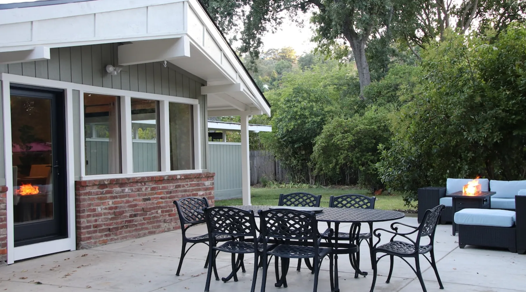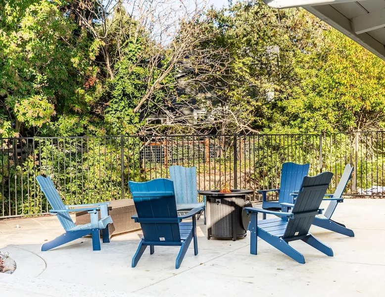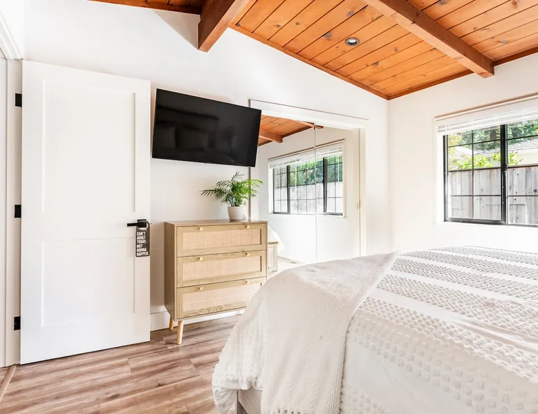 Welcome to your dream retreat nestled among a beautiful and safe setting. This enchanting 3-bedroom, 2-bath house is a haven of relaxation and comfort, perfect for creating lasting memories with your family and friends. Tucked away in a peaceful creek-side setting, this house boasts an Austrian chalet-inspired design with exquisite wood ceilings that lend an air of rustic elegance. Walking distance to downtown Walnut Creek. Close to San Francisco, Napa Valley and other Bay Area destinations. The space Your Chalet House is secluded and safe among large trees and beautiful landscaping. There is a heritage valley oak tree that is over 250 years old with a huge canopy used by squirrels, owls, doves and hawks in the backyard. There is a tranquil creek that flows on the property where you can see ducks, fish, crawdads, egrets, a resident hawk and an occasional river otter. Many outdoor areas to escape to and outdoor dining. Message us if you have any questions! Here are some of the highlights for you: -Views of the creek -2 Fire Pit Patios -Bocce Ball Court -Lounge Chair Brick Patio -Sun Umbrellas -Ping Pong Table -Gym -Cornhole -Garage you can park your car in or store items -Driveway parking for up to three cars (with one in the garage, if you need more just let us know) -Pak-n-Play -High Chair -There is nothing to do to check out, just grab your belongings :-) -Add us to your wishlist❤️ The house has an Austrian chalet design with open-beamed wood ceilings, wood paneling, rustic brick walls and wood floors. You will have: -A Gourmet kitchen -Elaborate Coffee and Tea bar with Nespresso, French press and a regular coffee maker (sugar provided) -Wine and beverage fridge -Filtered water in fridge -Laundry room with detergent for guests -Dedicated work area -High Speed Internet -Electric fire place and a candle lit fire place -Dimmable lights -Board games and puzzles -Record player -Large Smart TVs The gourmet kitchen has everything you need to make a perfect meal with your family and friends. There are all new appliances that include a beverage center in the fridge, an air fryer in the oven and a separate wine and beverage refrigerator. There is also a fun coffee and tea bar that has a Nespresso, French press and regular drip coffee makers, an electric tea kettle and various coffees and teas. We also provide sugars and cream. The kitchen has a large island and chairs to gather around and enjoy a meal, company, games or the view to the serene backyard. You will have a large beautiful dining room with an electric fireplace and dimmable chandelier so you can set the ambiance of the room. Your dining room overlooks the creek patio and backyard. There are also board games and puzzles to enjoy. The “lodge room” has a huge fireplace with electric candles, wood ceiling and wood paneling on the walls, a large smart TV, a comfortable sofa, and a wall of windows that overlook the backyard. You will also enjoy the designated workspace, with vintage books, a record player, records and a mid-century reading chair. It is truly a creative space center! The chalet has three large bedrooms with comfortable king beds that have fine linens and a heavy comforter. Each bedroom has a smart TV and electrical outlets on the night stands to charge your devices. Your bedrooms have: -3 spacious bedrooms -3 King Beds -Smart TV's in each bedroom -Apple chargers and power stations on all the night stands - Dresser and full closet in each room - Luggage holders in each room -Yoga mats in each closet The bathrooms are stocked with shampoo, conditioner and body wash. There are also simple toiletries and a hair dryer in each vanity in case you forget anything. You will have a large backyard along the creek with four different patios. One patio has lounge chairs to bask in the sun or just to relax on. The next patio has a quaint sitting area on flagstone next to the ping pong table and an outdoor gym. Another patio is under the massive oak tree and has an L shaped sofa, fire pit table and dining table. The last patio has Adirondack chairs sitting just beneath the canopy of the majestic oak tree next to the creek. There are so many places for you to enjoy the serenity of the property. There is also a large side yard to enjoy bocce ball or a game of corn hole game. There are benches to sit on if you just want to watch the action of the games or take in the beautiful surroundings. We love dogs! Our pet policy allows for up to two dogs ($195 fee), you must pick up after your dogs, have your dogs on leash outside the front of the Airbnb and do not leave dogs alone in Airbnb. The entire back yard is fenced in. Dogs not sleeping over but coming for a visit is allowed ($100 fee). Guest access The Chalet House has its own private garage and entrance. There is a keypad to gain entry into the house and a key pad to gain entry to the garage. You do share the driveway. Other things to note There is a tiny home, also available on Airbnb, on the same property. We designed both properties to maximize privacy. The tiny home has its own entrance, patio, garden area and hammock, which is exclusive to guests staying in the tiny home. You can visit the tiny home at: https://airbnb.com/h/thecreekretreattinyhome The chalet house is on a year round creek, which is home to ducks, hummingbirds, butterflies, fish, crawdads, French clams, egrets and a resident Coopers hawk. Although rare, we have seen river otters going by. There are Wood Duck nesting boxes along the creek. Wood Ducks are very skittish around humans so you have to be very quiet to catch a glimpse of them. Male wood ducks are beautiful. It's also unique that Wood Duck nest in this area every year and have their baby ducks here. The Mallard Ducks do the same but they nest on the banks of the creek. We are walking distance to downtown Walnut Creek. Walnut Creek is known for excellent shopping, terrific restaurants, entertainment (both a movie theater and a live theater), its parks and 