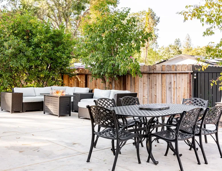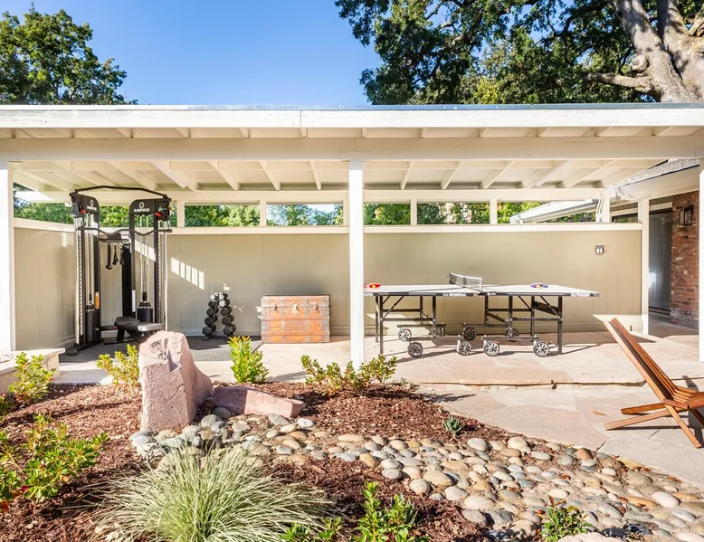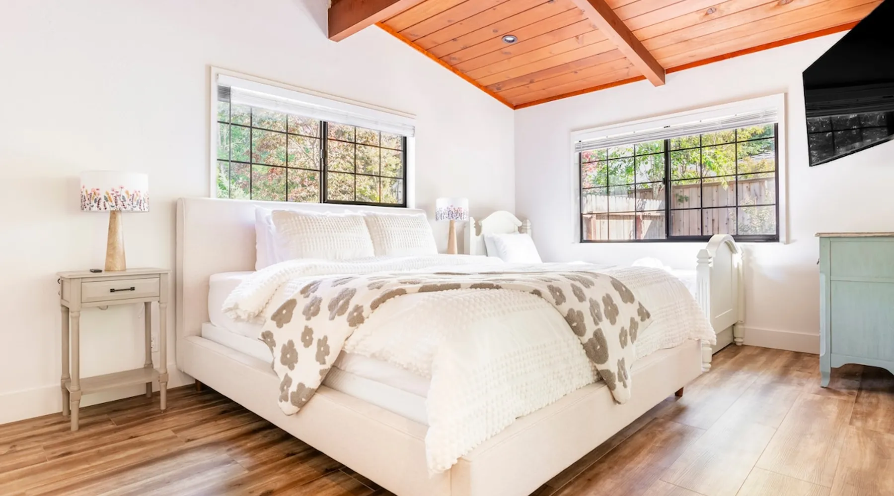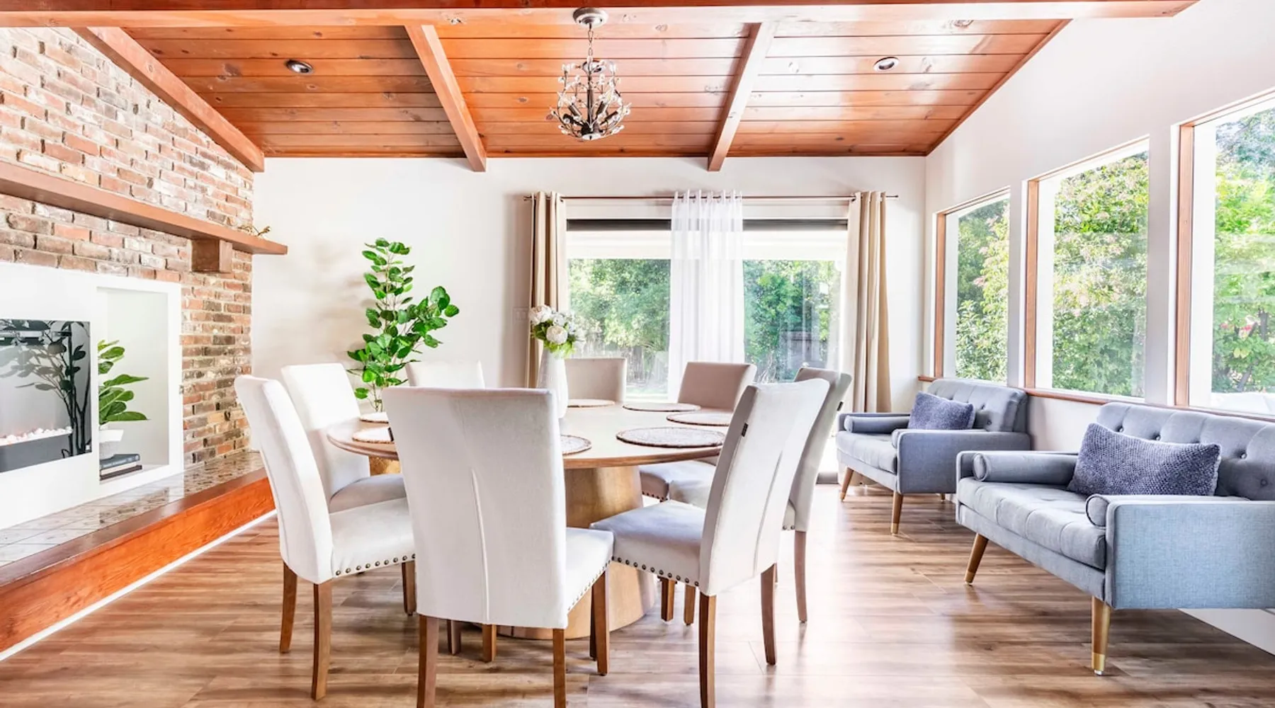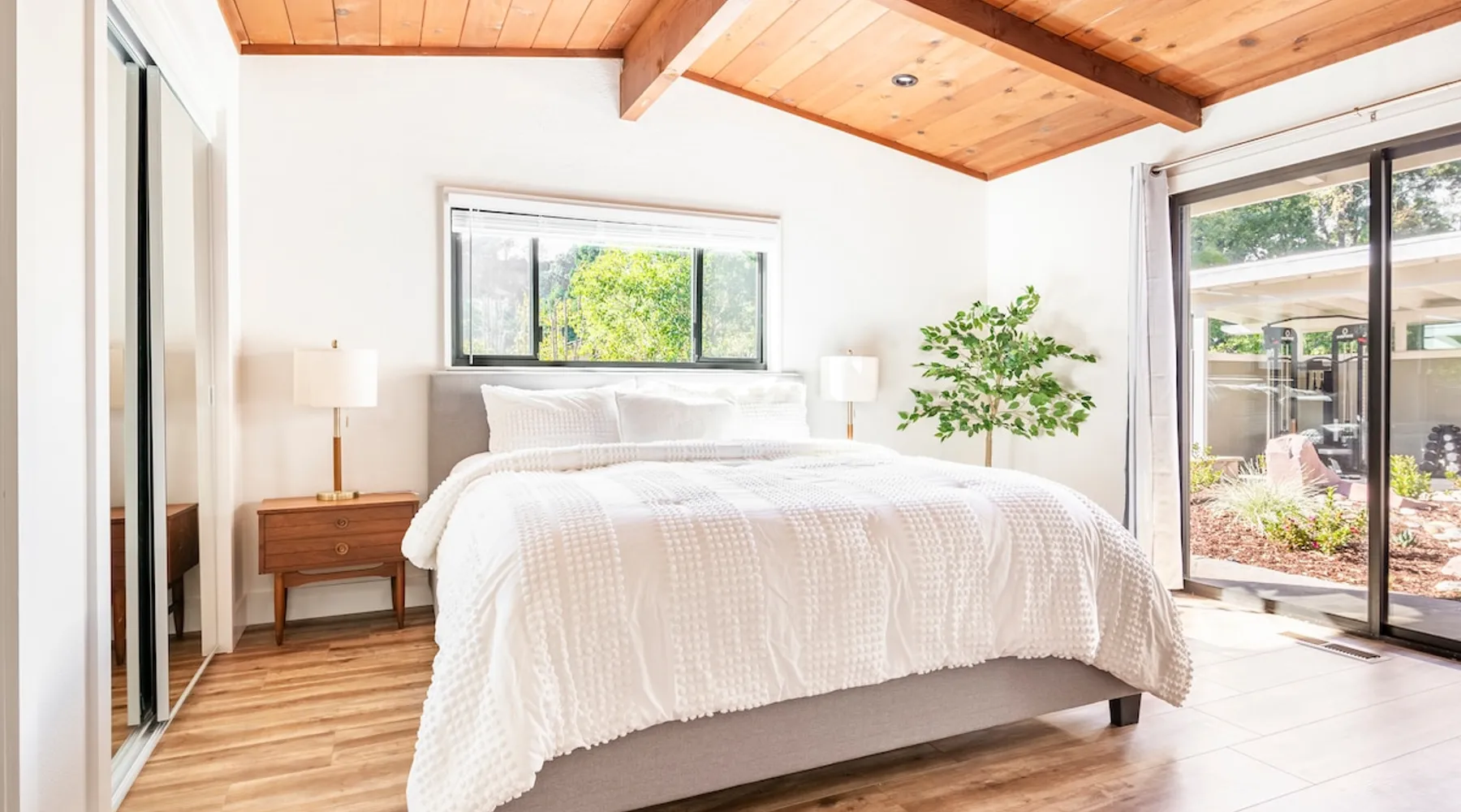 Welcome to your dream retreat nestled among a beautiful and safe setting. This enchanting 3-bedroom, 2-bath house is a haven of relaxation and comfort, perfect for creating lasting memories with your family and friends. Tucked away in a peaceful creek-side setting, this house boasts an Austrian chalet-inspired design with exquisite wood ceilings that lend an air of rustic elegance. Walking distance to downtown Walnut Creek. Close to San Francisco, Napa Valley and other Bay Area destinations. The space Your Chalet House is secluded and safe among large trees and beautiful landscaping. There is a heritage valley oak tree that is over 250 years old with a huge canopy used by squirrels, owls, doves and hawks in the backyard. There is a tranquil creek that flows on the property where you can see ducks, fish, crawdads, egrets, a resident hawk and an occasional river otter. Many outdoor areas to escape to and outdoor dining. Message us if you have any questions! Here are some of the highlights for you: -Views of the creek -2 Fire Pit Patios -Bocce Ball Court -Lounge Chair Brick Patio -Sun Umbrellas -Ping Pong Table -Gym -Cornhole -Garage you can park your car in or store items -Driveway parking for up to three cars (with one in the garage, if you need more just let us know) -Pak-n-Play -High Chair -There is nothing to do to check out, just grab your belongings :-) -Add us to your wishlist❤️ The house has an Austrian chalet design with open-beamed wood ceilings, wood paneling, rustic brick walls and wood floors. You will have: -A Gourmet kitchen -Elaborate Coffee and Tea bar with Nespresso, French press and a regular coffee maker (sugar provided) -Wine and beverage fridge -Filtered water in fridge -Laundry room with detergent for guests -Dedicated work area -High Speed Internet -Electric fire place and a candle lit fire place -Dimmable lights -Board games and puzzles -Record player -Large Smart TVs The gourmet kitchen has everything you need to make a perfect meal with your family and friends. There are all new appliances that include a beverage center in the fridge, an air fryer in the oven and a separate wine and beverage refrigerator. There is also a fun coffee and tea bar that has a Nespresso, French press and regular drip coffee makers, an electric tea kettle and various coffees and teas. We also provide sugars and cream. The kitchen has a large island and chairs to gather around and enjoy a meal, company, games or the view to the serene backyard. You will have a large beautiful dining room with an electric fireplace and dimmable chandelier so you can set the ambiance of the room. Your dining room overlooks the creek patio and backyard. There are also board games and puzzles to enjoy. The “lodge room” has a huge fireplace with electric candles, wood ceiling and wood paneling on the walls, a large smart TV, a comfortable sofa, and a wall of windows that overlook the backyard. You will also enjoy the designated workspace, with vintage books, a record player, records and a mid-century reading chair. It is truly a creative space center! The chalet has three large bedrooms with comfortable king beds that have fine linens and a heavy comforter. Each bedroom has a smart TV and electrical outlets on the night stands to charge your devices. Your bedrooms have: -3 spacious bedrooms -3 King Beds -Smart TV's in each bedroom -Apple chargers and power stations on all the night stands - Dresser and full closet in each room - Luggage holders in each room -Yoga mats in each closet The bathrooms are stocked with shampoo, conditioner and body wash. There are also simple toiletries and a hair dryer in each vanity in case you forget anything. You will have a large backyard along the creek with four different patios. One patio has lounge chairs to bask in the sun or just to relax on. The next patio has a quaint sitting area on flagstone next to the ping pong table and an outdoor gym. Another patio is under the massive oak tree and has an L shaped sofa, fire pit table and dining table. The last patio has Adirondack chairs sitting just beneath the canopy of the majestic oak tree next to the creek. There are so many places for you to enjoy the serenity of the property. There is also a large side yard to enjoy bocce ball or a game of corn hole game. There are benches to sit on if you just want to watch the action of the games or take in the beautiful surroundings. We love dogs! Our pet policy allows for up to two dogs ($195 fee), you must pick up after your dogs, have your dogs on leash outside the front of the Airbnb and do not leave dogs alone in Airbnb. The entire back yard is fenced in. Dogs not sleeping over but coming for a visit is allowed ($100 fee). Guest access The Chalet House has its own private garage and entrance. There is a keypad to gain entry into the house and a key pad to gain entry to the garage. You do share the driveway. Other things to note There is a tiny home, also available on Airbnb, on the same property. We designed both properties to maximize privacy. The tiny home has its own entrance, patio, garden area and hammock, which is exclusive to guests staying in the tiny home. You can visit the tiny home at: https://airbnb.com/h/thecreekretreattinyhome The chalet house is on a year round creek, which is home to ducks, hummingbirds, butterflies, fish, crawdads, French clams, egrets and a resident Coopers hawk. Although rare, we have seen river otters going by. There are Wood Duck nesting boxes along the creek. Wood Ducks are very skittish around humans so you have to be very quiet to catch a glimpse of them. Male wood ducks are beautiful. It's also unique that Wood Duck nest in this area every year and have their baby ducks here. The Mallard Ducks do the same but they nest on the banks of the creek. We are walking distance to downtown Walnut Creek. Walnut Creek is known for excellent shopping, terrific restaurants, entertainment (both a movie theater and a live theater), its parks and 