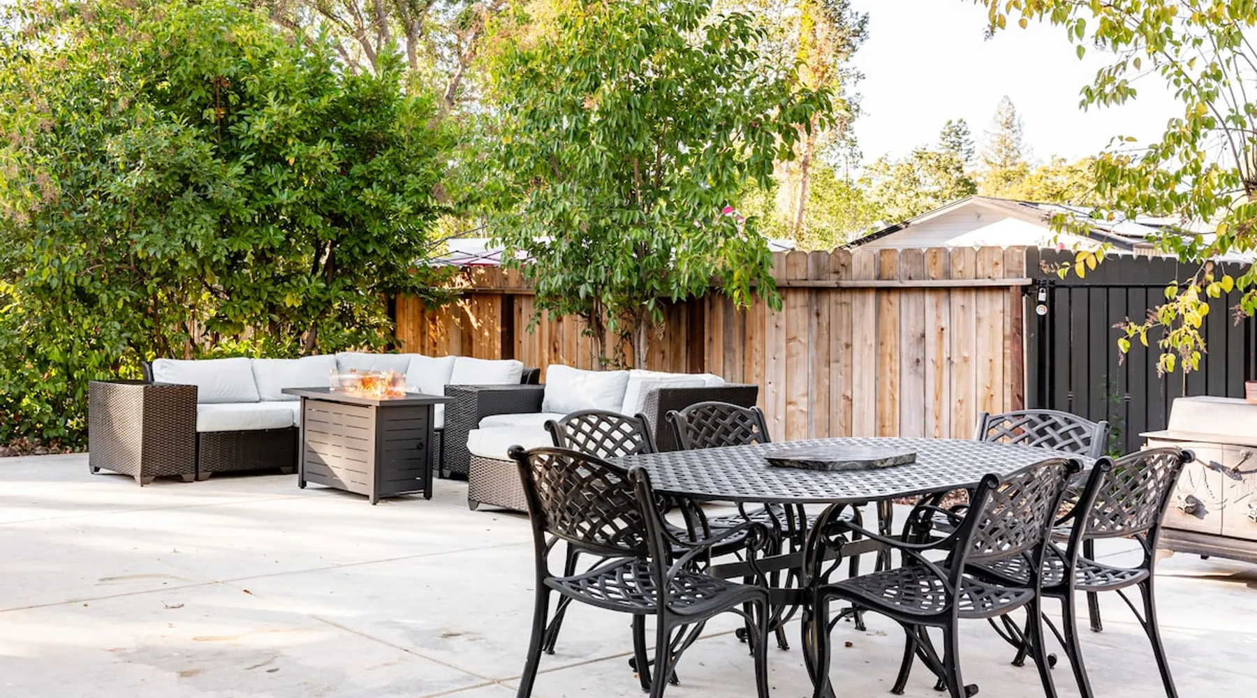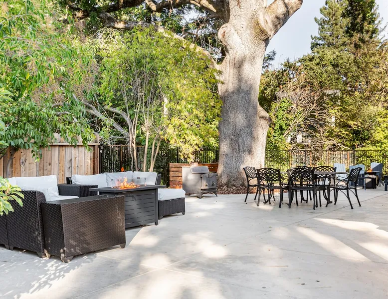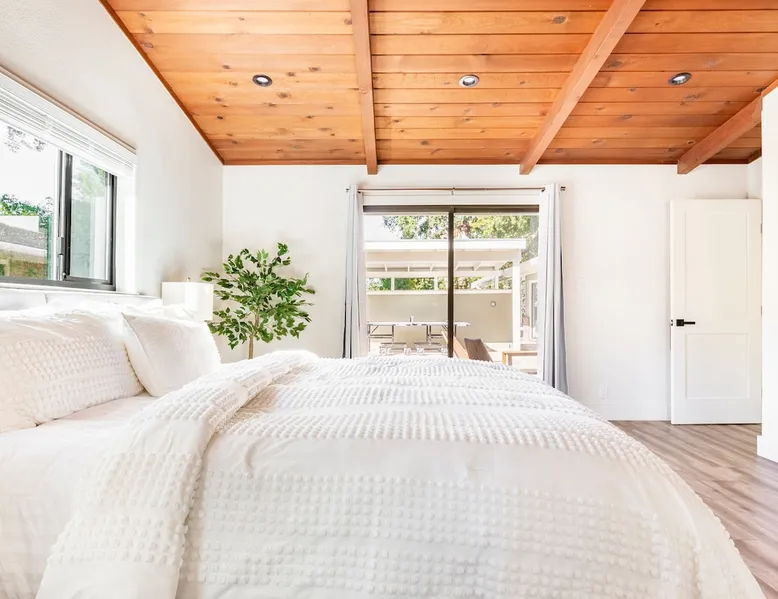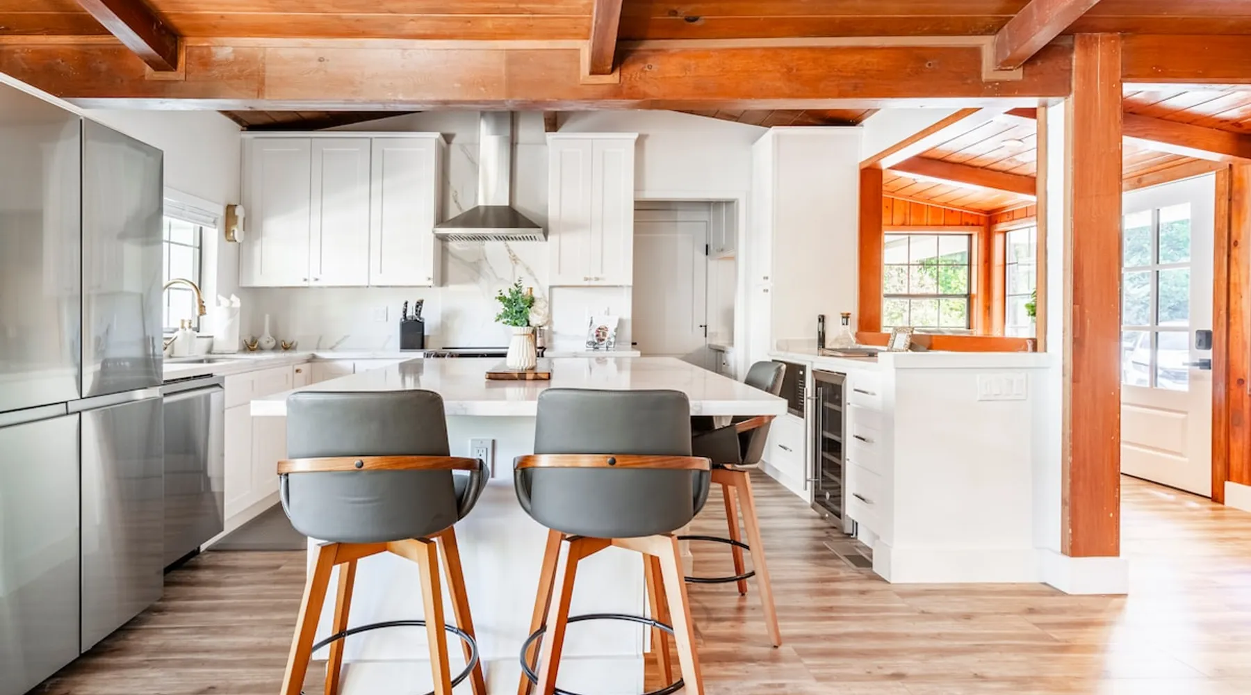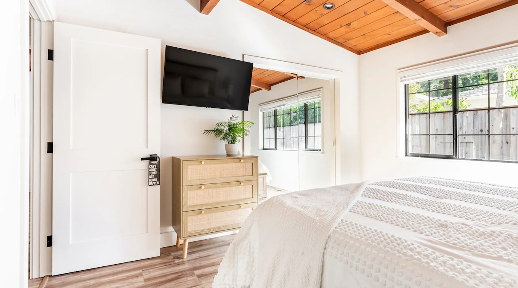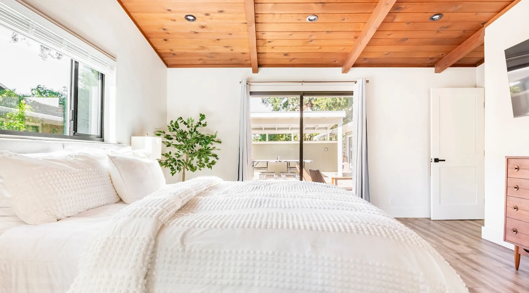 Welcome to your dream retreat nestled among a beautiful and safe setting. This enchanting 3-bedroom, 2-bath house is a haven of relaxation and comfort, perfect for creating lasting memories with your family and friends. Tucked away in a peaceful creek-side setting, this house boasts an Austrian chalet-inspired design with exquisite wood ceilings that lend an air of rustic elegance. Walking distance to downtown Walnut Creek. Close to San Francisco, Napa Valley and other Bay Area destinations. The space Your Chalet House is secluded and safe among large trees and beautiful landscaping. There is a heritage valley oak tree that is over 250 years old with a huge canopy used by squirrels, owls, doves and hawks in the backyard. There is a tranquil creek that flows on the property where you can see ducks, fish, crawdads, egrets, a resident hawk and an occasional river otter. Many outdoor areas to escape to and outdoor dining. Message us if you have any questions! Here are some of the highlights for you: -Views of the creek -2 Fire Pit Patios -Bocce Ball Court -Lounge Chair Brick Patio -Sun Umbrellas -Ping Pong Table -Gym -Cornhole -Garage you can park your car in or store items -Driveway parking for up to three cars (with one in the garage, if you need more just let us know) -Pak-n-Play -High Chair -There is nothing to do to check out, just grab your belongings :-) -Add us to your wishlist❤️ The house has an Austrian chalet design with open-beamed wood ceilings, wood paneling, rustic brick walls and wood floors. You will have: -A Gourmet kitchen -Elaborate Coffee and Tea bar with Nespresso, French press and a regular coffee maker (sugar provided) -Wine and beverage fridge -Filtered water in fridge -Laundry room with detergent for guests -Dedicated work area -High Speed Internet -Electric fire place and a candle lit fire place -Dimmable lights -Board games and puzzles -Record player -Large Smart TVs The gourmet kitchen has everything you need to make a perfect meal with your family and friends. There are all new appliances that include a beverage center in the fridge, an air fryer in the oven and a separate wine and beverage refrigerator. There is also a fun coffee and tea bar that has a Nespresso, French press and regular drip coffee makers, an electric tea kettle and various coffees and teas. We also provide sugars and cream. The kitchen has a large island and chairs to gather around and enjoy a meal, company, games or the view to the serene backyard. You will have a large beautiful dining room with an electric fireplace and dimmable chandelier so you can set the ambiance of the room. Your dining room overlooks the creek patio and backyard. There are also board games and puzzles to enjoy. The “lodge room” has a huge fireplace with electric candles, wood ceiling and wood paneling on the walls, a large smart TV, a comfortable sofa, and a wall of windows that overlook the backyard. You will also enjoy the designated workspace, with vintage books, a record player, records and a mid-century reading chair. It is truly a creative space center! The chalet has three large bedrooms with comfortable king beds that have fine linens and a heavy comforter. Each bedroom has a smart TV and electrical outlets on the night stands to charge your devices. Your bedrooms have: -3 spacious bedrooms -3 King Beds -Smart TV's in each bedroom -Apple chargers and power stations on all the night stands - Dresser and full closet in each room - Luggage holders in each room -Yoga mats in each closet The bathrooms are stocked with shampoo, conditioner and body wash. There are also simple toiletries and a hair dryer in each vanity in case you forget anything. You will have a large backyard along the creek with four different patios. One patio has lounge chairs to bask in the sun or just to relax on. The next patio has a quaint sitting area on flagstone next to the ping pong table and an outdoor gym. Another patio is under the massive oak tree and has an L shaped sofa, fire pit table and dining table. The last patio has Adirondack chairs sitting just beneath the canopy of the majestic oak tree next to the creek. There are so many places for you to enjoy the serenity of the property. There is also a large side yard to enjoy bocce ball or a game of corn hole game. There are benches to sit on if you just want to watch the action of the games or take in the beautiful surroundings. We love dogs! Our pet policy allows for up to two dogs ($195 fee), you must pick up after your dogs, have your dogs on leash outside the front of the Airbnb and do not leave dogs alone in Airbnb. The entire back yard is fenced in. Dogs not sleeping over but coming for a visit is allowed ($100 fee). Guest access The Chalet House has its own private garage and entrance. There is a keypad to gain entry into the house and a key pad to gain entry to the garage. You do share the driveway. Other things to note There is a tiny home, also available on Airbnb, on the same property. We designed both properties to maximize privacy. The tiny home has its own entrance, patio, garden area and hammock, which is exclusive to guests staying in the tiny home. You can visit the tiny home at: https://airbnb.com/h/thecreekretreattinyhome The chalet house is on a year round creek, which is home to ducks, hummingbirds, butterflies, fish, crawdads, French clams, egrets and a resident Coopers hawk. Although rare, we have seen river otters going by. There are Wood Duck nesting boxes along the creek. Wood Ducks are very skittish around humans so you have to be very quiet to catch a glimpse of them. Male wood ducks are beautiful. It's also unique that Wood Duck nest in this area every year and have their baby ducks here. The Mallard Ducks do the same but they nest on the banks of the creek. We are walking distance to downtown Walnut Creek. Walnut Creek is known for excellent shopping, terrific restaurants, entertainment (both a movie theater and a live theater), its parks and 