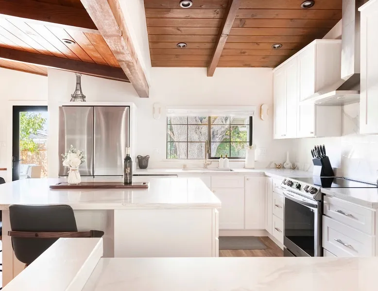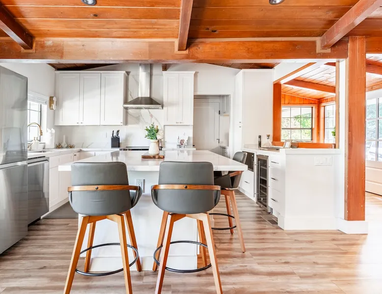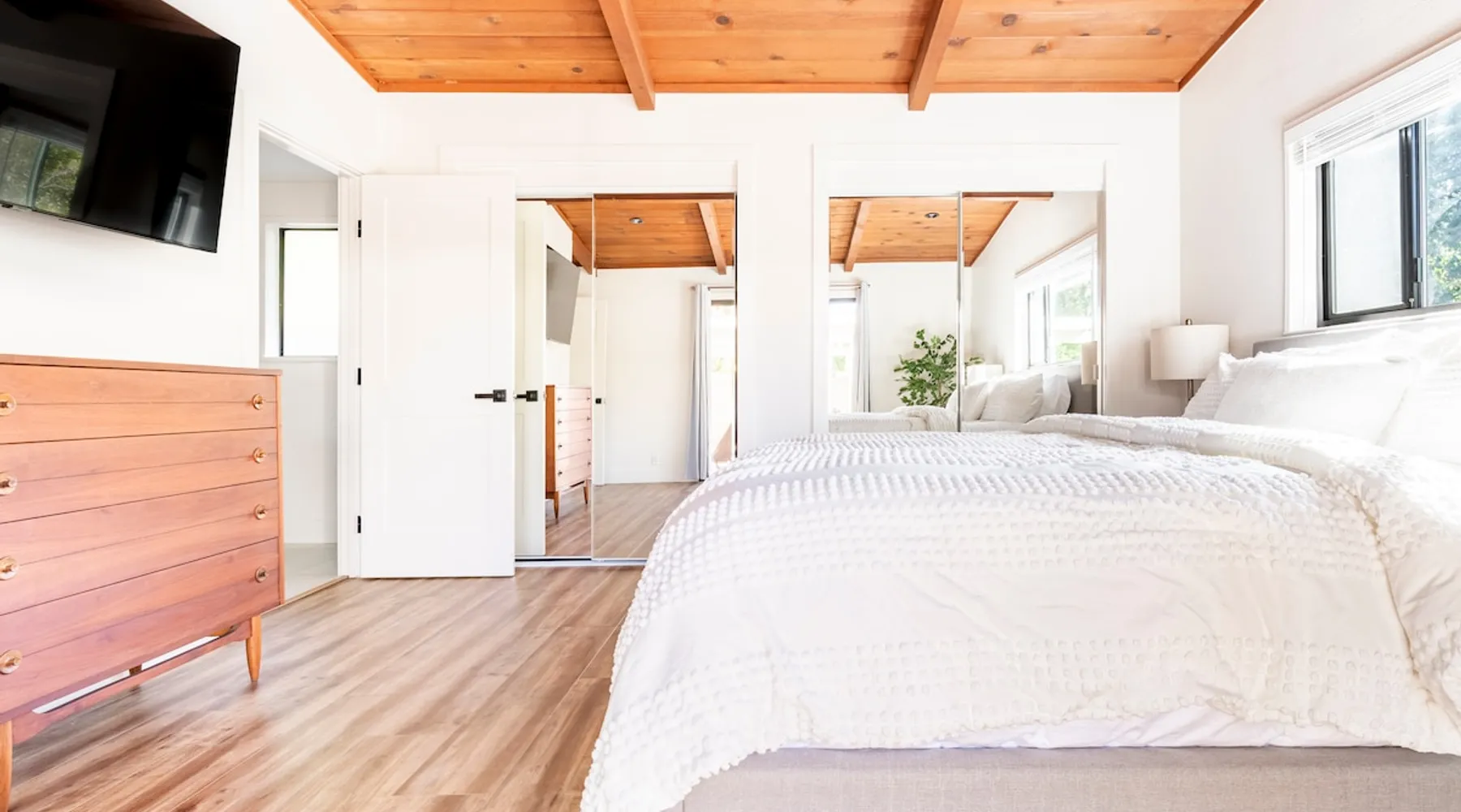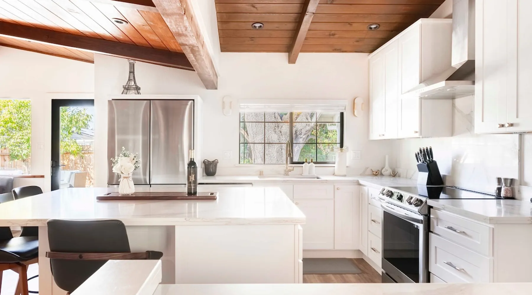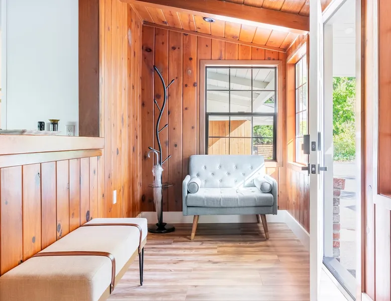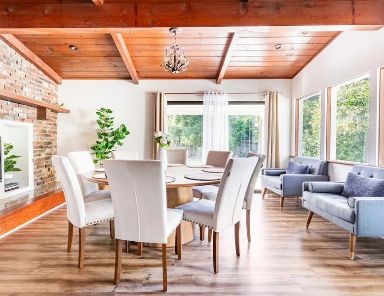 Welcome to your dream retreat nestled among a beautiful and safe setting. This enchanting 3-bedroom, 2-bath house is a haven of relaxation and comfort, perfect for creating lasting memories with your family and friends. Tucked away in a peaceful creek-side setting, this house boasts an Austrian chalet-inspired design with exquisite wood ceilings that lend an air of rustic elegance. Walking distance to downtown Walnut Creek. Close to San Francisco, Napa Valley and other Bay Area destinations. The space Your Chalet House is secluded and safe among large trees and beautiful landscaping. There is a heritage valley oak tree that is over 250 years old with a huge canopy used by squirrels, owls, doves and hawks in the backyard. There is a tranquil creek that flows on the property where you can see ducks, fish, crawdads, egrets, a resident hawk and an occasional river otter. Many outdoor areas to escape to and outdoor dining. Message us if you have any questions! Here are some of the highlights for you: -Views of the creek -2 Fire Pit Patios -Bocce Ball Court -Lounge Chair Brick Patio -Sun Umbrellas -Ping Pong Table -Gym -Cornhole -Garage you can park your car in or store items -Driveway parking for up to three cars (with one in the garage, if you need more just let us know) -Pak-n-Play -High Chair -There is nothing to do to check out, just grab your belongings :-) -Add us to your wishlist❤️ The house has an Austrian chalet design with open-beamed wood ceilings, wood paneling, rustic brick walls and wood floors. You will have: -A Gourmet kitchen -Elaborate Coffee and Tea bar with Nespresso, French press and a regular coffee maker (sugar provided) -Wine and beverage fridge -Filtered water in fridge -Laundry room with detergent for guests -Dedicated work area -High Speed Internet -Electric fire place and a candle lit fire place -Dimmable lights -Board games and puzzles -Record player -Large Smart TVs The gourmet kitchen has everything you need to make a perfect meal with your family and friends. There are all new appliances that include a beverage center in the fridge, an air fryer in the oven and a separate wine and beverage refrigerator. There is also a fun coffee and tea bar that has a Nespresso, French press and regular drip coffee makers, an electric tea kettle and various coffees and teas. We also provide sugars and cream. The kitchen has a large island and chairs to gather around and enjoy a meal, company, games or the view to the serene backyard. You will have a large beautiful dining room with an electric fireplace and dimmable chandelier so you can set the ambiance of the room. Your dining room overlooks the creek patio and backyard. There are also board games and puzzles to enjoy. The “lodge room” has a huge fireplace with electric candles, wood ceiling and wood paneling on the walls, a large smart TV, a comfortable sofa, and a wall of windows that overlook the backyard. You will also enjoy the designated workspace, with vintage books, a record player, records and a mid-century reading chair. It is truly a creative space center! The chalet has three large bedrooms with comfortable king beds that have fine linens and a heavy comforter. Each bedroom has a smart TV and electrical outlets on the night stands to charge your devices. Your bedrooms have: -3 spacious bedrooms -3 King Beds -Smart TV's in each bedroom -Apple chargers and power stations on all the night stands - Dresser and full closet in each room - Luggage holders in each room -Yoga mats in each closet The bathrooms are stocked with shampoo, conditioner and body wash. There are also simple toiletries and a hair dryer in each vanity in case you forget anything. You will have a large backyard along the creek with four different patios. One patio has lounge chairs to bask in the sun or just to relax on. The next patio has a quaint sitting area on flagstone next to the ping pong table and an outdoor gym. Another patio is under the massive oak tree and has an L shaped sofa, fire pit table and dining table. The last patio has Adirondack chairs sitting just beneath the canopy of the majestic oak tree next to the creek. There are so many places for you to enjoy the serenity of the property. There is also a large side yard to enjoy bocce ball or a game of corn hole game. There are benches to sit on if you just want to watch the action of the games or take in the beautiful surroundings. We love dogs! Our pet policy allows for up to two dogs ($195 fee), you must pick up after your dogs, have your dogs on leash outside the front of the Airbnb and do not leave dogs alone in Airbnb. The entire back yard is fenced in. Dogs not sleeping over but coming for a visit is allowed ($100 fee). Guest access The Chalet House has its own private garage and entrance. There is a keypad to gain entry into the house and a key pad to gain entry to the garage. You do share the driveway. Other things to note There is a tiny home, also available on Airbnb, on the same property. We designed both properties to maximize privacy. The tiny home has its own entrance, patio, garden area and hammock, which is exclusive to guests staying in the tiny home. You can visit the tiny home at: https://airbnb.com/h/thecreekretreattinyhome The chalet house is on a year round creek, which is home to ducks, hummingbirds, butterflies, fish, crawdads, French clams, egrets and a resident Coopers hawk. Although rare, we have seen river otters going by. There are Wood Duck nesting boxes along the creek. Wood Ducks are very skittish around humans so you have to be very quiet to catch a glimpse of them. Male wood ducks are beautiful. It's also unique that Wood Duck nest in this area every year and have their baby ducks here. The Mallard Ducks do the same but they nest on the banks of the creek. We are walking distance to downtown Walnut Creek. Walnut Creek is known for excellent shopping, terrific restaurants, entertainment (both a movie theater and a live theater), its parks and 