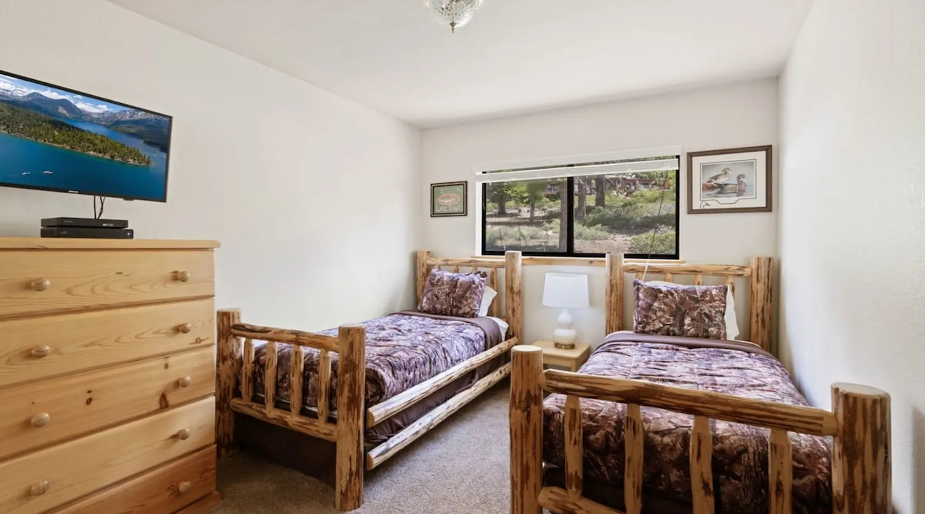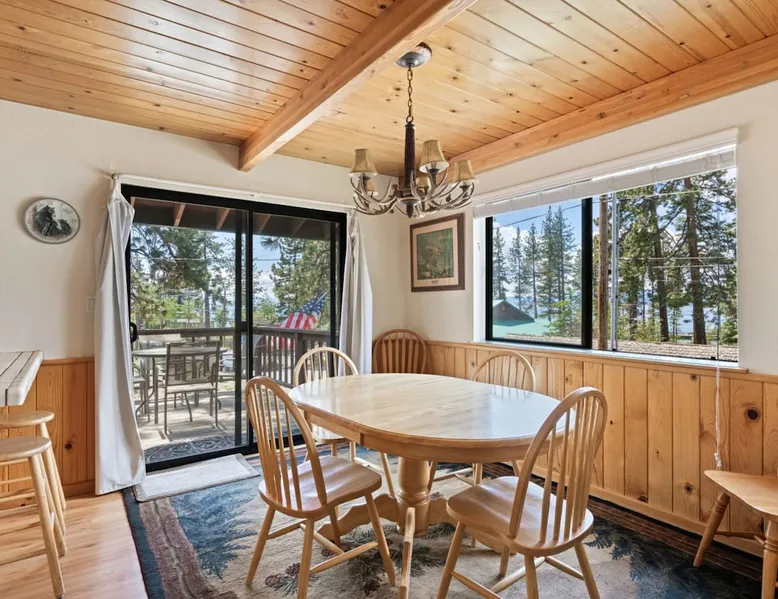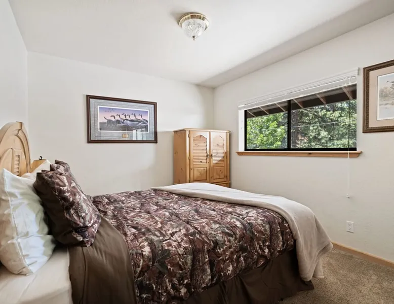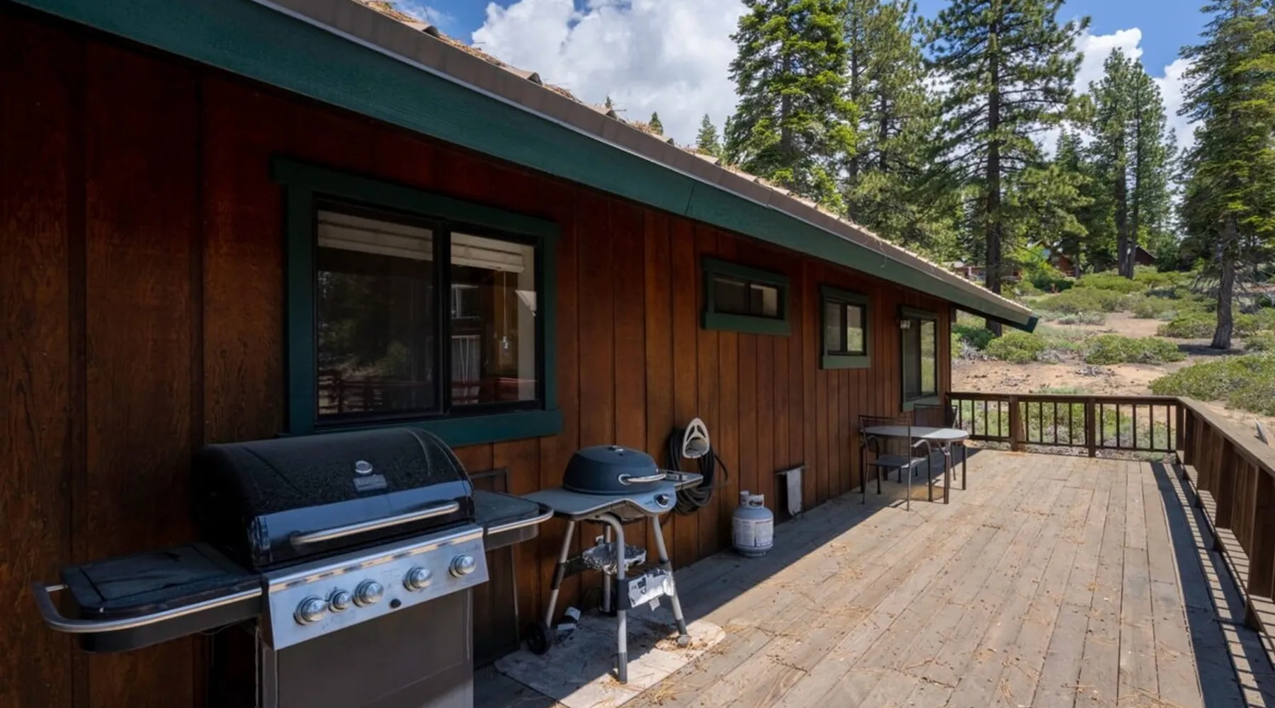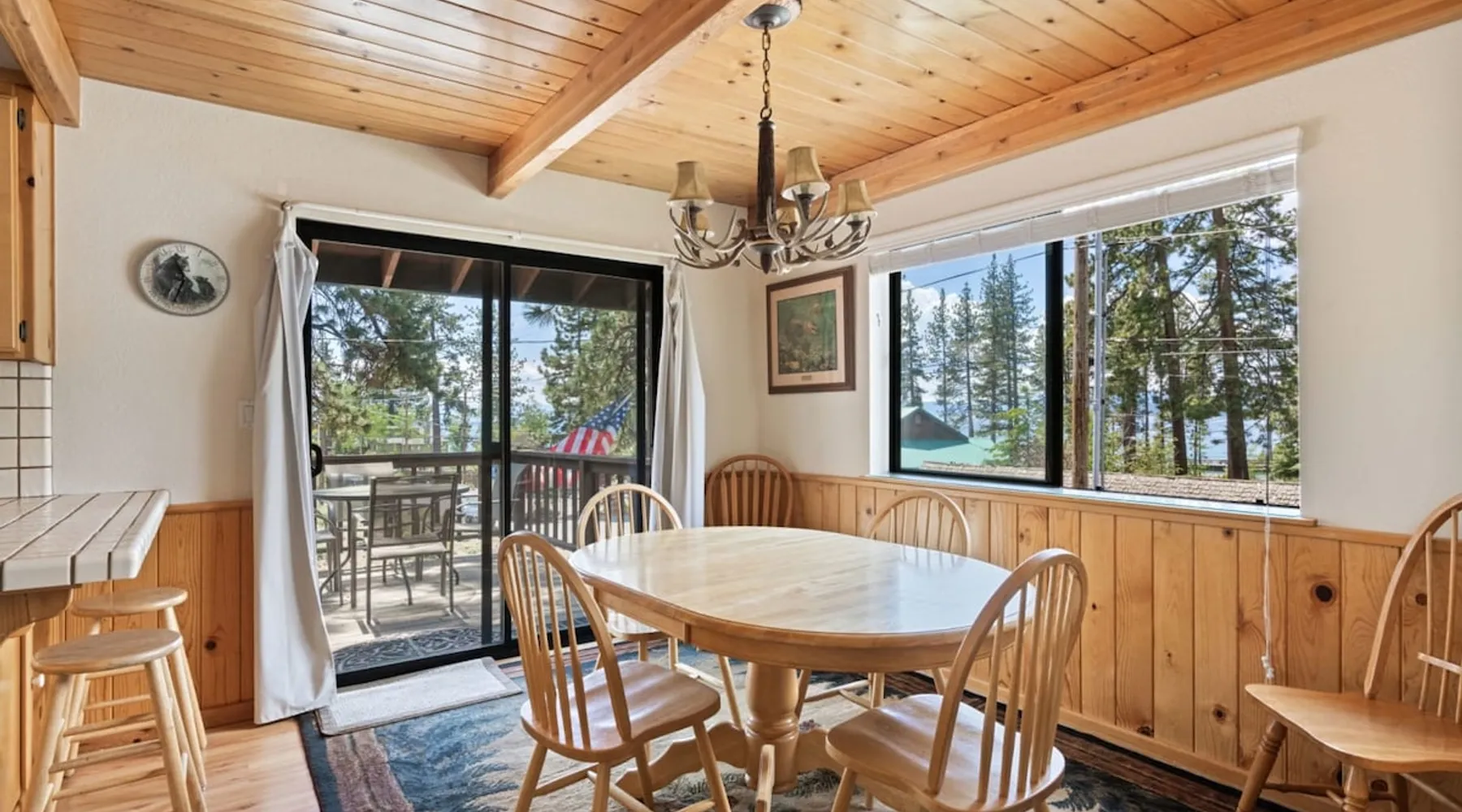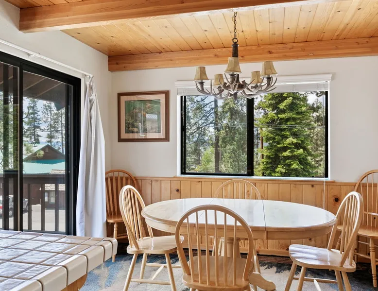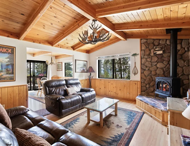 Escape to this classic Tahoe home, situated just a minute away from the sandy beaches of Lake Tahoe and within a 20-minute drive of three major ski areas. Surrounded by trees, this 3-bedroom home boasts a cozy mountain cabin atmosphere, offering glimpses of Lake Tahoe through the trees. Inside, you'll find a spacious light-filled main living area, comfortable bedrooms, and a generous deck with views of the lake. This home is the perfect launchpad for year-round fun in Tahoe. The space Location perks: Sandy Beach (0.2 miles), Waterman’s Landing (1.0 mile), Patton Beach (1.6 miles), Kings Beach (2.0 miles), Northstar California Resort (9.3 miles) Interior: — Kitchen (drip coffee maker, cookware, tableware) — Smart TV (40”) with streaming — Wood-burning fireplace (wood not provided) — Washer and dryer (in garage) — Free WiFi (speed not specified) — Central heating, no A/C (fans available) — 1,248 sq. ft. Exterior: — Deck with outdoor dining (6-person table) — Gas grill — Peekaboo lake views through trees — On-site parking for 6 vehicles (2 in garage, 4 in driveway) — Two kayaks available for use (paddles and life vests included) The home includes a second full bathroom for shared use, which features a single-sink vanity and a shower/bathtub combo. You will also find a washer and dryer located in the garage, so you can keep up with any laundry needs during your stay. STR License Number: STR23-7724 Max Occupancy: 6 Parking Info: There are 2 spaces in the garage, 4 spaces on the driveway. Guest access Guests will have access to the entire home, a large outdoor balcony, and parking with 2 spaces in the garage and 4 spaces on the driveway in front of the home. Other things to note Please note that, like most homes in the area, this home does not have A/C. Please keep in mind that if you plan to ski, you are responsible for verifying the ski resorts' opening and closing dates. Charcoal grills are strictly forbidden in this county and will result in a $1,500 citation if used. 4-wheel drive or 2-wheel drive tires with snow chains may be necessary for safe travel to this property, even if it hasn’t snowed in a few days.