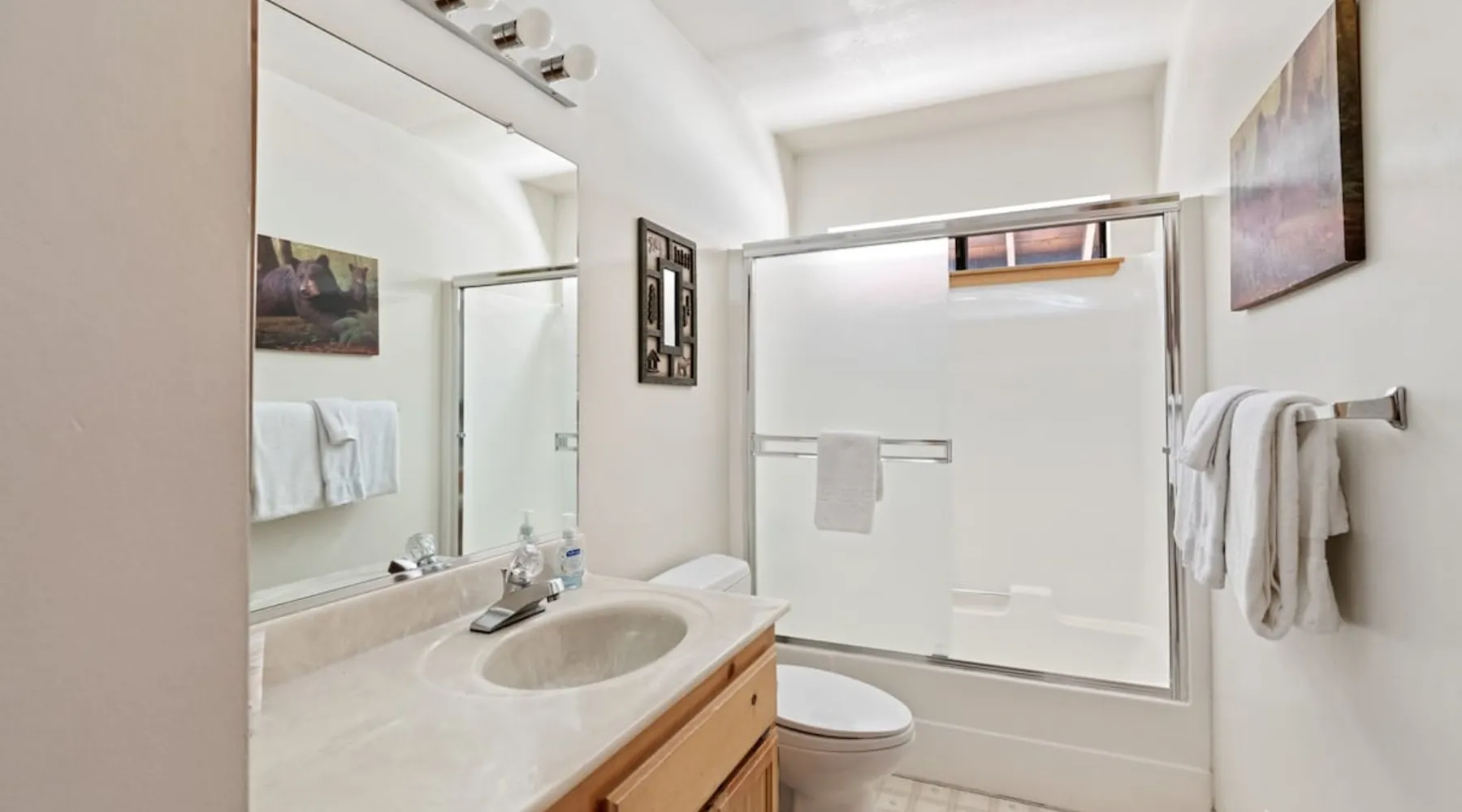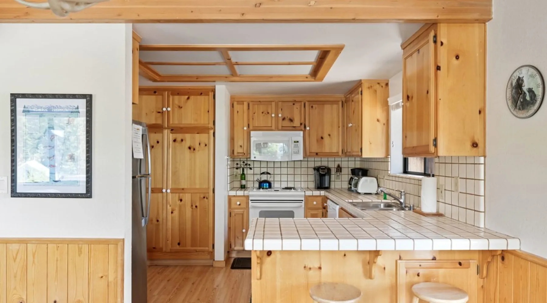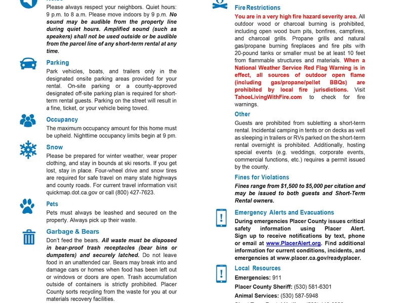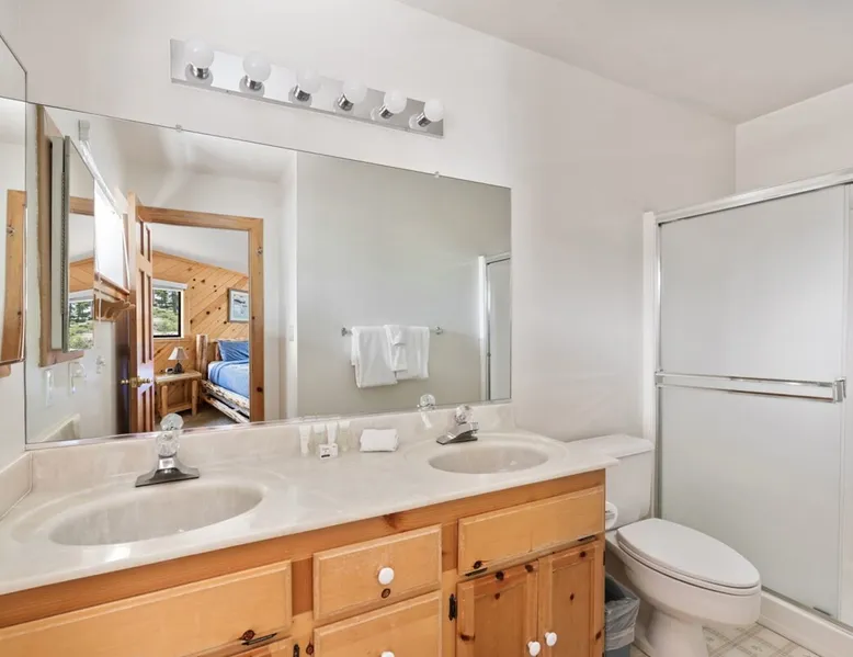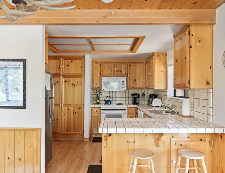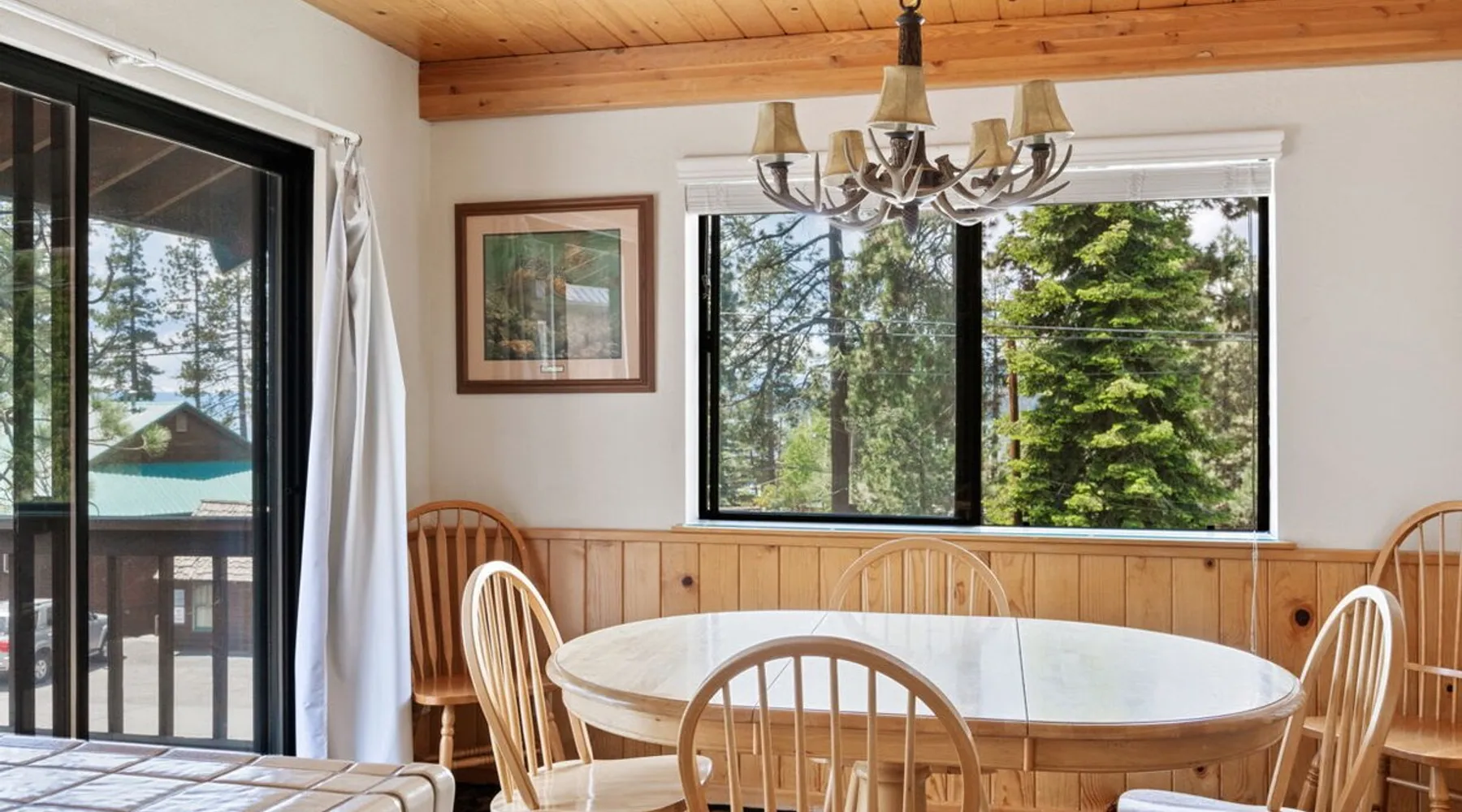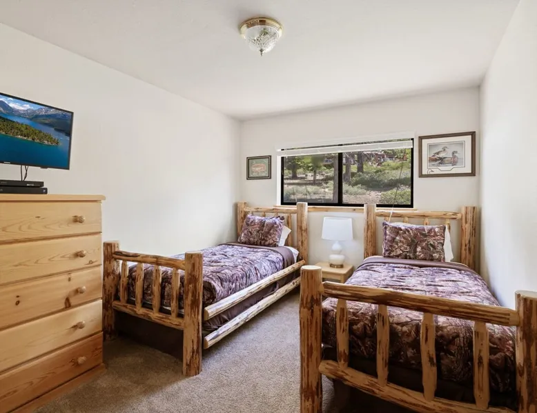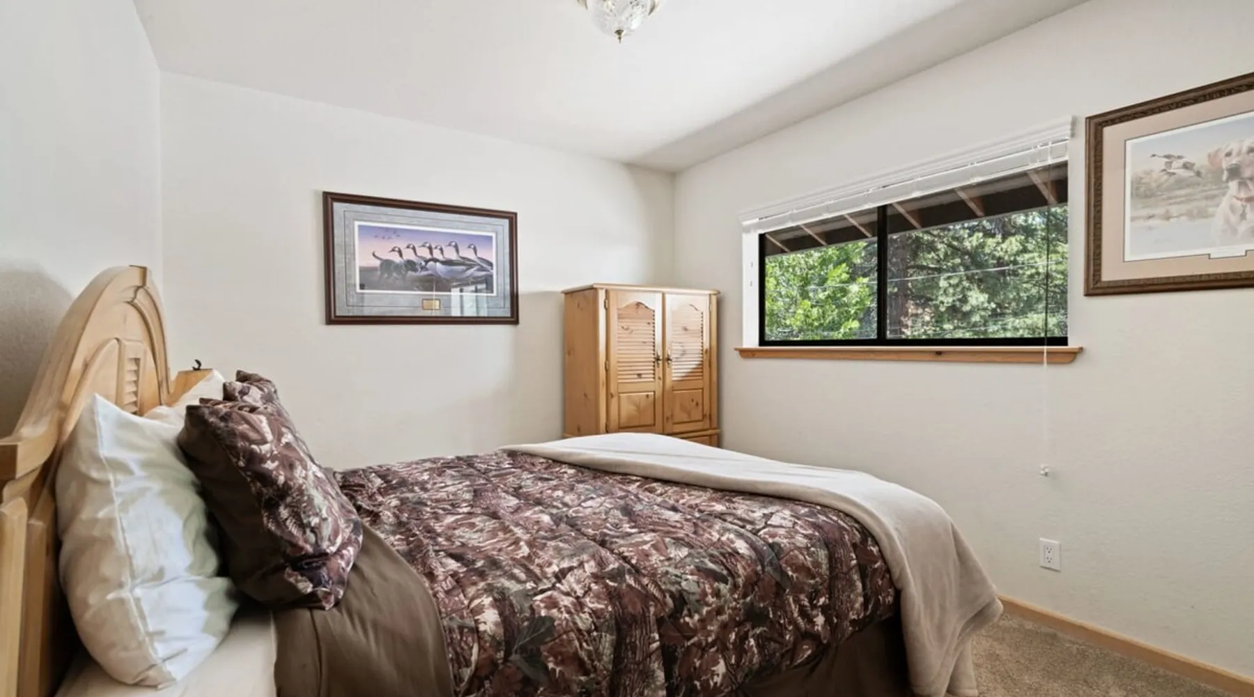 Escape to this classic Tahoe home, situated just a minute away from the sandy beaches of Lake Tahoe and within a 20-minute drive of three major ski areas. Surrounded by trees, this 3-bedroom home boasts a cozy mountain cabin atmosphere, offering glimpses of Lake Tahoe through the trees. Inside, you'll find a spacious light-filled main living area, comfortable bedrooms, and a generous deck with views of the lake. This home is the perfect launchpad for year-round fun in Tahoe. The space Location perks: Sandy Beach (0.2 miles), Waterman’s Landing (1.0 mile), Patton Beach (1.6 miles), Kings Beach (2.0 miles), Northstar California Resort (9.3 miles) Interior: — Kitchen (drip coffee maker, cookware, tableware) — Smart TV (40”) with streaming — Wood-burning fireplace (wood not provided) — Washer and dryer (in garage) — Free WiFi (speed not specified) — Central heating, no A/C (fans available) — 1,248 sq. ft. Exterior: — Deck with outdoor dining (6-person table) — Gas grill — Peekaboo lake views through trees — On-site parking for 6 vehicles (2 in garage, 4 in driveway) — Two kayaks available for use (paddles and life vests included) The home includes a second full bathroom for shared use, which features a single-sink vanity and a shower/bathtub combo. You will also find a washer and dryer located in the garage, so you can keep up with any laundry needs during your stay. STR License Number: STR23-7724 Max Occupancy: 6 Parking Info: There are 2 spaces in the garage, 4 spaces on the driveway. Guest access Guests will have access to the entire home, a large outdoor balcony, and parking with 2 spaces in the garage and 4 spaces on the driveway in front of the home. Other things to note Please note that, like most homes in the area, this home does not have A/C. Please keep in mind that if you plan to ski, you are responsible for verifying the ski resorts' opening and closing dates. Charcoal grills are strictly forbidden in this county and will result in a $1,500 citation if used. 4-wheel drive or 2-wheel drive tires with snow chains may be necessary for safe travel to this property, even if it hasn’t snowed in a few days.