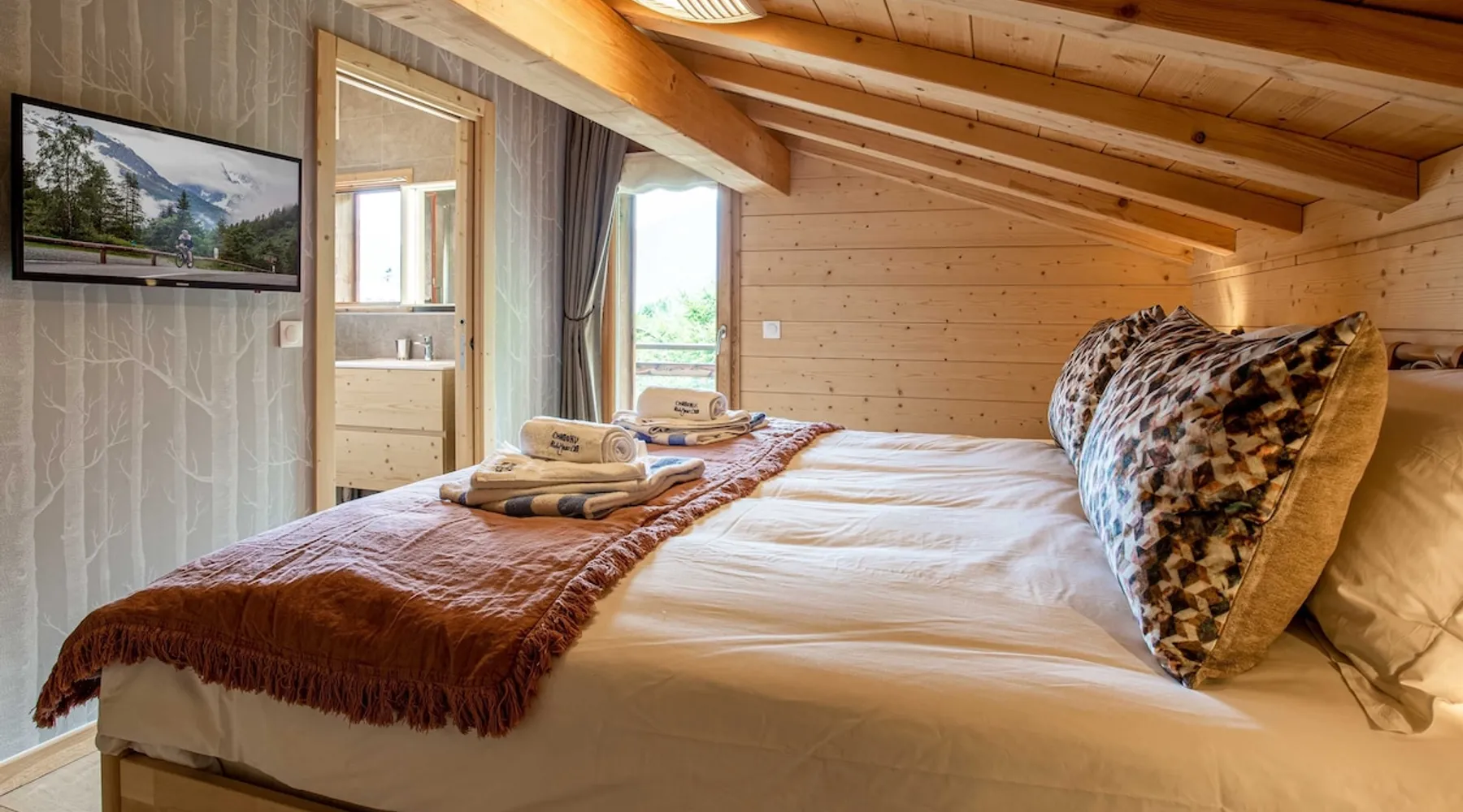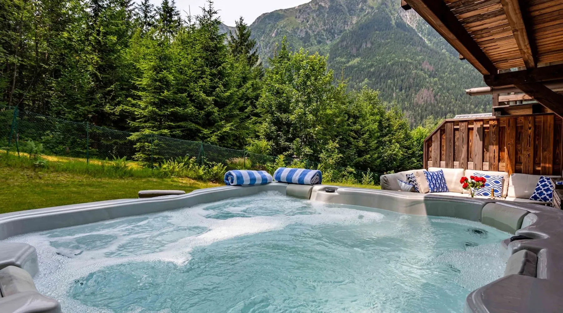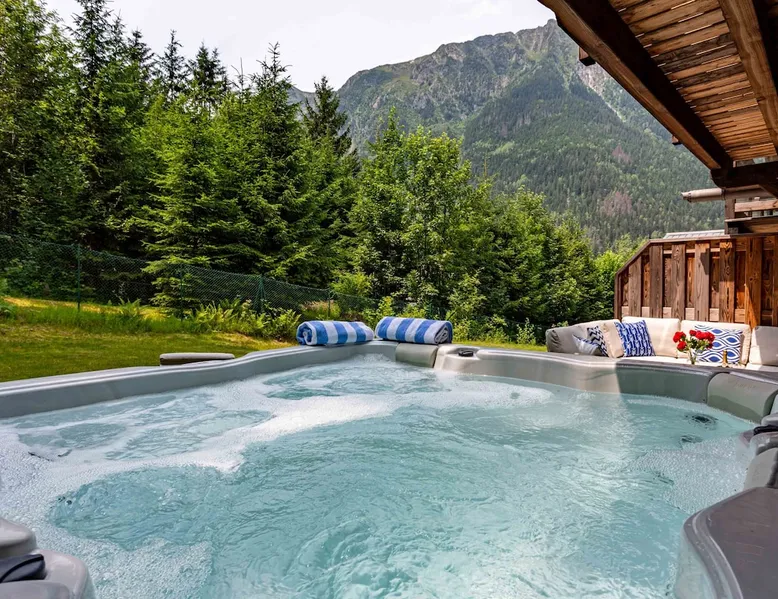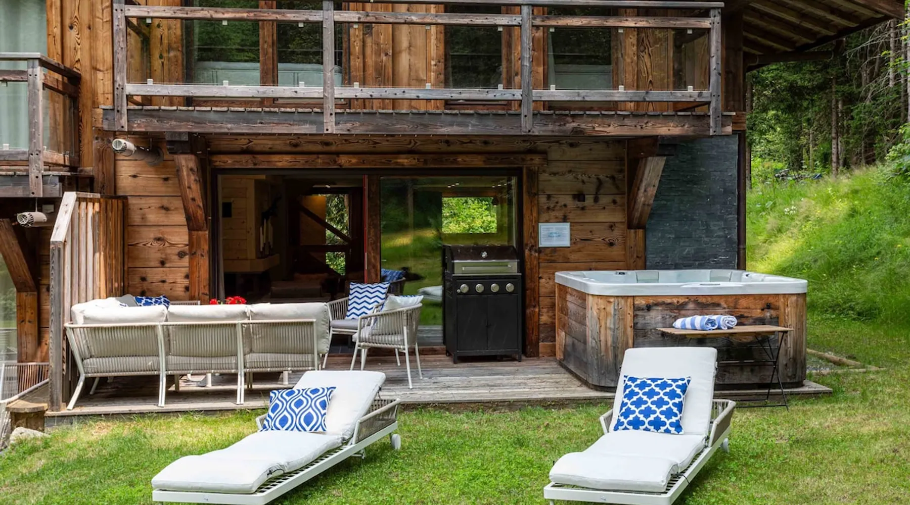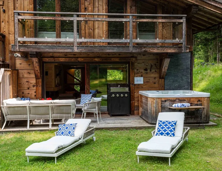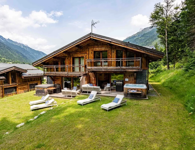 Chalet Bonnabelle is a beautiful Chamonix chalet with 4 bedrooms, 4 bathrooms, fireplace, large sunny garden, hot tub, sauna, parking and wifi. Located 10 mins walk from the center of Chamonix. Chalet Bonnabelle is a beautiful Chamonix chalet with 4 bedrooms, 4 bathrooms, a large sunny garden;, a jacuzzi, parking and wifi. It is locatedé àư 10 minutes from the foot of the center of Chamonix. See more info or click on 'Book online' The space Chalet Bonnabelle, is a charming Chamonix chalet nestled amidst the picturesque beauty of the French Alps. This newly built chalet offers an unforgettable holiday experience with its impeccable design and high-quality finishings. Located just 10 minutes' walk from the centre of Chamonix, this chalet provides a peaceful escape while still being conveniently close to everything Chamonix has to offer. With four beautifully appointed bedrooms, including two king ensuite bedrooms, one king bedroom with a private bathroom, and a cosy twin bedroom with its own private bathroom, Chalet Bonnabelle comfortably accommodates up to 8 guests. The chalet also features a fully equipped kitchen with modern appliances, including an oven, microwave, dishwasher, Nespresso coffee machine, and includes a separate wine fridge. A washing machine and dryer are provided for your convenience. Indulge in relaxation and wellness with the outdoor hot tub, on the sauna, perfect for unwinding after a day of outdoor adventures. The spacious garden offers a tranquil setting to enjoy the stunning surroundings, and the barbecue is ideal for outdoor dining and entertaining. Inside, the spacious living room with a fireplace provides a warm and inviting atmosphere, while the separate cosy TV room is perfect for those movie nights in. Chalet Bonnabelle provides the perfect base for exploring the wonders of Chamonix. Whether you're seeking thrilling outdoor activities, immersing yourself in the local culture, or simply enjoying the serenity of the mountains, this chalet offers an ideal starting point. Experience the beauty and comfort of Chalet Bonnabelle. Book your unforgettable holiday in Chamonix now and create cherished memories that will last a lifetime. Key Features 180 SQM Newly built in 2023 High-quality finishings 4 bedrooms: 2 king ensuite bedrooms, 1 king bedroom with private bathroom, 1 twin bedroom with private bathroom Fully equipped kitchen with oven, microwave, dishwasher, Nespresso coffee machine Fondue & Raclette Wine fridge Dining table seats 8 Outdoor hot tub Spacious garden with BBQ Comfortable outdoor sofa and armchairs Cosy TV room with smart TV Sauna TV's in king bedrooms Spacious living room with fireplace Washing machine Tumble Dryer Parking, 1 garage space and 1 outdoor space Registration Details 740560021471O