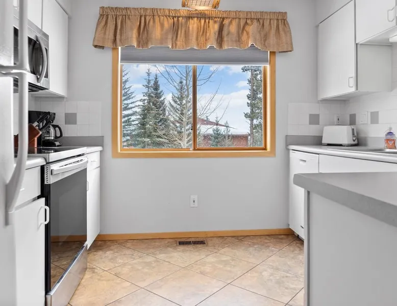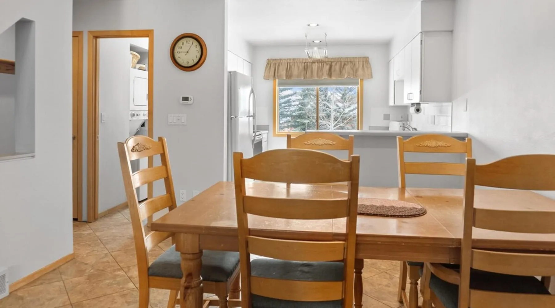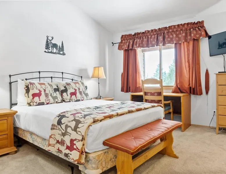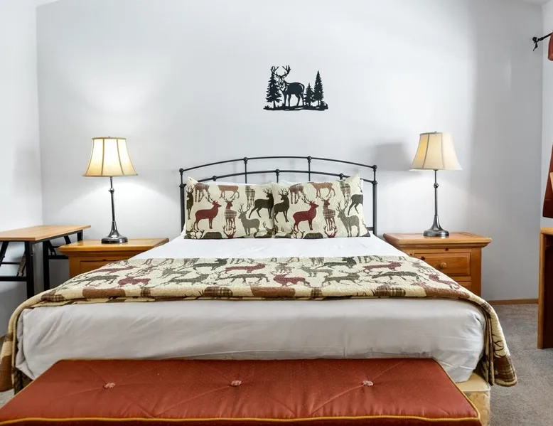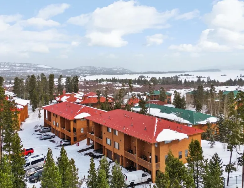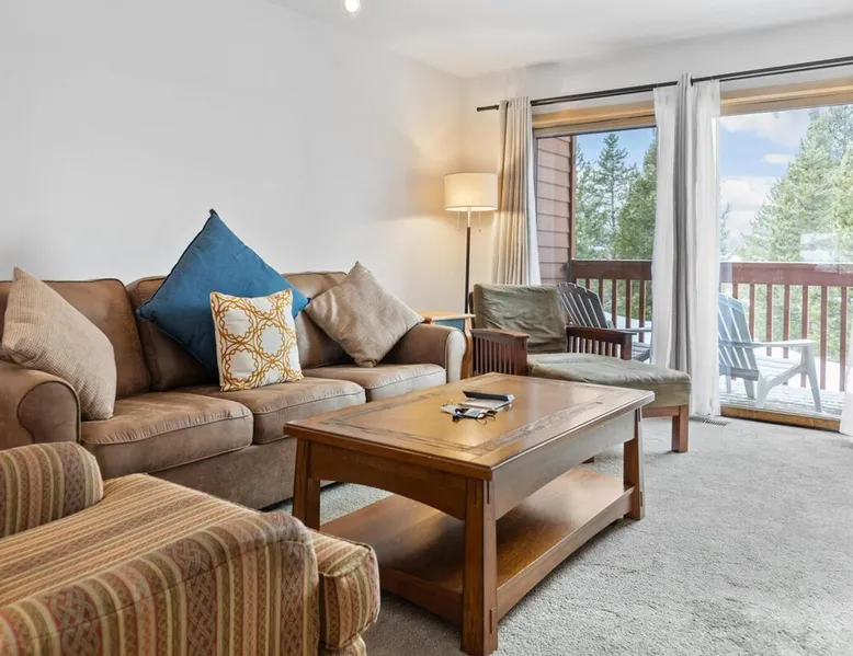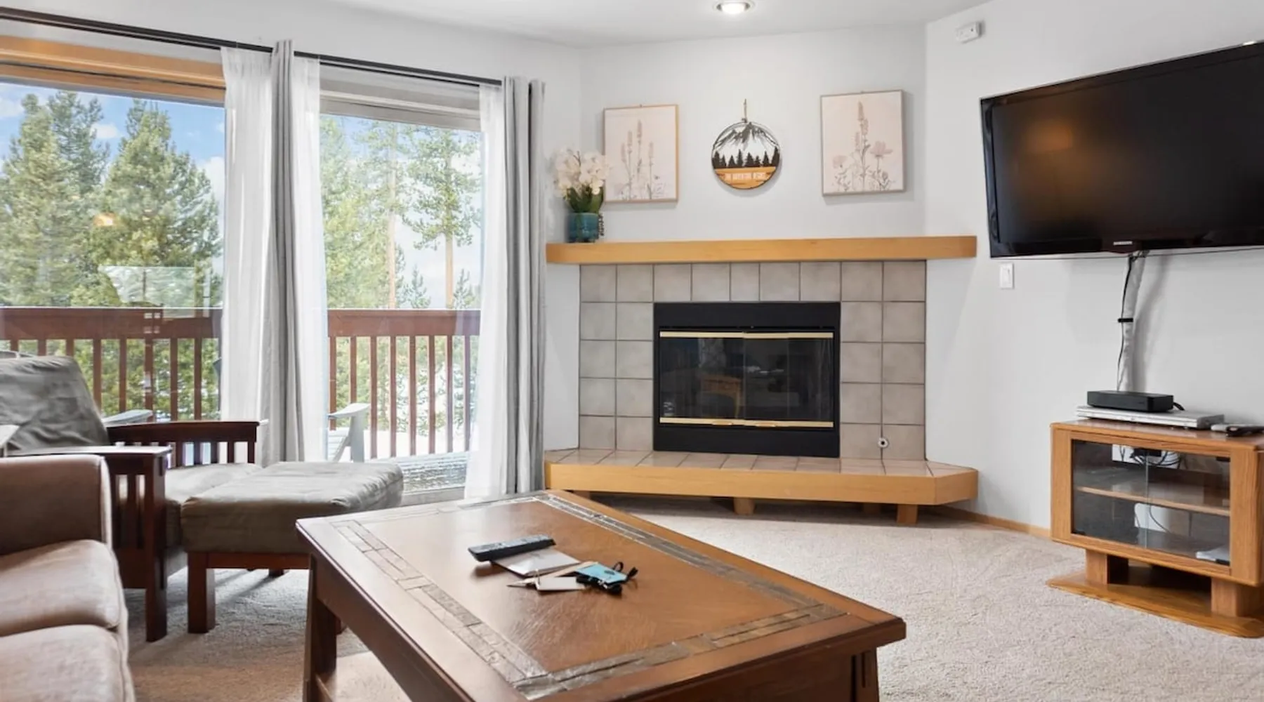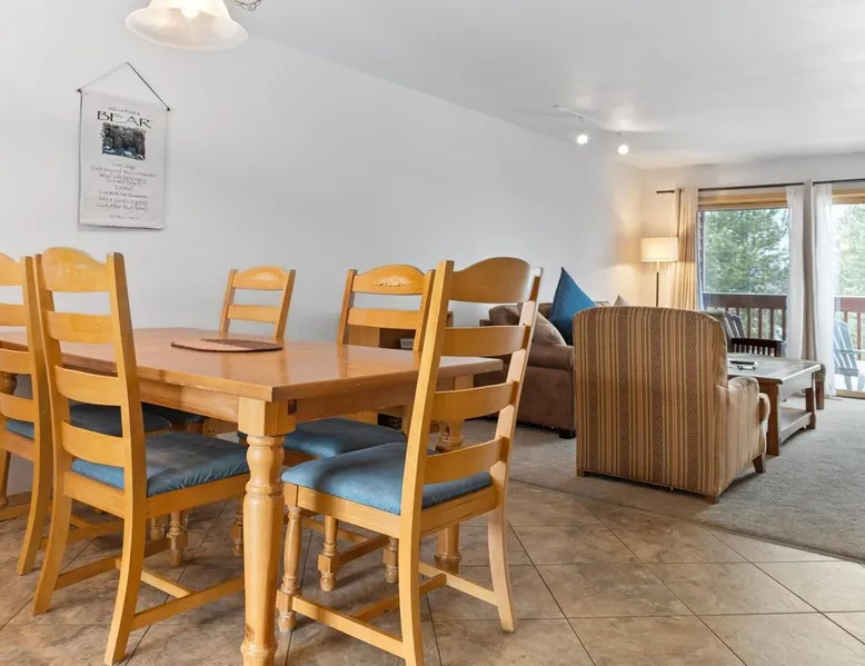 Year-round fun awaits at this cozy 2-bedroom condo in the charming mountain town of Frisco! Endless adventures are minutes away from this home with several parks, trailheads, and some of the best ski resorts just a short drive away! Return to your home away from home where you can relax in the spacious living area around the gas fireplace and enjoy the beautiful mountain views out on the private balcony. Or recharge in the shared pool and hot tub, perfect for sore muscles! The space As you step inside your peaceful mountain retreat you will come to the entryway you will find a bench to sit on while you unlace your hiking or snow boots and several coat hooks to store your winter parka. Once you have unloaded your outdoor gear head up the stairs where you will find the spacious living area. When you arrive on the second floor you will first come to a half bathroom with a stacked washer/dryer directly in front of the stairs. As you walk further into the space you will come to the charming light-filled open living room/kitchen/dining area with views on either side overlooking the surrounding trees. Head into the living room where you will find soft, carpeted floors, comfortable furniture, and a gas fireplace providing an inviting and cozy common area for relaxing. The living room is outfitted with two reading chairs and a cozy couch that doubles as a pull-out king bed. For added comfort, you will find a coffee table, a small side table and lamp, and a 42” TV with a DVD player perfect for movie nights. From the living room, you can step through the patio doors and out into the private balcony where you can take in the fresh mountain air and beautiful views of the surrounding trees and snowcapped mountains. Out on the patio, you will find two patio chairs and a propane BBQ so you can sit back and relax while you prepare dinner on the grill. Connecting the living room and kitchen is the dining area where you will find a large table with seating for six. From this space, you can enjoy the views from over the private balcony, or from the large window in the kitchen. There is no seat with a bad view from this table! On the other side of the dining room, you will find the well-laid-out kitchen. This light-filled space is flooded with natural light from the large window providing some tranquil views while you prepare your meal. The fully-equipped kitchen includes everything from a coffee maker to a crockpot making it convenient to put together your favorite comfort foods after a day of exploring. When you are ready to settle in for the night you will find two bedrooms and two bathrooms on the third floor of the condo. As you arrive on the landing you will find the guest bedroom to your left. This bright and cheery room has all you need for a peaceful night of rest with a comfortable full-size bed, a 20” TV, and a large window overlooking the surrounding trees and snow-capped mountains. Guests will have plenty of space to store their personal belongings with the large closet, dresser, and two nightstands. On the opposite end of the hallway, you will find the spacious master bedroom which provides a great separation of space between the two bedrooms. The master bedroom is equipped with a queen-size bed, two bedside tables with lamps, a large closet, a dresser, and a 32” TV. This room also features a desk and chair underneath the large window so you can get some remote work done while enjoying the beautiful views. The master bedroom has an attached bathroom where you will find a single-sink vanity with under-the-sink storage space and a shower/bathtub making it convenient to wash up before settling in for the night. A second bathroom is located between the two bedrooms and features a single-sink vanity, a mounted towel rack, and a tiled bathtub/shower combo. Guests in this home are also welcome to use the shared amenities such as the hot tub, pool, and fitness center. Permit # STR-010587 Guest access Guests will have access to the entire condo and two parking spaces in the shared parking lot across from the unit. Guests also have access to the shared amenities which include a hot tub, pool, and fitness center. Other things to note Please note that like most homes in the area, this home does not have A/C. Guests will not be provided access to the garage. 4-wheel drive or 2-wheel drive tires with snow chains may be necessary for safe travel to this property, even if it hasn’t snowed in a few days. Please note, the indoor pool and fitness center are available daily with set hours.